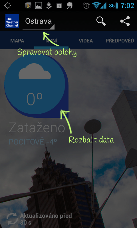 Aktualizace aplikace Weather Channel přinesla nový design Hlavní stránka Zprávičky Sdílejte: Karel Kilián Publikováno: 19.2.2013 17:00 3 komentáře 3 Aplikace renomovaného amerického televizního meteorologického kanálu The Weather Channel se ujala především u uživatelů „jablečných“ produktů. Včera se její verze pro Android dočkala zásadní aktualizace a čtvrtá generace zaujala svým provedením mnohá zahraniční média. Přichází například s rozložením pro tablety, dokáže varovat před významnými změnami počasí, poskytuje čerstvější radarové snímky a detailnější předpovědi. Přehled novinek v aktuální verzi aplikace S orientací vám pomůže nápověda Oblíbit byste si mohli také widgety na domovskou obrazovku – ty jsou celkem tři v rozměrech 1×1, 2×1 a 4×1. Widget aplikace Weather Channel Patrně nejzásadnější změnou, kterou zaznamenají uživatelé, jež tuto aplikaci v minulosti vyzkoušeli, je vizuální stránka. Celé uživatelské rozhraní je přepracováno v souladu se standardy „Holo UI“. Nápověda v aplikaci Weather Channel Nápověda v aplikaci Weather Channel Další novinky: Tlačítko (či spíše ikona) pro aktualizaci. Optimalizované rozhraní pro tablety. Lepší výběr videa. Lokalizované mapy. Radarové náhledy. Detailní předpovědi počasí v hodinových intervalech na následujících 36 hodin a orientační předpověď na dalších deset dnů. Upozornění na déšť a sníh. Aktuální meteorologická situace Předpověď na další dny Server Android Headlines vyzdvihuje jako užitečnou funkci varování před deštěm a sněhem, která by měla upozornit na srážky ve sledované oblasti s přesností na minuty. Je samozřejmě otázkou, nakolik bude tento systém fungovat v Evropě, potažmo v České republice. Zatím nemáme s tímto vylepšením žádné zkušenosti, takže nemůžeme říci, zda je to použitelné, či nikoli. Podrobná předpověď na další hodiny Animovaná mapa srážek Poněkud paradoxně po uvedení nové verze aplikaci Weather Channel kleslo hodnocení v Obchodě Play. Pravděpodobně je to způsobeno reakcí konzervativnějších uživatelů na provedené změny, ale také na zobrazování reklamy (tu jsme ale během krátkého testování nezaznamenali). Videa Možnost nastavení varování Rozhodně můžeme konstatovat, že rozhraní a funkčnost aplikace v nové verzi jsou krokem vpřed. Z hlediska českých uživatelů se s kritikou patrně setkají poněkud kostrbaté české překlady jako „Odpoledne se vytvoří sněhové přeháňky“ a jiné obraty, které působí, jako by je přeložil automatický překladač. The Weather Channel Podívejte se na prezentaci nových funkcí, jak jsou prezentovány v oficiálním videu. https://www.youtube.com/watch?v=tAAkBhE0eGI The Weather Channel The Weather Channel Verze 4.0.1 (18. 2. 2013) Velikost 7,1 MB 2.2+ Zdarma Zdroje: Engadget, Android Headlines a Android and Me. O autorovi Karel Kilián Karel Kilián je zkušený technický redaktor a copywriter s bohatou praxí v oblasti informačních a komunikačních technologií. Jeho kariéra začala na pozici prodavače, odkud postupně… Více o autorovi Sdílejte: 3 komentáře Vložit komentář Aktualizace počasí Předpověď počasí Mohlo by vás zajímat Android Auto dostává první letošní aktualizaci. Co je nového? Adam Kurfürst 10.1. Fotky Google mají novou utajenou funkci. Už jste ji objevili? Jana Skálová 24.12.2024 Předpověď počasí vstupuje do nové éry. Google představil převratnou technologii a uvolnil ji zdarma Jakub Kárník 6.12.2024 Velký problém s Android Auto: Hromada řidičů hlásí stejnou závadu, Google konečně reaguje Jakub Kárník 19.12.2024 Máte telefon Xiaomi nebo Redmi? Máme seznam modelů, které dostanou HyperOS 2.0 jako první! Jakub Kárník 5.10.2024 Třikrát hurá! Xiaomi HyperOS 2 právě dorazil do Česka Adam Kurfürst 26.11.2024