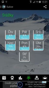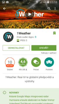 Aplikace 1Weather: Počasí, díky kterému už vás déšť nepřekvapí Hlavní stránka Recenze Recenze na aplikace Sdílejte: Jiří Štochl Publikováno: 15.4.2016 18:00 (Aktualizováno: 26.4.2016 11:23) 9 komentářů 9 Aplikace s předpovědí počasí využívá velké množství z nás. Stačí několikrát kliknout a ihned víme, co si obléci na sebe, zdali bude dnes pršet případně padat sníh nebo kolika stupňů dosáhnou teploty v jednotlivých dnech. Na výběr máme opravdu velké množství aplikací. Dnes si představíme jednu z nich. Do našeho přístroje se opět dostala aplikace 1Weather, která od roku 2012, kdy jsme ji naposledy recenzovali, prošla mnohými změnami a vylepšeními. Vyhledání aktuální pozice Po úspěšné instalaci a prvním spuštění se dostáváme k vyhledání aktuální pozice, pro kterou chceme zjistit předpověď počasí. Polohu lze zadat ručně nebo automaticky pomocí GPS. V našem případě vše proběhlo rychle a bez problémů. Nyní se již dostáváme na hlavní obrazovku, kde nalezneme výpis aktuální teploty, tlaku, rychlosti větru nebo pravděpodobnosti deště. Nastavení základních jednotek Prvním důležitým krokem je nastavení základních jednotek naměřených údajů. Ve výchozím nastavení se totiž zobrazují stupně ve Fahrenheitech, rychlost větru v mílích za hodinu a tlak v palcích rtuťového sloupce. Samozřejmě volba zobrazovaných jednotek záleží na každém z nás. Vybírejte z velkého množství obrázků Aplikace nabízí široké možnosti nastavení vzhledu. Kromě volby zbarvení textu a ikon můžeme vybírat z několika kategorií obrázků na pozadí. Volit můžeme z kategorie klasických obrázků, kde vybíráme z motivu dřeva, trávy, zatažené oblohy nebo bouřkových mračen. V další kategorii jsou obrázky žánrově zaměřeny a neexistuje člověk, který by si z daných motivů nedokázal vybrat. Pokud by se přeci jen někdo našel, lze zvolit možnost zobrazení vlastního obrázku na pozadí aplikace. Co dalšího aplikace nabízí Nyní máme vše upraveno k obrazu svému a můžeme se pustit do užívání aplikace. Údaje zobrazené na hlavní stránce aplikace jsme si již popsali. Co dalšího v aplikaci nalezneme? Velice užitečné je zobrazení předpovědi na další dny se zobrazením slovního popisu předpovědi, teploty a pravděpodobnosti deště. Nalezneme zde také detailní předpověď stanovenou pro každou hodinu na dva dny dopředu. K dispozici máme také mapu s aktuální oblačností, východ a západ Slunce nebo fáze Měsíce. Hodnocení – Aplikace 1Weather Stažením aplikace 1Weather získáváme celkem přesného pomocníka na předpověď počasí. Nabízí velké množství poskytovaných informací s graficky povedeným designem. Nechybí ani několik widgetů na plochu, díky kterým máme předpověď počasí stále na očích. Pokud se zrovna poohlížíte po spolehlivé aplikaci o počasí, tato rozhodně stojí za vyzkoušení. 1Weather: Forecast & Radar OneLouder Apps Instalovat (Free) Google Play O autorovi Jiří Štochl Sdílejte: 9 komentářů Vložit komentář počasí Předpověď počasí Weather Mohlo by vás zajímat Předpověď počasí vstupuje do nové éry. Google představil převratnou technologii a uvolnil ji zdarma Jakub Kárník 6.12.2024 Stahujte! Nová aplikace Počasí od Googlu unikla s předstihem a vypadá skvěle Jakub Kárník 8.8.2024 Google Play aplikace zdarma: propracovaná předpověď počasí, čtečka QR kódů, spelling nebo nové ikony Jana Skálová 20.12.2024 Vyzkoušeli jsme aplikaci Počasí ČHMÚ. Co se nám na ní (ne)líbí? Adam Kurfürst 13.12.2024 Stahujte! Aplikace Počasí ČHMÚ pěkně vypadá a nabízí šikovné funkce Adam Kurfürst 9.12.2024 Jak si nenechat ujít polární záři nad Českem? Pomůže skvělá aplikace Libor Foltýnek 11.5.2024