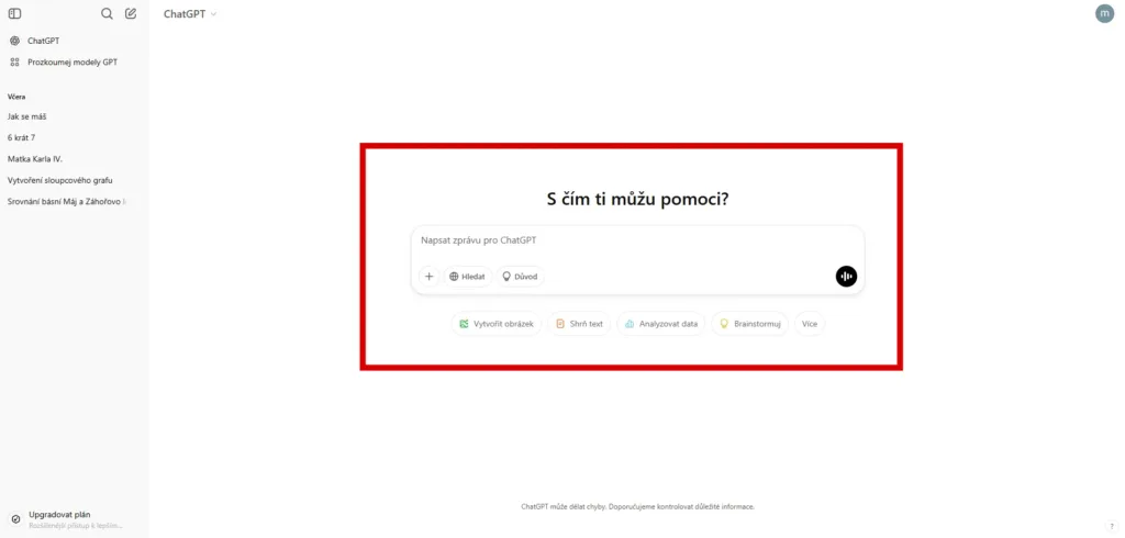 Jak používat ChatGPT: Vše, co potřebujete vědět v roce 2025 (podrobný návod pro začátečníky) Hlavní stránka Návody Umělá inteligence vám může usnadnit práci i situace v osobním životě Nejpopulárnějším AI nástrojem je ChatGPT od americké organizace OpenAI Umí psát, programovat a řešit složité úlohy. Navíc nabízí bohatou paletu funkcí Sdílejte: Adam Kurfürst Publikováno: 13.2.2025 06:00 Žádné komentáře 0 Ať už se o aktuální dění v technologickém světě zajímáte více, nebo méně, pojem umělá inteligence (AI) vám nejspíš nebude cizí. Články o ní se totiž neobjevují pouze ve specializovaných magazínech, nýbrž i v běžných médiích s daleko širším záběrem, jsou jí plné sociální sítě a diskutuje se o ní i na pracovištích či ve školách. Mezi mnohými panuje názor, že má umělá inteligence potenciál nahradit člověka v různých jeho pracích. Jiní jsou skeptičtí trochu méně a tvrdí, že AI jako taková vás ve vaší činnosti nenahradí, ale váš kolega, který se ji naučí ovládat a využívat ve svůj prospěch, dost možná ano. I to může být dobrým důvodem, proč se s umělou inteligencí seznámit už dnes. Obsah návodu ChatGPT a co všechno umí Jak začít s ChatGPT? Jak se zorientovat v ChatGPT? Jak komunikovat s ChatGPT? Proč si předplatit ChatGPT? ChatGPT a co všechno umí Synonymem pro umělou inteligenci je v dnešní době nástroj ChatGPT. Jeho spuštěním ke konci roku 2022 se totiž nastartoval opravdový boom, který dosud nevyhasnul – o AI se mluví stále, její schopnosti se neustále zlepšují a setkáte se s ní nejen v mnoha internetových službách, ale dost možná i přímo ve vašem chytrém telefonu. ChatGPT je rozhodně nejznámější službou svého druhu, což ale neznamená, že je ve všem nejlepší. Konkurence totiž postupně sílí a v řadě úloh dokáže nabídnout lepší výsledky. Dítěti americké OpenAI však rozhodně nemůžeme upřít titul udavače trendů. Právě ona totiž „dokopala“ velké či menší technologické společnosti, aby se vývojem svých vlastních chatbotů zabývaly také. Služba ChatGPT je postavená na pokročilých jazykových modelech a její primární schopnost tkví v porozumění a vytváření textů. Dokáže pochopit vaše zadání, ať už je sebekomplexnější, a na základě něj vytvořit výslednou práci. Zvládá odpovídat na otázky, a to od obecných faktů až po vědecká témata, pomáhat s psaním, analyzovat data, překládat texty mezi různými jazyky, generovat nápady, vyučovat, tvořit obrázky, nebo dokonce programovat. Při komunikaci mu přitom nechybí mnohé aspekty lidského chování – umí odpovídat přirozeně i být kreativní. Obrázek vygenerovaný pomocí ChatGPT ChatGPT za vás proleze web a provede kompletní rešerši. Co člověku zabere hodiny, zvládne za desítky minut Adam Kurfürst Zprávičky Adam Kurfürst Zprávičky Jak začít s ChatGPT? Pokud chcete ChatGPT využívat aktivněji a neplánujete si jej pouze jednorázově vyzkoušet, doporučujeme si založit účet. Z předešlé věty vyplývá, že je službu možné využívat i bez registrace – a je tomu skutečně tak – nicméně s uživatelským účtem, jehož vytvoření je bezplatné, dostanete ještě více možností. K ChatGPT přistoupíte snadno pomocí odkazů chat.com nebo chatgpt.com. Pokud se rozhodnete nástroj najít pomocí vyhledávače Google, dejte si pozor na sponzorované odkazy, které se na popularitě nejznámějšího chatbota chtějí přiživit. Tím samozřejmě netvrdíme, že všechny reklamy na jiné AI platformy jsou automaticky podvod, jen od nich pravděpodobně nedostanete to, co skutečně chcete. TIP: Mobilní aplikace ChatGPT ChatGPT je také k dispozici jako mobilní aplikace. Můžete si ji zdarma nainstalovat z obchodů Google Play či App Store, což vám umožní přistoupit k umělé inteligenci kdykoliv a odkudkoliv. ChatGPT OpenAI Instalovat (Free) Google Play V pravém horním rohu rozhraní ChatGPT naleznete tlačítko „Zaregistrovat se“, po kliknutí na nějž dostanete možnost vytvořit svůj účet buď s pomocí e-mailu, anebo již existujících účtů Google, Microsoft či Apple. Jak k této volbě přistoupíte, je čistě na vás, mně každopádně nejvíce vyhovuje přihlašování přes účet Google. Jakmile se do služby úspěšně poprvé přihlásíte, vyskočí na vás okénko s užitečnými informacemi, které je dobré mít na paměti při každé konverzaci s ChatGPT. Když pomineme první bod týkající se schopností, které jsme si již popsali výše, je dobré vyzdvihnout, že s ChatGPT ani dalšími chatboty není vhodné sdílet citlivé osobní informace. Historie chatu totiž může být kontrolována za účelem zkvalitnění služeb. Stejně tak není vhodné na umělou inteligenci spoléhat stoprocentně. Přestože jsou její dovednosti působivé, stále může chybovat. Je proto vhodné ji využívat jako pomocníka, nikoliv jako prostředek, který udělá vše za vás. Druhé vyskakovací okénko informuje o dostupnosti funkce paměti, díky níž si ChatGPT pamatuje detaily z předchozích rozhovorů a zvládne je využít v dalších konverzacích. Komunikace se pak více přizpůsobuje vašim preferencím. Osobně proto doporučuji funkci povolit. Jak se zorientovat v ChatGPT? Textové pole a jeho okolí Ačkoliv ChatGPT funkcemi překypuje, jeho uživatelské prostředí je velmi intuitivní. Jeho nejvýraznějším prvkem je textové pole, kam píšete, popřípadě vkládáte (CTRL + V) svůj dotaz (pokyn nebo terminologicky „prompt“). Hned pod ním naleznete tlačítka pro rychlý přístup k pokynům typu „Poraď mi“, „Vytvoř plán“ či „Vytvořit obrázek“. Kliknutím na ně se daný požadavek (může se mírně lišit formulací, například „Shrň to“ 