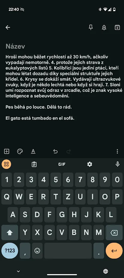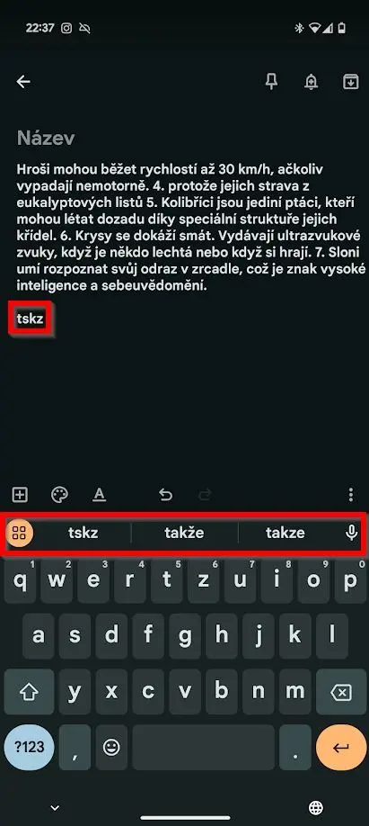 Jak psát rychleji na telefonu s Androidem? Tohle je 8 tipů pro Gboard (2024) Hlavní stránka Články Dovednost rychlého psaní na telefonu ušetří spoustu času Svou klávesnici můžete zkrotit, znáte-li užitečné triky Přinášíme 8 tipů, jak psát rychleji na telefonu s klávesnicí Gboard Sdílejte: Adam Kurfürst Publikováno: 10.12.2024 10:00 (Aktualizováno: 10.12.2024 21:09) 13 komentářů 13 Ať už chcete na telefonu trávit co nejméně času, anebo se naopak při práci s ním nechcete zbytečně zdržovat, je dobré ovládnout psaní. Právě na vyťukávání písmenek na klávesnici je závislá podstatná část aktivit, které na smartphonu vykonáváme. Tímto způsobem odpovídáme na e-maily či zprávy ze sociálních sítích nebo vyhledáváme informace na internetu. Obecně lze říct, že cestou ve zdokonalení se v disciplíně psaní je… psaní. S řadou užitečných tipů pro Gboard však zvládnete svou klávesnici zkrotit, aniž byste tréninkem trávili dlouhé hodiny času. Obsah článku Obsah článku Vypněte automatické opravy Využívejte pruh návrhů Magický Shift (trik na velká písmena) Kouzla s mezerníkem (psaní teček a kurzor) Režim jedné ruky Automatické překlady psaného textu Vždy zapnutý řádek čísel Důležité znaky na hlavní stránce Vypněte automatické opravy První věc, kterou dělám po nastavení nového Android telefonu. Automatické opravy sice vznikly s dobrým úmyslem – snaží se eliminovat chyby a tím vám usnadnit práci – ale psaní mnohdy spíše komplikují. Neznámá slova kolikrát opravují na nesmysly, se kterými svůj text rozhodně posílat nechcete. K těmto úsekům se tak musíte vracet, což vyžaduje zbytečné úsilí navíc. Abyste automatické opravy vypnuli, stačí v horní části klávesnice stisknout tlačítko ozubeného kolečka, které vás přemístí do Nastavení. Nevidíte-li jej, rozklikněte menu (čtyři čtverečky ve zvýrazněném kruhu). V Nastavení pak stačí zamířit do sekce „Oprava textu“ a vypnout funkci „Automatické opravy“. Využívejte pruh návrhů Pruh s nabídkou slov nad klávesnicí je neskutečně podceňovanou funkcí Gboardu, přitom ji osobně využívám neustále a píšu díky ní výrazně rychleji. Stačí mi totiž napsat pouhý kus slova a následně kliknout na položku v nabídce, čímž se z pouhého střípku stane plnohodnotný výraz. Gboard je chytrý, takže i když napíšu část slova špatně – například s překlepem – nabídne mi správnou variantu. Současně se učí mému způsobu psaní a využívání jednotlivých slov, tudíž je obsah nabídky do značné míry personalizovaný. V konečném důsledku to pro mě znamená, že mohu psát bez zběsile a bez háčků nebo čárek, což je podstatně rychlejší, ale přesto psát plnohodnotný text. Máte-li pruh s návrhy vypnutý, stačí jej povolit v Nastavení (Nastavení – Oprava textu – Zobrazit pruh návrhů). Bonusový tip: Našeptává vám nabídka opakovaně slovo, které nepoužíváte? Podržte jej a přetáhněte do popelnice. Magický Shift (trik na velká písmena) Zpětné psaní velkých písmen ve slovech s touhle vychytávkou nikdy nebylo snazší. Klávesu Shift můžete využít i po označení konkrétního slova. Jakmile na ni kliknete, zvětší se jeho počáteční písmeno, a pakliže jej stisknete znovu, celé slovo se „přepíše caps lockem“. Opětovným zmáčknutím jej vrátíte do původního stavu. Kouzla s mezerníkem (psaní teček a kurzor) Šikovné kousky umí i mezerník. Pokud jej po napsání slova rychle stisknete dvakrát, napíše se za slovo tečka a po ní mezera. Jde tedy o ideální způsob, jak ukončit větu a začít psát novou. Mezerník je dále možné používat jako kurzor. Stačí kliknout kamkoliv do textu, čímž se kurzor vyvolá, a následně posouvat prstem po ploše mezerníku. Kurzor se bude pohybovat, i když sjedete mimo mezerník a zůstanete na tom stejném řádku. Režim jedné ruky Režim jedné ruky oceníte v nespočtu různých scénářů. Ať už máte ve druhé ruce cokoliv, používáte-li extra velký telefon jako já (Google Pixel 9 Pro XL), rozhodně jej oceníte. Tím spíš, pokud k tomu máte kratší prsty. Režim jedné ruky lze aktivovat v nabídce skrývající se pod ikonkou čtyř čtverců v barevně zvýrazněném kruhu. Velikost klávesnice si následně můžete upravit dle libosti klepnutím na ikonu obdélníku se šipkami v rozích. Automatické překlady psaného textu K tomu, abyste mohli psát v cizím jazyce, nemusíte onen jazyk ani umět. Gboard totiž disponuje integrovaným Google Překladačem (funkce Překlad), která automaticky překládá vše, co napíšete. Vstupní jazyk klávesnice zjistí sama, výstupní si už pochopitelně musíte zvolit sami. Vždy zapnutý řádek čísel Pokud máte pocit, že často píšete čísla a zbytečně kvůli tomu otevíráte nabídku se znaky, zkuste si připnout číselný řádek na hlavní stránku klávesnice. Abyste tak učinili, stačí v Nastavení otevřít sekci Předvolby a povolit možnost Řádek čísel. Důležité znaky na hlavní stránce Trik, který docela pěkně doplňuje ten předchozí. Pokud je vám proti srsti neustále překlikávat na záložku se symboly, lze si je umístit na hlavní stranu. Respektive částečně. Povolením funkce „Zobrazení symbolů dlouhým stisknutím“ (Nastavení – Předvolby – Zobr. symbolů dlouhým stisknutím) se vám ke každému písmenu přiřadí určitý znak. Dlouhým podržením klávesy jej pak můžete snadno vložit do textu. Alternativou je podržení tečky, v návaznosti na což se vám otevře nabídka se 16 znaky. Oproti předchozí funkci je ale méně praktická, protože se v nabídce nejprve musíte zorientovat. Za tip děkujeme čtenáři lineari! Znáte nějaký další trik pro klávesnici Gboa