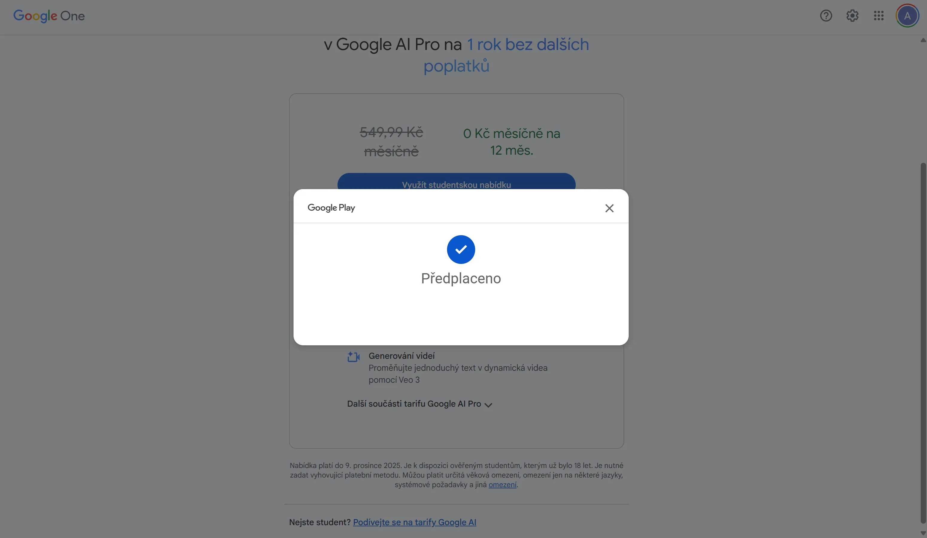 Nabídka, která se neodmítá. Studenti v Česku dostanou pokročilou Google AI a 2 TB místa na rok zdarma Hlavní stránka Zprávičky Google v Česku spustil lákavou nabídku pro studenty, tarif AI Pro lze získat na rok zdarma Balíček obsahuje rozšířený přístup k pokročilému AI modelu Gemini 2.5 Pro a 2 TB úložiště Ověření probíhá přes službu SheerID a proces není komplikovaný, nárok mají i středoškoláci Sdílejte: Adam Kurfürst Publikováno: 13.10.2025 12:00 Žádné komentáře 0 Po spuštění v několika zahraničních zemích přináší Google i do našich končin mimořádně atraktivní nabídku pro studenty. Tarif Google AI Pro, jehož součástí je rozšířený přístup k umělé inteligenci Gemini 2.5 Pro, 2TB úložiště ve službě Google One a řada další benefitů, mohou (nejen) vysokoškoláci získat na rok zcela zdarma. Aktivaci lze zvládnout do minuty Studenti si mohou tarif Google AI Pro na 12 měsíců zdarma aktivovat prostřednictvím tohoto odkazu, čas na to mají do 9. prosince 2025. Podmínek je relativně málo – stačí být obyvatelem Česka nebo jiné ze zemí zahrnutých do programu, být starší 18 let a mít osobní účet Google. Proces aktivace je přímočarý, ověření studentského statusu zabere přibližně minutu Status studenta ověřuje služba SheerID, kterou kromě Googlu používá třeba Spotify. Přestože je nabídka cílená především na vysokoškoláky, SheerID v seznamu škol nabízí mimo jiné i gymnázia, takže jsem neváhal a nabídky využil také. Celým procesem jsem stihl projít do minuty. Výhodu ostatně mají ti, kteří už s ověřením statusu mají zkušenost například skrz aktivaci studentského předplatného YouTube Music. Špičková AI, 2 TB místa a další benefity zdarma Nabídka ročního předplatného Google AI Pro je z mého pohledu neodolatelná. Tarif je lákavý zejména rozšířeným přístupem k umělé inteligenci Gemini – jeho odběrem konkrétně získáte vyšší limity pro pokročilý model Gemini 2.5 Pro (a současně jej budete moc využít v rámci nástroje Deep Research) nebo 5x více audio přehledů ve službě NotebookLM, která skvěle plní úlohu pomocníka s přípravou na nadcházející test či zkoušku. Benefitů je ale ještě víc. Za zmínku rozhodně stojí i 2TB úložiště pro soubory ve službě Google One (takže své přetékající 200GB úložiště ještě nějakou dobu nebudu muset řešit) nebo integrace Gemini do Gmailu, Dokumentů a jiných aplikací. Fajnšmekři ocení také přístup k modelu Veo 3 Fast v rámci Gemini nebo 1 000 AI kreditů měsíčně pro generování obsahu ve službách Flow a Whisk. Google v blogovém příspěvku zvýrazňuje také nedávno uvedené Učení s vedením (Guided Learning), které funguje jako speciální režim ve službě Gemini. Namísto toho, aby vám umělá inteligence slepě předkládala odpovědi na otázky, se vás snaží ke správnému řešení dopravit a látku vysvětlit tak, abyste ji byli schopni sami aplikovat. To pomáhá rozvíjet kritické myšlení. Kdo nabídky nevyužije, prohloupí Očima studenta je aktuální zvýhodnění na tarif Google AI Pro nabídkou, která se neodmítá. S umělou inteligencí pracuji na denní bázi a aktivně ji využívám i ke studiu, kde mi pomáhá třeba s vypracováním otázek na zkoušení nebo doplnění mých vlastních zápisů o další fakta a kontext. Balíček navíc obsahuje i rozšířené úložiště a poskytuje přístup k dalším praktickým funkcím. Využijete studentskou nabídku tarifu Google AI Pro ? Zdroje: TZ, vlastní O autorovi Adam Kurfürst Adam studuje na gymnáziu a technologické žurnalistice se věnuje od svých 14 let. Pakliže pomineme jeho vášeň pro chytré telefony, tablety a příslušenství, rád se… Více o autorovi Sdílejte: Žádné komentáře Vložit komentář česko Gemini Google Umělá inteligence Mohlo by vás zajímat Android Auto dostane schopnějšího asistenta! Takto (zhruba) vypadá Gemini v akci Adam Kurfürst 9.1. Android Auto dostává první letošní aktualizaci. Co je nového? Adam Kurfürst 10.1. Google Quick Share přináší pro všechny skvělou funkci, kterou už Samsung umí dávno Libor Foltýnek 8.1. Fotky Google dají uživatelům větší kontrolu, chyby AI půjde opravit Libor Foltýnek 10.1. Roztomilý robůtek od Samsungu zamíří do domácností. Malý AI asistent pomůže zahnat nudu i samotu Jana Skálová 9.1. Google se chystá nasadit Gemini na chytré hodinky s Wear OS. Můžeme čekat češtinu? Libor Foltýnek 8.1.