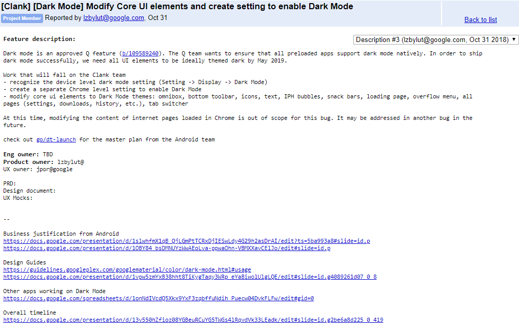 První větší novinka v Androidu Q potěší hlavně majitele telefonů s AMOLED displejem Hlavní stránka Zprávičky Sdílejte: David Trlica Publikováno: 7.1.2019 08:19 11 komentářů 11 Není žádným tajemstvím, že Google u svých aplikací postupně začíná využívat možnost aktivování tmavého režimu. Během minulého roku jsme mohli vidět tmavý režim v YouTube, Zprávách, Kontaktech apod. Z počátku roku mnoho lidí doufalo, že Android 9 Pie přinese kompletní podporu tmavého režimu. To se nestalo. Nakonec si je potřeba počkat na chystanou verzi. Google nyní v podstatě potvrdil, že Android Q obdrží kompletní podporu pro tmavý režim. Tmavý režim pro Android Q omylem potvrdil zaměstnanec společnosti Google V Bug trackeru pro Chromium se objevila jedna zajímavá věta, o které se postaral jeden ze zaměstnanců společnosti Google. Napsal, že tmavý režim je schválená funkce pro Android Q. Zároveň Google požaduje, aby všechny předinstalované aplikace podporovaly tmavý režim nativně. Připravené musí být do května 2019. To mimo jiné znamená, že v dalších měsících uvidíme další Google aplikace s podporou tmavého režimu. Brzy bychom se měli tak dočkat mimo jiné podpory v Chrome anebo Gmailu. Kromě tohoto vyjádření, má údajně i server AndroidPolice.com několik interních dokumentů společnosti Google, kde se jasně píše, že uživatelé mají o tmavý vzhled zájem. Zajímavé je také to, že jakmile se poprvé v zahraničí začalo hovořit o podpoře tmavého režimu v Androidu Q, tak původní příspěvek zaměstnance Googlu již není v Bug Trackeru k dispozici pro klasické uživatele, ale můžou jej vidět pouze jiní zaměstnanci Googlu se speciálním přístupem. To je jeden další z bodů, který přidává na důvěryhodnosti. Těšíte se na tmavý režim v Androidu Q? Zdroj: androidpolice.com O autorovi David Trlica Už od dětství ho bavily telefony, na půdě byste určitě našli mnoho a mnoho časopisů o telefonech. První setkání se smartphony proběhlo právě u Androidu.… Více o autorovi Sdílejte: 11 komentářů Vložit komentář Android Q Google tmavý vzhled Mohlo by vás zajímat Android Auto dostává první letošní aktualizaci. Co je nového? Adam Kurfürst 10.1. Google Quick Share přináší pro všechny skvělou funkci, kterou už Samsung umí dávno Libor Foltýnek 8.1. Fotky Google mají novou utajenou funkci. Už jste ji objevili? Jana Skálová 24.12.2024 Pixel 9 Pro má problém! Některým mobilům prý odpadává fotoaparát Jana Skálová 7.1. Předpověď počasí vstupuje do nové éry. Google představil převratnou technologii a uvolnil ji zdarma Jakub Kárník 6.12.2024 Android Auto dostává nový hudební přehrávač. Mrkněte, jak vypadá Adam Kurfürst 29.12.2024