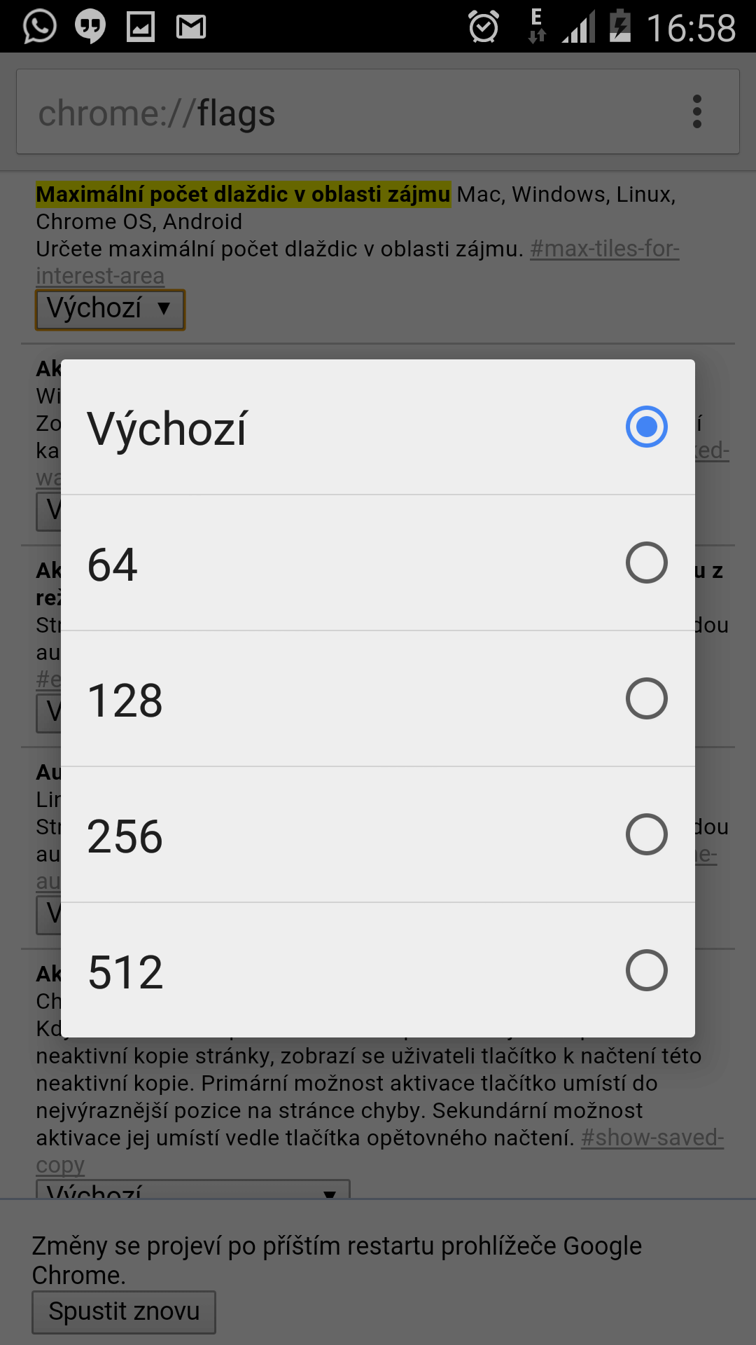 Jak zrychlit prohlížeč Google Chrome na zařízení s Androidem (návod) Hlavní stránka TOP Sdílejte: Kuba Drhlík Publikováno: 8.6.2015 12:00 (Aktualizováno: 23.6.2015 10:55) 33 komentářů 33 Spoustě z nás se jistě může zdát, že prohlížeč Google Chrome na našem telefonu či tabletu již není tak svižný, jako tomu bývalo dříve. V tomto případě se však nejedná pouze o zdání, nýbrž o holý fakt. Se spoustou aktualizací, které jsou součástí přirozeného vývoje tohoto webového prohlížeče, se logicky zvyšují také jeho požadavky na systém. Pryč jsou tak doby, kdy si nárokoval pouze malou část paměti RAM z našeho zařízení, a zejména uživatelé s pamětí 1 GB a méně se tak mohou potýkat s problémy. Proto se webové stránky, které chceme navštívit, nemusejí vždy otevírat zcela nejrychleji a jejich prohlížení nemusí býti tolik plynulé, jako tomu bývalo dříve. Společně to však můžeme ovlivnit díky pokročilým možnostem nastavení již zmíněného prohlížeče. Konkrétně potom zvolením maximálního počtu dlaždic v oblasti zájmu, čímž snížíme jeho nároky na paměť přístroje. V následujících krocích si společně předvedeme, jak toho docílit. 1. Otevřeme prohlížeč Google Chrome. (Ten pravděpodobně najdeme na ploše nebo v seznamu nainstalovaných aplikací.) 2. Do vyhledávacího pole napíšeme následující adresu URL – „chrome://flags/#max-tiles-for-interest-area“ a volbu potvrdíme. 3. Nyní jsme se dostali na stránku s pokročilým nastavením prohlížeče, kde si povšimneme žlutě zvýrazněné položky nesoucí název Maximální počet dlaždic v oblasti zájmu. 4. Rozklikneme rozbalovací menu, ve kterém vidíme jednotlivé počty dlaždic. Tyto hodnoty mění velikost vyčleněné paměti RAM pro samotný prohlížeč. (Doporučená hodnota pro zrychlení prohlížeče je 512) 5. V posledním kroku se zaměříme na levou spodní část obrazovky, kde nás Chrome vyzývá k restartu. Ten provedeme jednoduše stisknutím tlačítka spustit znovu. Po dokončení celého postupu a restartování prohlížeče dojde ke zrychlení načítání jednotlivých stránek a plynulejšímu scrollování. Zdroj: phonearena.com. O autorovi Kuba Drhlík Sdílejte: 33 komentářů Vložit komentář Google Chrome návod paměť RAM Mohlo by vás zajímat 33 nebezpečných rozšíření pro Google Chrome shromažďuje hesla a citlivé údaje. Máme kompletní seznam! Jana Skálová 6.1. PixWords pomocník - nápověda k novým obrázkům Petr Mišák 19.1.2015 Návod: Jak v Androidu zjistit heslo ke známé WiFi síti? Marek Houser 8.8.2020 Google Chrome pro Android nyní konečně umí otevírat PDF soubory! Poradíme, jak funkci zprovoznit Adam Kurfürst 8.12.2024 Rychlý jako blesk! Google Chrome pro Android je až dvakrát svižnější než loni Adam Kurfürst 5.12.2024 Jak nainstalovat aktualizaci Windows 11 24H2 už dnes? Je to jednodušší, než byste čekali Libor Foltýnek 3.10.2024