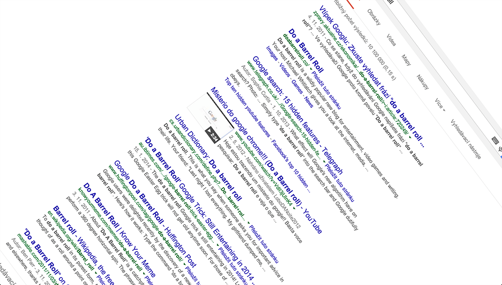 Žijte vtipně s Googlem - 10 easter eggů pro pobavení Hlavní stránka Články Sdílejte: David Mysliveček Publikováno: 29.7.2014 06:00 (Aktualizováno: 5.7.2017 00:04) 13 komentářů 13 Vyhledávač Google je jistě jednou z nejpoužívanějších a nejnavštěvovanějších internetových stránkek na celém světě. Během jeho působení na trhu vzniklo mnoho různých parodií a srandiček jak od zcela nezávislých vývojářů, tak i od samotné společnosti Google. Chcete pár tipů, jak pobavit nejen svoje kamarády? Pokud ano, tak čtěte dále. 1. Google Gravity Google Gravity je experiment, který přidává vyhledávači trochu pozemské fyziky. Po najetí myši na vyhledávání se vše doslova zřítí k zemi. Pozor, vyhledávač samozřejmě zůstává stále funkční. Po zadání vyhledávaného výrazu vám výsledky doslova naprší přímo na hlavu. Celý experiment si můžete vyzkoušet na stránkách Google Gravity. 2. Let me Google that for you Asi každý se už ocitl v situaci, kdy se vás někdo ptal na naprosto nesmyslné otázky, které si přitom mohl velmi jednoduše najít sám na vyhledávači Google. Na to myslelo několik vývojářů, kteří přišli s projektem LMGTFY. Jedná se o jednoduché internetové stránky, do kterých zadáte požadovaný výraz k vyhledání. Jako výsledek se vám vytvoří krátká animace, která tvoří jakýsi tutoriál vyhledávání. Tímto způsobem si tak můžete nejen udělat srandu ze svých kamarádů, ale dokonce je i naučit vyhledávat na internetu. Projekt LMGTFY můžete najít na těchto stránkách. 3. Pozor, nebo vyhledávání spadne – Askew a Tilt Některé vtípky pocházejí přímo od samotného zakladatele slavného vyhledávače – společnosti Google. Jeden z jejich vtípků spočívá v zadání fráze „tilt“ či „askew“ do okna vyhledávání. Po úspěšném zadání se vám pravá strana vyhledávače posune o něco níže a celé okno je tak nakřivo. Tímto způsobem můžete zkusit napálit například vaše přátele a sledovat, jak budou na křivé okno reagovat. 4. Retro hry v Googlu – Atari Breakout Po vyhledání výrazu „Atari Breakout“ se spustí stará známá hra Breakout od společnosti Atari. Obrázky z vyhledávání slouží jako bloky pro ničení kuličkou. Pokud tuto hru vyhrajete, tak se náhodně vyhledá jiný výraz a hra se spustí znovu. Atari Breakout si můžete vyzkoušet také pomocí tohoto odkazu. 5. 360 v jednom vyhledávání – „Do a barrel roll“ a „z or r twice“ Pokud do vyhledávače Google vložíte spojení „Do a barrel roll“ či „z or r twice“, tak se vám po vyhledání celá obrazovka s výsledky otočí o 360 stupňů. Pro vystrašení vašich přátel se jedná jistě o velmi zajímavý vtípek. Přetočení si můžete také vyzkoušet pomocí tohoto odkazu. 6. Invaze Opery – Zerg rush Vyhledáním výrazu „zerg rush“ ve vyhledávači Google spustíte invazi ikonek známého internetového prohlížeče Opera. Malé červené a žluté O začnou přilétat ze všech stran a doslova žrát vše, co jim přijde do cesty. Váš úkol je ubránit co nejvíce výsledků na obrazovce, a to pomocí myši, která se promění v zaměřovač. Tento vtípek si můžete vyzkoušet také pomocí tohoto odkazu. 7. Retro hry v Googlu – Google Pacman Tento vtípek potěší nejspíše starší generaci, která zažila hru Pacman na vlastní kůži. Pokud si tyto retro časy chcete připomenout, tak vyhledejte spojení „Google Pacman“ ve vyhledávači Google. Jako první výsledek bude zobrazen archiv doodlů, přesněji 30. výročí hry PAC-MAN. Na této stránce si slavnou hru budete moci také zahrát. Tento vtípek si můžete vyzkoušet pomocí tohoto odkazu. 8. Vyhledávání HTML tagu blink Pokud na vyhledávači Google vyhledáte spojení „blink html“, tak se vám objeví klasický seznam výsledků. Ten je však zvláštní tím, že obě dvě slova „blink“ i „html“ ve výsledcích blikají. 9. Pirátské a hackerské uživatelské prostředí Pokud vás nebaví koukat pořád na stejné nápisy ve vyhledávači Google, tak si je můžete trochu zpestřit. Google nabízí tzv. „Pirate interface“ a „Hacker interface„. Změňte se na pravého vyhledávacího piráta či hackera! 10. Hlasové vyhledávání Google Kromě vtípků v textovém vyhledávání připravil Google také některé vtípky ve vyhledávání hlasovém. Pokud vyhledávači Google řeknete následující věty, tak se vám dostane velmi zajímavých odpovědí: Pokud vyhledáte pomocí hlasového vyhledávače „beam me up, Scotty„, tak se vám vrátí „I cannot do it, Captain, I do not have the power.„ Při vyhledání „What does the fox say?“ se vám dostane jako odpověď část písničky „What does the fox say?“ od interpreta Ylvis. Pokud vás zajímá více možností, které můžete říci, tak tady jsou některé další tipy: „Who’s on first?“ „Make me a sandwich“, „super user make me a sandwich“, „sudo make me a sandwich“ „How many bottles of beer on the wall?“ „What’s Avogadro’s number?“ „What’s the best smartphone?“ „How can entropy be reversed?“ „What’s your favorite scary movie?“ „How much wood would a woodchuck chuck if a woodchuck could chuck wood?“ „Who created you?“ „What is the loneliest number?“ „What is the nature of the universe?“ „What’s your favorite color?“ „Up up down down left right left right“ „Lions tigers and bears“ Bonus: mnoho her na jednom místě Na závěr pro vás máme jednu stránku, na které se nachází celkem 10 různých her a vtípků od společnosti Google a Microsoft. Pro aktivaci stačí zapnout stránku některé hry, například Google Underwater. K té se můžete také dostat napsáním Google Underwater do vyhledávacího pole a následným kliknutím na tlačítko „Zku
