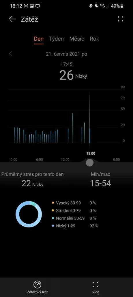 Kvůli nabitému programu jsem zatím neměl moc příležitostí vymáčknout v tomto ohledu z hodinek maximum, ale z dosavadních zkušeností můžu říct, že je na ně spoleh. A to jak po stránce měření pohybových aktivit, tak i u zdravotních metrik a analýz. Už předchozí generace Huawei Watch prokazovaly velmi vysokou přesnost a o interpretaci dat se velmi dobrým způsobem stará aplikace Zdraví. Některé metriky jsou zde rozebrané až na úplné „drobky“, v nichž je potřeba se chvilku orientovat. Zejména data o spánku je zajímavé procházet. Pro sportovce je k dispozici přes 100 různých módů a aplikace nabízí i komplexní kurzy. Napojení na službu Strava, na což se před testováním ptal jeden ze čtenářů, se mi bohužel nepodařilo. Aplikace Zdraví i Strava mají možnost sdílení dat s Google Fit, ale oboustranný přenos dat evidentně neproběhl. Zatím bych tedy tuto možnost považoval spíš za vyvrácenou. Z nových analýz je určitě potřeba vyzdvihnout například měření teploty pokožky, automatické kontroly stresu, nepřetržité periody snímání SpO2 nebo měření tlaku vzduchu. Všechny jsem vyzkoušel a zdají se být spolehlivé. I když jsem bohužel neměl moc možnost je porovnat s referenčními přístroji. Teplotě pokožky se dá s malou odchylkou věřit, stejně tak i stresu. SpO2 v podstatě neklesá pod 98 %, takže případný problém by hodinky pravděpodobně odhalily spolehlivě. Nadmořskou výšku, kterou hodinky odvodily podle tlaku vzduchu, se podařilo podle porovnání s Mapy.cz trefit na plus minus 5 metrů. Měření glukózy v krvi, na kterou se ptali další čtenáři, hodinky neumějí.