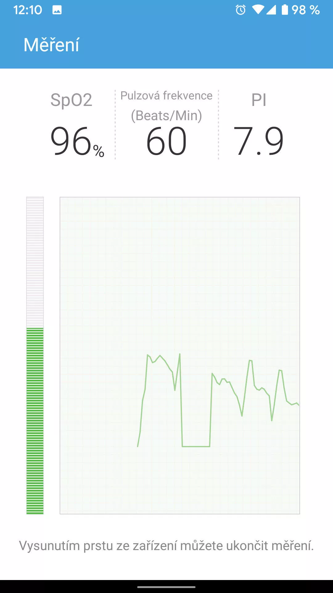 iHealth Air PO3 recenze: Pulzní oxymetr, který propojíte s telefonem Hlavní stránka Recenze Ostatní recenze Sdílejte: David Trlica Publikováno: 29.5.2019 22:06 (Aktualizováno: 1.6.2019 09:03) Žádné komentáře 0 Dnes pokračujeme s dalším zdravotním produktem od iHealth. A to s chytrým pulzním oxymetrem, který se nazývá iHealth AIR PO3. Zařízení slouží k měření saturace krve kyslíkem a zároveň umí měřit i srdeční tep. Recenze pulzního oxymetru iHealth Air PO3 Obsah balení a konstrukce oxymetru iHealth Připojení oxymetru iHealth k telefonu Měření s iHealth Air Aplikace iHealth Závěr recenze Obsah balení a zpracování iHealth Air Po3 Balení oxymetru iHealth Air je standardní a příliš se neliší od jiných produktů této společnosti. Jedinou odlišností je to, že v balení naleznete provázek, abyste si mohli oxymetr pověsit například na krk. Kromě provázku je dále v balení samotný oxymetr, microUSB kabel na nabíjení a manuály. Jedná se o malé a přenosné zařízení. Rozměry jsou 62 x 33 x 28 mm, bez problémů jej schováte do kapsy anebo třeba do batohu. Designově se téměř neliší od oxymetrů v nemocnicích, ono se ani v tomto odvětví nedá moc vymyslet. Vyroben je převážně z plastu a malá část, která chrání microUSB konektor, je vyrobena z plastu. K dispozici je v bílé barvě. Přístroj má pouze jedno tlačítko, se kterým se zařízení aktivuje. Na vrchní straně je schovaný jednoduchý LED displej, který má zelené podsvícení. Na něm rovnou vidíte naměřené hodnoty a díky tomu nemusíte vůbec využívat telefon. Hodnoty na displeji se dají bezproblémově přečíst. Kromě zobrazení hodnot slouží tak k upozornění na nízkou baterii a ukazuje, jestli je oxymetr propojen s telefonem přes Bluetooth. U ostatních iHealth produktů jsme se dočkali různých dodatečných funkcí jako je měření teploty či vlhkosti. U tohoto zařízení nic podobného nenalezneme. Oxymetr splňuje základní certifikaci IPX1, což znamená ochranu proti kapající vodě. Kapalinám byste se tak měli rozhodně vyhnout. [aps_product_sz id=“555455″] Párování s telefonem a aplikací iHealth Párování probíhá zcela jednoduše. Při první aktivaci stačí zmáčknout jediné tlačítko, oxymetr se spustí rovnou i s aktivním Bluetooth. Na telefonu se k němu jednoduše připojíte a spárujete s aplikací. A to buď pro Android nebo iOS. Propojení se povedlo na poprvé, neměli jsme problém ani s telefonem, na kterém běžela betaverze Androidu Q. https://www.youtube.com/watch?v=qAF7bhKT9io K propojení potřebujete iHealth účet, který můžete zdarma vytvořit přímo v aplikaci. Výhoda tohoto účtu je v tom, že můžete následně prohlížet údaje i na PC. Jelikož se používá stejná aplikace iHealth MyVitals jako u jiných iHealth produktů, tak stále zůstává podpora češtiny. Měření s oxymetrem iHealth Air Pulsní oxymetr nepatří mezi rozšířené zdravotní zařízení podobně jako třeba tlakoměry či glukometry. Slouží k měření saturace krve kyslíkem. Se zařízením se setkáte hlavně v nemocnicích, jedná se o ten „kolík“, který máte na prstu. iHealth tohle zařízení převedlo do přenosné formy, takže si můžete kdykoliv změřit. Saturace krve kyslíkem se označuje také zkratkou SpO2. Samotné měření je zcela jednoduché. Uvnitř jsou dva senzory, které svítí na prst. Ideálně by se měl používat ukazováček, prostředníček anebo prsteníček. Funguje ale i s malíčkem. Pokud nicméně použijete palec, tak se dočkáte poměrně podivných výsledků a ostatně i sama společnost v manuálu informuje, že oxymetr není určen k měření palce. Po chvíli měření uvidíte na displeji hodnotu SpO2. A to v procentech (rozsah je 70% až 99%), přesnost měření je +- dvě procenta. Druhá hodnota, kterou uvidíte přímo na displeji je srdeční tep. U něj zvládá rozsah 30 – 250 bpm a přesnost je opět +- 2 procenta. Přenos dat do aplikace je téměř okamžitý. Na telefonu následně navíc uvidíte i hodnoty „PI“ neboli Perfuzní index. To je poměr okysličené krve, která se dostává do místa měření s každým tepem. Baterie má kapacitu 390 mAh. Pokud oxymetr nepřipojíte k telefonu, tak o data nepřijdete. Má v sobě paměť na 100 posledních měření. Aplikace iHealth MyVitals Opět se jedná hlavně o opakování z předchozích recenzí iHealth produktů. V první řadě by si zasloužila nový design, který odpovídá roku 2019. Potěší možnost propojení s Google Fit. Aplikace je určena pro více produktů iHealth, pro oxymetr slouží sekce „Pulzní oximetr“. Po klepnutí na tlačítko se vám zobrazí tři položky – měřit, přehled a trendy. Jedná se tak identické rozložení jako u vážení či tlakoměrů. V první záložce měřit vám aplikace ukáže, jestli máte připojený oxymetr. Zároveň se zde nachází možnost přidání údajů manuálně. Druhá sekce je klasický přehled posledních měření. V náhledu vidíte výsledky SpO2, pulz i PI, takže ani nemusíte rozklikávat jednotlivá měření. V nich se totiž nedozvíte žádné nové informace, pouze k nim můžete přidat poznámku. Poslední část trendy jsou grafy, na kterých můžete sledovat dlouhodobý hodnoty. V nastavení vidíte informace o softwaru a zbývající baterii. iHealth Myvitals (Legacy) iHealth Labs, Inc. Instalovat (Free) Google Play Cena iHealth Air PO3 Oxymetr iHealth je k dispozici v mnoha obchodech. Cena začíná na částce 2 198 Kč. K dispozici je pouze v jedné barevné variantě – bílé. Závěr recenze iHealth Air PO3 Jedná se o dobře fungující oxymetr, který nemá mnoho chyb. Pokud hledáte oxymetr, který zároveň můžete propojit s telefonem a data rychle dostat do digitální podoby, tak je iHealth Air dobrou volbou. Obzvlášť pokud m