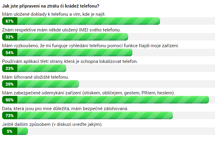 Jak jste připraveni na ztrátu či krádež telefonu? (Víkendová hlasovačka) Hlavní stránka Články Sdílejte: Karel Kilián Publikováno: 6.10.2018 08:00 (Aktualizováno: 11.10.2018 12:07) 13 komentářů 13 Ztráta nebo krádež telefonu je nesporně nepříjemnou událostí. Kromě majetkové újmy přichází majitel také o svá data, která často mohou mít mnohem vyšší hodnotu než odcizené či ztracené zařízení. Jak jste připraveni na ztrátu či krádež telefonu? Na to se budeme ptát v rámci této Víkendové hlasovačky a diskuze. Obsah článku Prevence je základ! Chraňte svůj telefon Proč znát IMEI svého mobilu? Co dělat v případě ztráty nebo krádeže? Anketní otázka Hlasovačka z minulého týdne Prevence je základ! Pokud se chcete vyvarovat ztrátě či odcizení telefonu, je základním pravidlem nespouštět ho z očí. Ani v zapnuté kabelce či batohu určitě není v bezpečí, jak by mohli potvrdit ti, kteří měli čest se osobně setkat s kapsářem. O něco bezpečnější je nošení na těle, kde telefon cítíte, nicméně pro zloděje s hbitými prsty nemusí být ani to problém. Poměrně hodně telefonů je odcizeno ze stolu v nějakém veřejně přístupném podniku. Určitě tedy není dobrý nápad nechávat mobil na stole s představou, že vám na něj spolusedící dohlédnou. Dalším místem, kde se telefony hodně kradou, jsou prostředky hromadné dopravy. V nich doporučujeme mít telefon nebo zavazadlo, ve kterém ho přepravujete, neustále pod dohledem. Není dobrý nápad nechávat mobil na stole V oblastech se zvýšenou kriminalitou doporučujeme telefon pokud možno vůbec nepoužívat. Vytrhnout mobil z dlaně je pro šikovného lapku otázka mžiku. Pak můžete jen doufat, že budete rychlejší, silnější a zloděje dopadnete a přemůžete. Pozor ale, abyste mu při pokusu o navrácení svého majetku moc neublížili – mohlo by se to otočit proti vám. Na ulici si dejte pozor na otázky typu „Nevíte, kolik je hodin?“ Zloději předpokládají, že většina lidí dnes již nenosí hodinky a kvůli odpovědi vytáhnou mobilní telefon z bezpečí. Využívají momentu překvapení, zařízení vám vytrhnou z ruky a dají se na útěk. Chraňte svůj telefon Do prevence můžeme zařadit také zabezpečení dat, ke kterým by se neměl dostat nikdo nepovolaný. V první řadě se v nastavení telefonu přesvědčte, zda máte šifrované úložiště. Dalším důležitým faktorem je zabezpečení odemykání telefonu – nejlépe otiskem prstu, obličejem či skenem duhovky, které vyžaduje vaši fyzickou přítomnost. Pokud zabezpečíte telefon gestem, heslem nebo PINem, volte takové, které se nedá snadno odhadnout či uhádnout. Častým argumentem proti zamykání telefonu je představa poctivého nálezce, který se do telefonu nedostane a nedokáže tak zjistit, komu ho má vrátit. U většiny telefonů to lze vyřešit snadno – na odemykací obrazovku můžete dát informaci pro takové případy. Android má v základu funkci Najdi moje zařízení. Ujistěte se v nastavení telefonu, že ji máte zapnutou. Dále si ověřte, že opravdu funguje – buď tak můžete učinit na stránce Najdi moje zařízení, nebo zadáním dotazu „kde je můj telefon“ do vyhledávače Google. Web Najdi moje zařízení Můžete se také spolehnout na pokročilejší nástroje pro případ ztráty či odcizení telefonu. Ty dokážou zařízení nejen lokalizovat, ale třeba i vzdáleně ovládat. Například můžete pořizovat snímky z obou fotoaparátů či odposlouchávat, co se děje v okolí. Osvědčeným nástrojem je v tomto segmentu Cerberus, který je sice placený, ale s ohledem na hodnoty, které chrání, se vyplatí. Velmi vhodné je také myslet na zálohu dat dříve, než o telefon přijdete. Řadu věcí, jako jsou kontakty či kalendář, můžete zálohovat automaticky díky synchronizaci s účtem Google. Stejně tak fotky a videa lze automaticky i manuálně nahrávat do cloudu, takže o ně nepřijdete nejen při ztrátě a krádeži, ale ani při výměně, poruše či zničení telefonu. Možnosti aplikace Cerberus Proč znát IMEI svého mobilu? Určitě je dobré mít k zařízení co nejvíce informací. Své telefonní číslo pravděpodobně znáte, ale dokážete přesně říci značku a model? Pro případné nahlášení na policii je vhodné mít po ruce doklady, prokazující vaše vlastnictví – ideálně například záruční list, na kterém je uvedeno IMEI (viz níže). IMEI byste měli rozhodně znát! Jde o jedinečný kód, identifikující každé mobilní zařízení. Doporučujeme si ho hned teď zapsat a uschovat na bezpečném místě. Zjistíte ho, když na číselníku vyťukáte sekvenci *#06# (hvězdička – křížek – nula – šest – křížek). Na jeho základě je možné telefon lokalizovat v síti operátora, a to i v případě, kdy zloděj nebo nový majitel vymění SIM. Policie také může operátory požádat o zablokování přístroje – v takovém případě se jeho nový majitel nepřihlásí do žádné mobilní sítě. Podrobnosti o blokování ukradených stránkách najdete na oficiálních stránkách Policie ČR. Co dělat v případě ztráty nebo krádeže? Prvním krokem by mělo být zajištění všech dokladů, kterými můžete prokázat své vlastnictví daného zařízení. Následovat by mělo nahlášení na policii, která po vás bude požadovat doklad totožnosti a dokumenty, prokazující, že jste majitelem telefonu. Pokud zařízení nahlásíte jako odcizené, požádá policie do 24 hodin operátory o jeho zablokování. Ztrátu byste měli nahlásit na policii Měli byste také kontaktovat svého operátora a nechat zablokovat SIM. Omezíte tím možnost, že někdo bude volat, psát SMSky a případně provádět další věci na váš účet. Operátor vám také může vydat no