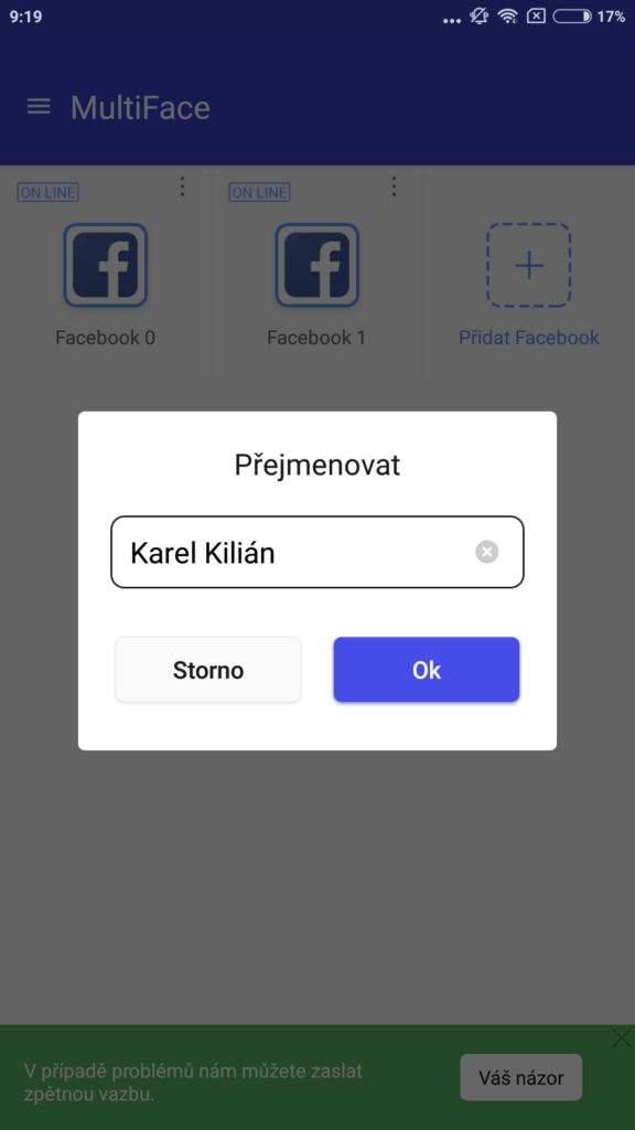 Aplikace MultiFace vám umožní používat více Facebook účtů zároveň Hlavní stránka Recenze Recenze na aplikace Sdílejte: Karel Kilián Publikováno: 20.4.2018 16:00 Žádné komentáře 0 Potřebujete z nějakého důvodu na jednom zařízení používat více účtů Facebooku? Existuje několik možností, jak se s tímto požadavkem vypořádat. V tomto článku vám některé z nich představíme a také vám ukážeme novou aplikaci, která se právě na toto specializuje. Obsah článku Jak používat více účtů? Co slibuje aplikace MultiFace? Jak MultiFace funguje v praxi? Resumé Jak používat více účtů Facebooku? Pokud potřebujete používat dva účty, je patrně nejjednodušší možností si vedle „plnotučné“ aplikace Facebook nainstalovat ještě „odlehčenou“ verzi Facebook Lite. Tu pak jednoduše přihlásíte pod druhým účtem a budete používat pro každý profil jeden program. Na některých telefonech najdete také možnost klonování aplikací či vytváření nezávislých profilů. Například telefony OnePlus podporují Paralelní aplikace pro Facebook, Instagram, Messenger, Telegram, Twitter, WhatsApp a další komunikační a sociální programy. Jedná se v podstatě o vytvoření klonu aplikace v samostatném prostoru, přičemž tento klon je možné přihlásit a používat pod jiným uživatelským účtem. Prakticky identicky fungují i Duální aplikace na telefonech Xiaomi s nadstavbou MIUI. Kromě toho nabízí tento čínský výrobce také funkci Druhý prostor, kdy dojde k vytvoření izolovaného uživatelského profilu, pod kterým lze nainstalované aplikace používat s jinými účty. Obě zmíněná řešení ale mají jedno společné: umožňují paralelní používání jen dvou účtů. Co ale dělat v situaci, kdy potřebujete více účtů Facebooku? Pak je možností nainstalovat si nějakou alternativní aplikaci pro tuto sociální síť (například Friendcaster), nebo zkusit novou aplikaci Clone app&multiple accounts for Facebook-MultiFace, které se budeme věnovat v dalších kapitolách. Co slibuje aplikace MultiFace? Aplikace od ES Global, autorů známého (a bohužel nechvalně proslulého) správce souborů ES File Explorer, slibuje možnost paralelního používání více účtů Facebooku na jednom zařízení. Hlavní výhoda spočívá v možnosti přihlásit se ke všem účtům, ať už soukromým či pracovním. Praktické využití vidíme například na tabletech, kdy jedno zařízení sdílí několik členů rodiny. Co je zásadní: zprávy a notifikace z jednotlivých účtů se nebudou vzájemně ovlivňovat a mezi účty lze snadno a rychle přepínat jedním klepnutím. Jak MultiFace funguje v praxi? Ještě před instalací je nutno podotknout, že aplikace vyžaduje opravdu hodně oprávnění. Proto doporučujeme jejich prostudování a následné zvážení, zda jste ochotni tyto požadavky akceptovat. Po spuštění se ocitnete v prostředí podobném seznamu aplikací. Pokud nemáte nainstalovanou oficiální aplikaci Facebook, vyzve vás program k její instalaci. Ve výchozím stavu jsou zde dvě ikony Facebook 0, Facebook 1 a tlačítko Přidat Facebook. Po klepnutí na ikonu se otevře oficiální aplikace a požádá o přihlašovací údaje. Mezi účty pak přepínáte jednoduše: spustíte MultiFace, klepnete na příslušnou ikonu a otevře se aplikace Facebook pod daným účtem. Pokud na ikonách podržíte prst, zobrazí se kontextová nabídka, kde najdete například možnost vytvoření zástupce daného účtu na domovské obrazovce. K dispozici je také přejmenování zástupce či změna rámečku kolem ikony. Daný účet můžete dočasně pozastavit volbou Stop, nebo úplně Odebrat ze stínové aplikace. Je to jednoduché, rychlé, snadno pochopitelné a funkční řešení. Resumé Aplikaci jsme otestovali na dvou telefonech: OnePlus 5 s Androidem 8.1 a Xiaomi Mi 5s Plus s MIUI 9.2. Zatímco na Xiaomi fungovala přesně tak, jak popisujeme výše, na telefonu OnePlus se „tvářila“, že máme k dispozici dva účty, ale při pokusu o přepnutí nedošlo ani k zobrazení přihlašovací obrazovky. Je tedy možné, že za nějakých podmínek program prostě nefunguje. Nicméně tam, kde funguje, pracuje skutečně tak, jak bychom čekali – k přepnutí účtu stačí jedno klepnutí na ikonku. Clone app&multiple accounts for Facebook-MultiFace je v Obchodě Play přesně týden a za tu dobu si ji nainstalovalo více než tisíc uživatelů. Průměrná známka 4,6 ukazuje jasně převažující spokojenost. Instalační balíček velký jen 4 MB můžete použít na telefonech a tabletech s Androidem 4.4 a vyšším. Clone app&multiple accounts for Facebook-MultiFace ES Global Instalovat (Free) Google Play O autorovi Karel Kilián Karel Kilián je zkušený technický redaktor a copywriter s bohatou praxí v oblasti informačních a komunikačních technologií. Jeho kariéra začala na pozici prodavače, odkud postupně… Více o autorovi Sdílejte: Žádné komentáře Vložit komentář Facebook Mohlo by vás zajímat Jak smazat Instagram? Poradíme, jak dočasně nebo trvale odstranit účet David Trlica 4.2.2019 Nejste sami! Messenger, Facebook, WhatsApp i Instagram mají výpadek Libor Foltýnek 11.12.2024 Konec dětí na Facebooku, TikToku a Instagramu? Další stát zakázal používání sociálních sítí mladistvým Jana Skálová 22.12.2024 "Na tom videu jsi ty?" Ne, útok hackerů přes Messenger. Víme, jak se bránit Marek Houser 10.1.2022 Taky vám z Facebook Messengeru mizí různé funkce? Víme, co se děje Marek Houser 17.12.2020 Chtěl od umělé inteligence recept na přípravu jedovaté houby, ta mu ho poradila Libor Foltýnek 2.12.2024