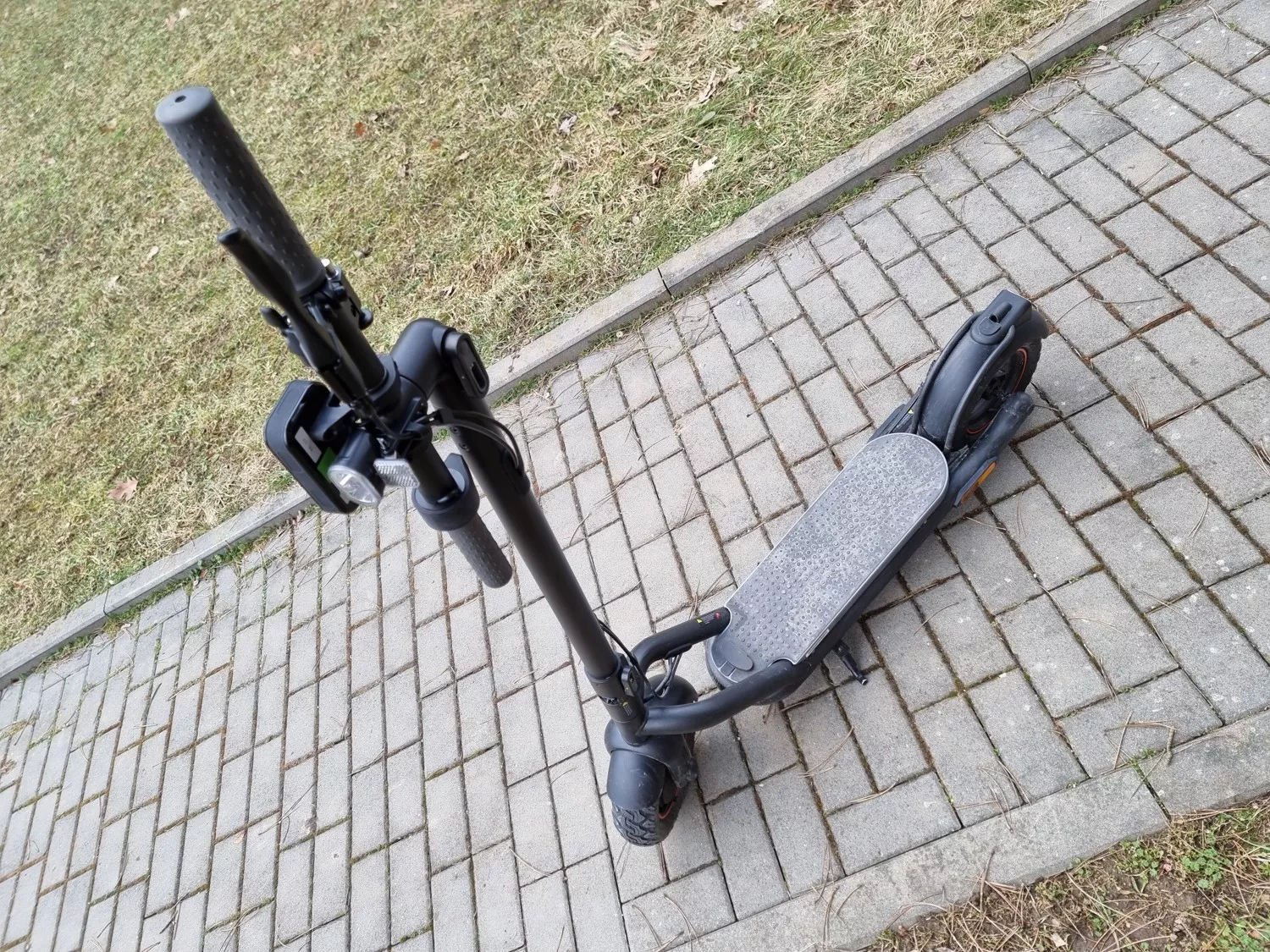Recenze NAVEE N65: Koloběžka, která vás za málo peněz sveze daleko i vysoko Hlavní stránka Recenze Recenze elektrických koloběžek Sdílejte: Marek Houser Publikováno: 15.2.2023 12:00 Žádné komentáře 0 Kromě mobilních telefonů, nositelné elektroniky či různých chytrých zařízení se nám v redakci občas dostane do rukou i produkt na pokraji našeho zájmového spektra. Třeba elektro koloběžka jako NAVEE N65. V mém případě byl tento typ přibližovadla nejen premiérou v rámci testování za účelem recenze, ale také obecně. Nikdy jsem dlouhodobě na žádném „scooteru“ nejezdil a ani neporovnával různé modely mezi sebou. Následující pohled tak může být pro leckoho příliš laický, ale na druhou stranu může někomu vhodně posloužit jako pohled koloběžkového nováčka. Recenze: Elektro koloběžka NAVEE N65 Obsah balení Základní specifikace Konstrukce a skládání Jízdní vlastnosti Displej, ovládání a aplikace Varianty, cena a dostupnost Závěrečné hodnocení Obsah balení Koloběžka dorazila v krabici, do které by se asi akorát vešla i kytara. Akorát tato bedna je rozhodně o dost těžší. Kromě koloběžky se v ní nachází dobře zpracovaný manuál jak k samotnému vozidlu, tak i k mobilní aplikaci, nabíječka s odnímatelným 230V kabelem, plochý klíč na M5 šrouby a osmička imbus. Produkt je zabalený a dovybavený opravdu precizně, což je dobré znamení. Základní specifikace nominální výkon 500 W dojezd až 65 kilometrů rozměry rozložená 119 x 51 x 122 cm složená 121 x 20.5 x 46 cm hmotnost 23,5 kg maximální nosnost 120 kg maximální rychlost 25 km/h maximální stoupání 25 % 10″ nafukovací pneu s cca 3″ šířkou duální brzdy (EABS vpředu a kotoučová vzadu) tempomat, krytí IPX4, aplikace, osvětlení Konstrukce a skládání Již po přečtení základních parametrů a prohlédnutí prvních obrázků většině čtenářů jistě dojde, že tady máme co dočinění s nadprůměrně robustním a výkonným strojem, který se ale příliš nevymyká designu běžných městských elektro koloběžek. Aby mohla zaručit nejen slibovanou nadprůměrnou výdrž, sílu či nosnost, je jasné, že musí být větší i těžší než konkurence. Podstatnou část hmotnosti představují motor a baterie, ale zahanbit se určitě nenechá ani rám z širokých a pevných trubek. Nosit NAVEE N65 složenou delší dobu v ruce nebo ji jen zvedat na patník či do schodů je činnost, u které se zapotí i leckterý chlap, nicméně skládání a rozkládání koloběžky je na druhou stranu úplná pohoda. Neposoudím, nakolik si výrobce vymýšlí s označením „inovativní systém dvojitého otáčení“, ale princip je to opravdu skvělý. Je založený na uvolňování / zacvaknutí dvou páček (jedna u otočných řídítek, druhá u spodního kloubu) a zajišťování pomocí čepu s pružinou. Cvak, otočit řídítka, cvak, zajistit řídítka v otočeném směru, cvak, zalomit hlavní opěru a cvak, zajistit čep. Celý tento proces trvá kratší dobu než napsat předchozí větu. I s tímto mechanismem je přitom koloběžka NAVEE N65 pod 110kg jezdcem až neuvěřitelně pevná. Ani nejvyšší rychlosti jsem se nesetkal s jakýmkoli skřípáním, vrzáním nebo vůlí v některých spojích či kloubech. Rozhodně potěší i nadstandardně velké a protiskluzové stupadlo, které překvapivě není extrémně vysoko. Řídítka jsou dost velká a mají příjemný gumový grip, což vlastně platí i pro ovládací „plynovou“ páčku se dvěma tlačítky. Mezi madly ční obdélníkový displej, jehož zobrazované údaje rozeberu později, ale nyní zmíním, že je dost lesklý a celkem nevýrazný, takže není úplně pohodlně čitelný v jasnějším prostředí. K nedokonalostem zařadím i stojánek, který nebudí stoprocentní důvěru a po pár týdnech používání už o něj mám trochu starost. Ale třeba zbytečnou. Jízdní vlastnosti I když nemá NAVEE N65 žádné mechanické odpružení, desetipalcová nafukovací kola s téměř osmicentimetrovou šířkou se papírově a nakonec i pocitově částečně starají o to, že si koloběžka poradí také s obtížnějším terénem a poskytuje zvýšený komfort. V porovnání s modely s pevnými koly bezpochyby. Jeden prosincový večer jsem se shodou okolností dostal do situace, kdy jsem předem plánoval pendlovat na koloběžce rychle po městě, ale zrovna ten den napadlo asi 10 centimetrů sněhu. Tak jsem to vzal jako výzvu. Někteří chodci si klepali na čelo, ale díky širokým kolům a hrubému vzorku (a z hlediska ochrany elektroniky taky krytí IPX4) byla jízda až překvapivě stabilní a jistá. NAVEE N65 splňuje evropské normy a je tedy mimo jiné i v ČR limitována na rychlost 25 km/h. Po možnosti manuálního posunutí maximální rychlosti jsem zatím pátral marně a výrobce si toto evidentně dost hlídá. Určitě víc než modely jiných značek. Rychlosti jízdy má koloběžka celkem čtyři. Jednička představuje 15 km/h, dvojka 20 km/h a trojka zmíněných 25 km/h. K tomu se dá tlačítkem SET zapnout i extra pomalé tempo odpovídající chůzi. Teď ale k tomu patrně nejzajímavějšímu: Koloběžka má NOMINÁLNÍ výkon 500 W, což je v kombinaci s dojezdem až 65 kilometrů a maximální nosností 120 kg skvělé. NAVEE N65 je tedy na své zařazení (stále bych ji bral jako kompaktní městské koloběžky) skutečně velmi silná a proto si o sobě může dovolit tvrdit, že vyjede i kopec s 25% stoupáním. Pochopitelně záleží na hmotnosti jezdce, ale i mě zvládne tento stroj vozit do úctyhodného kopce. Záleží i na nabití baterie. I maximální dojezd je samozřejmě nepřímo úměrný hmotnosti jezdce a současně i maximální rychlosti. V mém případě je 65 kilometrů nedosažitelná meta, ale na nějakých čtyř