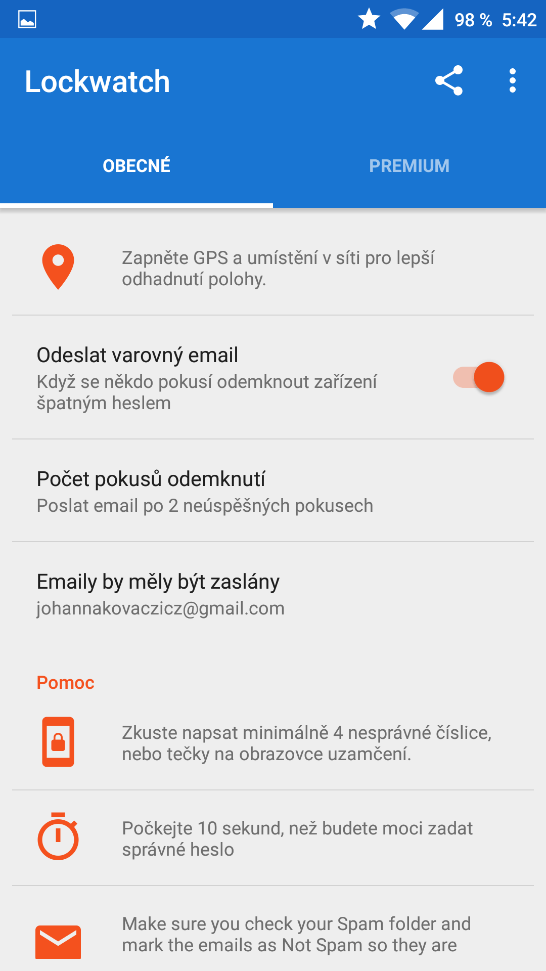Lockwatch: Aplikace vyfotí slídila a pošle vám ho emailem Hlavní stránka Recenze Recenze na aplikace Sdílejte: Johanna Kovaczicz Publikováno: 13.1.2016 22:00 8 komentářů 8 Mezi základní prvky ochrany zařízení s Androidem patří zamknutá obrazovka – ať už pomocí gesta, otisku prstu nebo pinu. Pokud máte kolem sebe zvědavé slídily nebo vám telefon někdo ukradl, některé z locksreenů třetích stran mohou výrazně pomoci. Nabízí totiž funkci vyfotografování případného vetřelce, který se bude snažit nastavený pin uhádnout. Pokud však nechcete měnit locksreen a rádi byste komplexnější funkce a zabezpečení, doporučujeme aplikaci Lockwatch. Lockwatch vyfotí všechny nezvané vetřelce a upozorní vás emailem Vaše Android zařízení v sobě ukrývají spoustu citlivých dat. V malé krabičce je ukryt téměř celý váš osobní život – rozhovory, kontakty, platební informace či fotografie. Základní prevencí proti zneužití takových dat je samozřejmě nastavené zabezpečení. Málokdy však různé slídily z vašeho okolí, případně zloděje, pin kód odradí. Minimálně vyzkouší několik obecně známých hesel v podobě čtyř nul nebo číslice od jedné do čtyř. Pokud se k takovému kroku odhodlají, s aplikací Lockwatch máte v tuto chvíli navrch vy. Aplikace může pomoci při identifikování zloděje Lockwatch je aplikace zaměřující se na lepší zabezpečení telefonu. Před samotnou krádeží váš telefon neuchrání, výrazně však může pomoci při dopadení konkrétní osoby. Verze zdarma nabízí celou škálu funkcí, přičemž tou nejhlavnější je vyfocení útočníka přední kamerou po zadání špatného hesla. Po kolika pokusech se tak stane, určujete vy. Následné snímky vám pak okamžitě přijdou na email – pokud máte trvale zapnutou GPS, tak i přesná poloha zařízení. Na proces nebude slídil samozřejmě nijak upozorněn. Žádné vysávání baterie Pokud máte obavy z případného vysávání baterie, nechte je stranou. Aplikace stále na pozadí neběží, aktivuje se až po prvním špatném zadání hesla. Aby se tak mohlo stát, musíte Lockwatch nejprve udělit oprávnění. Za zmínku stojí rovněž premium funkce. Za cenu 150 korun se vám navíc dostane: Upozornění na změnu SIM karty Upozornění na zapnutí zařízení, pokud bylo vypnuto ze zamykací obrazovky Focení sekvence snímků Nahrávání zvuku a další Lockwatch je jednou z aplikací, kterou se vyplatí mít Aplikace funguje velmi spolehlivě a notifikační email s přiloženou fotografií dostanete okamžitě. Lockwatch neobsahuje reklamy a disponuje velmi jednoduchým rozhraním, které obsahuje pouze příslušné nastavení. Lockwatch - Thief Catcher BlokeTech Instalovat (Free) Google Play O autorovi Johanna Kovaczicz Sdílejte: 8 komentářů Vložit komentář Mohlo by vás zajímat PixWords - nápověda pro 5200 obrázků s odpověďmi Jan Tipmann 27.3.2017 Velký výprodej chytrých zásuvek v Lidlu! Některé modely koupíte za hubičku Jana Skálová 8.1. Xiaomi spustilo obří zimní výprodej. Za mobily, tablety i další elektroniku ušetříte tisíce korun Jana Skálová 7.1. Android Auto dostane schopnějšího asistenta! Takto (zhruba) vypadá Gemini v akci Adam Kurfürst 9.1. Tohle je budoucnost Galaxy Watch: Samsung předvedl hodinky s pokročilým displejem Adam Kurfürst 8.1. Datart prodává extra oblíbené Redmi za nesmyslně nízkou cenu! Kde je háček? Adam Kurfürst 28.12.2024
