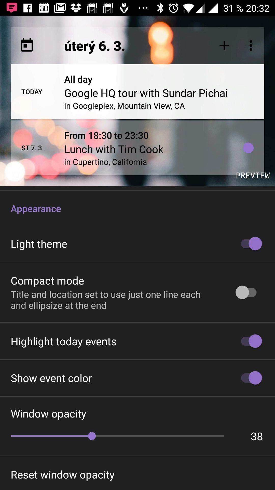 Nechcete chodit pozdě? Moderní widget zkrotí váš čas Hlavní stránka Recenze Recenze na aplikace Sdílejte: Karel Kilián Publikováno: 7.3.2018 08:12 9 komentářů 9 Plánujete pečlivě svůj čas? Pak možná oceníte možnost mít svůj kalendář na očích. Nejrůznějších kalendářových widgetů na domovskou obrazovku jsou v Obchodě Play desítky, nicméně Home Agenda je moderní widget, žhavá a nesporně zajímavá novinka. Proto vám ho představíme podrobněji. Obsah článku Co aplikace slibuje? Jak widget funguje v praxi? Resumé Home Agenda – Calendar Widget Autorem tohoto widgetu je vývojář Francisco Franco, který čtenářům našeho portálu jistě není neznámý. Z jeho portfolia jsme recenzovali například obrázkovou galerii Focus, či jeho pozitivně-motivační program Sequel. Patrně největší slávy však tento programátor dosáhl svým alternativním kernelem Franco Kernel. Sám Franco v popisku v Obchodě Play konstatuje, že uživatelé jsou často závislí na svých kalendářích. Právě proto přichází s vlastním řešením, které má vylepšit uživatelskou zkušenost s tímto typem aplikací. Jeho moderní widget sází především na eleganci a futuristický vzhled, který si jistě najde své příznivce. Z funkčního hlediska pochopitelně nechybí synchronizace s prakticky jakoukoli kalendářovou databází. Widget je kompatibilní s launchery jako jsou Nova Launcher, Action Launcher, Pixel Launcher, OnePlus Launcher, Lawnchair a mnoho dalších. Než se pustíme do recenze, měli bychom upozornit, že se jedná o placenou aplikaci, která přijde na 65 Kč. Moderní widget kalendáře na očích Aplikaci najdete po instalaci na obvyklém místě – tedy v seznamu widgetů – jako Home Agenda – Calendar Widget. K dispozici je v jediném rozměru 4×2 a po vytažení na plochu se vás ujme anglicky „hovořící“ průvodce. Ten ale v podstatě jen požádá o přístup ke kalendáři, a tím jeho úloha končí. Velikost widgetu lze měnit, takže kromě výchozího 4×2 ho můžete třeba roztáhnout na celou obrazovku, nebo naopak zmenšit jen na nezbytný rozměr. Obsahem widgetu je možné posouvat, takže jednoduše můžete listovat svým kalendářem dle libosti. Vzhled odpovídá klasickému pohledu „agendy“, kde jsou jednotlivé události prezentovány formou seznamu. Widget je průhledný, takže skrz něj bude prosvítat tapeta na pozadí, ale textový obsah je ve většině případů dobře čitelný. V záhlaví je zobrazeno aktuální datum a den v týdnu, dále tu najdete tlačítko pro zadání nové události (zadávání probíhá ve výchozí nastavené aplikaci) a kontextovou nabídku sloužící pro vstup do nastavení. Možnosti nastavení jsou velmi široké. První dva přepínače rozhodují o tom, zda se na widgetu budou zobrazovat i události, jejichž čas vypršel, a jestli se má ukazovat jen dnešní a zítřejší den. Zapnout si také můžete takzvané světlé grafické téma Light theme, které trochu zvýrazňuje widget proti pozadí či kompaktní režim Compact mode. Konfigurovat lze i průhlednost řádků s událostmi a panelu nástrojů. Používáte-li více kalendářů, můžete si vybrat ty, které se mají, a naopak nemají na widgetu zobrazovat. U každé události se pak kromě názvu zobrazuje datum a čas, barva události a případně poloha. Potenciální možnost vylepšení vidíme například v možnosti okamžité navigace na místo události jedním klepnutím. Resumé Widget Home Agenda vám nabídne jednoduchý, ale přesto dobře vypadající kalendář na očích. Přes minimalistické provedení poskytuje tento moderní widget dostatek informací o vašich plánech. Z hlediska funkcí mu (snad kromě možnosti spuštění navigace) nechybí nic podstatného. Samozřejmě časem bychom očekávali lokalizaci do češtiny – zatím je k dispozici v několika jazykových mutacích, mezi kterými naše mateřština bohužel chybí. Aplikace je v Obchodě Play od poloviny února a za tu dobu si ji nainstalovalo více než tisíc uživatelů. O jejich spokojenosti svědčí pěkná průměrná známka 4,8. Instalační balíček velký jen 1,4 MB, lze použít na telefonech a tabletech s Androidem 5.0 a vyšším. Calendar Widget Agenda Planner Francisco Franco Instalovat (€1.79) Google Play Máte rádi svůj kalendář na očích? O autorovi Karel Kilián Karel Kilián je zkušený technický redaktor a copywriter s bohatou praxí v oblasti informačních a komunikačních technologií. Jeho kariéra začala na pozici prodavače, odkud postupně… Více o autorovi Sdílejte: 9 komentářů Vložit komentář Francisco Franco Kalendář widget Mohlo by vás zajímat Váš Android (zřejmě) dostal extra šikovný widget. Přijde vhod, máte-li chytrou domácnost Adam Kurfürst 17.10.2024 Aplikace Mapy Google vás nepříjemně překvapí. Z mapy zřejmě zmizí oblíbený prvek Jakub Kárník 18.10.2024 Nejlepší emailový klient pro Android? Emaily rychle, jednoduše a na jednom místě Lukáš Altman 2.6.2019 Mobilní Mapy.cz mají skvělou novinku, která šetří čas Marek Houser 10.6.2022 Kalendář Google se naučil užitečnou funkci. Měl ji ale už dávno umět Jakub Kárník 10.9.2023 Mrkněte na nové widgety v One UI 7. Některé z nich můžete mít už nyní Adam Kurfürst 29.7.2024