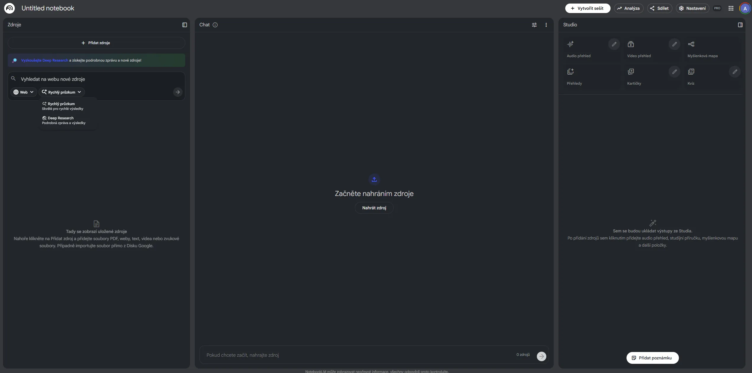 NotebookLM přidává Deep Research a zavádí podporu pro nové formáty souborů Hlavní stránka Zprávičky NotebookLM získává funkci Deep Research pro automatizované online vyhledávání Aplikace nově podporuje Google Sheets, Word dokumenty a obrázky Všechny funkce budou dostupné během příštího týdne Sdílejte: Adam Kurfürst Publikováno: 16.11.2025 10:00 Žádné komentáře 0 Google rozšiřuje možnosti svého výzkumného nástroje NotebookLM o novou funkci Deep Research, kterou můžeme znát z Gemini, a podporu dalších formátů souborů. Aktualizace má uživatelům usnadnit práci se zdroji a automatizovat časově náročné vyhledávání informací na internetu. Deep Research automatizuje online výzkum Funkce Deep Research funguje jako automatický výzkumný asistent, který na základě zadané otázky vytvoří plán výzkumu a následně prohledá stovky webových stránek. Během několika minut vygeneruje strukturovanou zprávu s relevantními zdroji, které lze okamžitě přidat do sešitu. Proces začíná výběrem možnosti Web v panelu zdrojů. Uživatel má na výběr mezi rychlým vyhledáváním pro základní rešerše nebo důkladnějším průzkumem pro komplexnější témata. Systém během vyhledávání průběžně upravuje svou strategii podle nalezených informací a vytváří organizovaný report podložený konkrétními zdroji. Zpráva z Deep Research není konečným produktem – slouží jako základ pro další práci. Uživatelé mohou přidávat další zdroje, zatímco Deep Research běží na pozadí, a využívat všechny funkce NotebookLM včetně generování Audio nebo Video přehledů. Rozšíření o nové formáty souborů NotebookLM nově zpracuje Google Sheets pro analýzu strukturovaných dat a statistik. Soubory z Google Drive lze přidat jednoduše zkopírováním URL adresy, stejně jako webové stránky nebo YouTube videa. Aplikace dokonce umožňuje vložit více odkazů najednou oddělených čárkami. Google Gemini dostává šikovné vylepšení! Po této novince v Deep Research volali sami uživatelé Adam Kurfürst Zprávičky Adam Kurfürst Zprávičky Mezi další novinky patří podpora obrázků, díky které můžete nahrát fotografie ručně psaných poznámek nebo naskenované brožury. PDF dokumenty z Google Drive se dají přidat přímo bez nutnosti stahování a opětovného nahrávání. Aplikace také nově podporuje Microsoft Word dokumenty ve formátu .docx. Dostupnost nových funkcí Většina funkcí bude uživatelům k dispozici během příštího týdne. Výjimku tvoří podpora obrázků, která se rozšíří postupně během několika následujících týdnů. Google všechny novinky zpřístupní zdarma všem uživatelům NotebookLM. Využijete nové funkce NotebookLM pro svou práci nebo studium? Zdroje: Google, vlastní O autorovi Adam Kurfürst Adam studuje na gymnáziu a technologické žurnalistice se věnuje od svých 14 let. Pakliže pomineme jeho vášeň pro chytré telefony, tablety a příslušenství, rád se… Více o autorovi Sdílejte: Žádné komentáře Vložit komentář AI NotebookLM Umělá inteligence Mohlo by vás zajímat Android Auto dostane schopnějšího asistenta! Takto (zhruba) vypadá Gemini v akci Adam Kurfürst 9.1.2025 Fotky Google dají uživatelům větší kontrolu, chyby AI půjde opravit Libor Foltýnek 10.1.2025 Roztomilý robůtek od Samsungu zamíří do domácností. Malý AI asistent pomůže zahnat nudu i samotu Jana Skálová 9.1.2025 Předpověď počasí vstupuje do nové éry. Google představil převratnou technologii a uvolnil ji zdarma Jakub Kárník 6.12.2024 RTX 5070 nabídne výkon vlajkové RTX 4090! Nvidia odhalila novou generaci grafických karet, známe české ceny Jakub Kárník 7.1.2025 Google uhodil hřebíček na hlavičku. Novou funkci Gemini si uživatelé zamilovali a teď je navíc ještě lepší Adam Kurfürst 16.11.2024