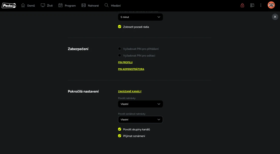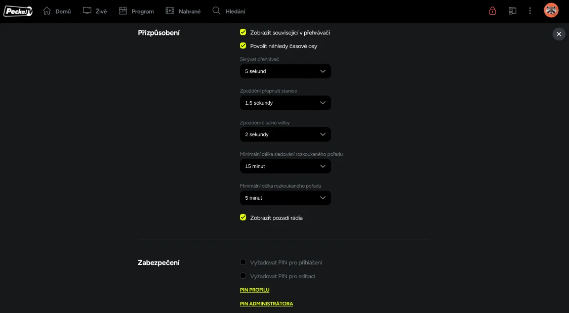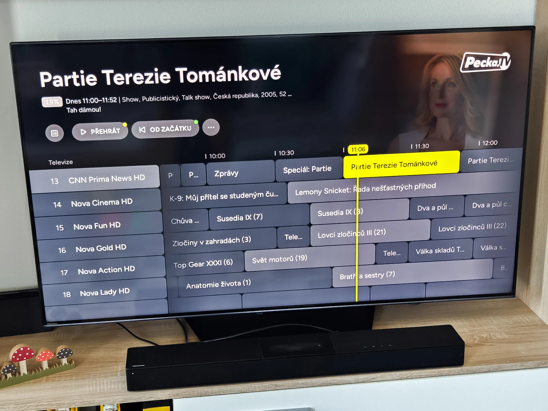 Pecka.TV: otestovali jsme službu, která dělá čest svému jménu Hlavní stránka Recenze Ostatní recenze Televizní vysílání poskytované skrze internet roste neustále na popularitě Dokonce na toto technické řešení přecházejí i tradiční poskytovatelé, kteří jej nabízí namísto klasické "kabelovky" Vedle těch je zde se svými zajímavými nabídkami řada alternativních služeb, a na jednu takovou se dnes podíváme Sdílejte: Vašek Švec Publikováno: 22.10.2025 20:00 Žádné komentáře 0 Na současném trhu nalezneme slušnou řádků poskytovatelů online televizního vysílání (IPTV, chcete-li). Řada z nich se přitom od sebe až překvapivě liší. Zásadní rozdíly mohou panovat nejen v programové nabídce a ceně, ale i přívětivosti rozhraní, podpoře jednotlivých platforem nebo třeba maximálním množství souběžných streamů. My se dnes podíváme na službu Pecka.TV, která před pár dny oslavila svůj první rok. Co nabídne v porovnání se svou konkurencí a je v praxi opravdu tak peckovní? To ukáže náš test. Jak to celé vlastně funguje? Ceny tarifů Pecka.TV Rozhraní, aneb jak se Pecka používá V nastavení naleznete vše potřebné Pecka.TV je v mnoha ohledech vážně pecka Jak to celé vlastně funguje? Pokud patříte spíše mezi konzervativnější uživatele a dosud nemáte s žádnou podobnou službou zkušenost, mám pro vás dobrou zprávu. Pro její sjednání nemusíte nikam volat, zajišťovat instalaci či nic podobného. Vše funguje podobně jako třeba Netflix. Jednoduše se zaregistrujete, vyberete plán předplatného a můžete sledovat. Pecka.TV pak nabízí možnost vyzkoušet tarif s výstižným názvem „Zlatá střední“ na 7 dní za 1 Kč. Uživatel tak nekupuje zajíce v pytli a má dostatek času na otestování, zda u něj vše funguje jak má a služby s rozhraním Pecka.TV mu vyhovují. Nutno pak dodat, že – stejně jako u zmíněného Netflixu – následně platíte měsíční předplatné. Pochopitelně vás tak neváže žádná smlouva ani závazek a opakované měsíční platby tak můžete kdykoli zrušit. Zrovna tak můžete plynule přecházet mezi tarify a to oběma směry, tedy jak z levnějšího na dražší, tak naopak. Pecku si užijete na celé řadě platforem Ačkoli lze Pecka.TV stále považovat za poměrně mladou službu, nabídka podporovaných platforem na to zdaleka nevypadá. Vyzdvihnout musím podporu televizorů Hisense, které se řadí mezi velmi dobře prodávané, nabídka aplikací pro ně je však zatím obecně spíše skromná. Pokud však nemáte chytrou televizi vůbec, anebo je staršího data výroby, budete ji muset dovybavit. Na trhu je celá řada krabiček s Google TV a použitelné kousky přitom pořídíte již za něco málo přes tisícovku. Aktuálně lze službu spustit na následujících zařízeních: GoogleTV (AndroidTV) Androd iOS & iPadOS nejrozšířenější webové prohlížeče (Chrome, Edge, Firefox, atd.) Samsung TV (modelový rok 2020 a novější) LG TV (modelový rok 2017 a novější) Hisense TV (modelový rok 2022 a novější) AppleTV herní konzole Xbox Series Přehledná nabídka má i drobná úskalí Oproti většině poskytovatelů nabízí Pecka.TV poměrně přímočarou nabídku bez různých doplňkových balíčků a služeb. Nenajdete zde tedy obligátní balíčky jako Sport, Filmy, Dokumenty ale pokud chcete rozšířit portfolio svých programů, zvolíte rovnou vyšší úroveň předplatného. Na jednu stranu to pro někoho může znamenat horší flexibilitu a nutnost platit i za programy, které nevyžaduje. Na stranu druhou jsou příplatky mezi jednotlivými tarify Pecka.TV rozumně odstupňované. Naopak doplňkové balíčky často cenu dané služby ve finále výrazně prodražují. Osobně jsem tedy spokojený s řešením, které testovaná služba zvolila. Konkrétně je pak nabídka rozdělena do celkem šesti tarifů a tří různých skladeb kanálů. Pouze nabídka základního tarifu se 103 kanály je pak poměrně osekaná co se týče sportovních, dětských a dokumentárních stanic – zde čekejte opravdu jen základ. Prostřední tarify se 147 stanicemi pak již nabídnou poměrně pestrý výběr i v těchto kategoriích a vše uzavírají tarify se 162 stanicemi. Aktuální nabídku stanic pak naleznete na webu služby Pecka.TV. Za sebe mohu říct, že mi v nabídce žádná stanice zásadně nechybí a naopak kvituji přítomnost Spektrum HD, které si oblíbila manželka a překvapivě zdaleka ne každá podobná služba jej nabízí. Udělal jsem si menší anketu i v rámci rodiny a přátel a vedle absence stanic HBO, jejichž absenci si dokážu vysvětlit vyšší cenou, jsme narazili pouze na jedinou stanici, která v nabídce Pecka.TV chybí a sice Warner TV. Té je trochu škoda, vzhledem k tomu, že řada služeb ji nabízí již nejnižšího tarifu. V neposlední řadě pak nesmím opomenout tarify rozšiřující služby na více zařízení. V základu máte totiž možnost přehrávat na jednom (v případě nejlevnějšího tarifu) respektive dvou (v případě dvou dražších tarifů) zařízeních současně. Pokud byste chtěli mít možnost přehrávat na třech, čtyřech nebo dokonce šesti zařízeních současně, musíte volit z k tomu určených tarifů. Jediný tarif pro tři pak obsahuje 147 kanálů, tarify pro 4 a 6 současně sledujících obsahují již „plnou palbu“ přičemž nejvyšší tarif obsahuje bonus v podobě přeskakování reklam na stanicích Primy. Zde bych měl drobnou technickou výtku, neboť automatické přeskakování je přibližně o minutu posunuté a vy tak přicházíte o kousek pořadu abyste ještě viděl posledních několik reklam. Reálně to však nevidím jako velký problém. Ceny tarifů Pecka.TV Název tarifuPočet stanicPočet souběžných sledováníPřeskakování reklam na PriměCenaPro nen