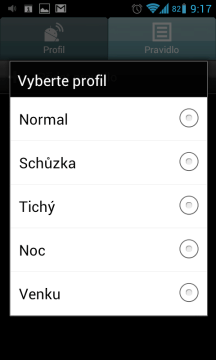 Profile Scheduler: automatické profily pro Android Hlavní stránka TOP Sdílejte: Karel Kilián Publikováno: 11.10.2012 06:00 (Aktualizováno: 24.10.2012 15:19) 40 komentářů 40 Chcete, aby byl váš „chytrý telefon“ ještě o něco chytřejší? Ideálně aby se o sebe postaral sám? Zkuste Profile Scheduler – aplikaci, která vás zbaví starostí a nastaví telefon vždy podle aktuální situace! Už vás někdy ze spánku probudila SMSka nebo příchozí hovor? Koho jste pak proklínali? Odesílatele, volajícího, telefon, nebo sebe – za to, že jste mobil na noc nevypnuli, nebo nepřepnuli do tichého režimu? Jenže kdo má myslet každý večer na vypnutí vyzvánění a ráno zase na jeho zapnutí? Odpověď je jednoduchá: nechte za sebe myslet chytré profily! V minulosti jsme vám prezentovali hned několik aplikací pro automatizované ovládání/nastavení telefonu – viz například recenze Locale: Inteligentní automatické profily pro Android, AutomateIt – naučte svůj telefon víc, MacroDroid – Váš telefon má na víc, či Timeriffic: načasujte si profily. Oblíbeným zástupcem této skupiny aplikací je také Llama, kterou jsme ale na našich stránkách zatím nerecenzovali. Dnes si představíme další z této kategorie aplikací, které na základě zadaných podmínek nastaví parametry telefonu dle vašich představ: jmenuje se Profile Scheduler (pamětníci chytrých Nokií se Symbianem S60 si možná vzpomenou …) a pochází z dílny vývojářského studia Wetpalm. Uživatelské rozhraní Po prvním spuštění se zobrazí licenční ujednání, se kterým je nutné nejprve souhlasit, následně se ukáže několik „rychlých tipů“ pro používání programu. Uživatelské rozhraní aplikace se skládá ze dvou sekcí, mezi kterými budete přepínat záložkami v horní části obrazovky (poněkud nepochopitelně zde nefunguje stále běžnější gesto odsunutí do strany). Profily Profily slouží k definování skupiny současně použitých nastavení. Na první záložce najdete několik přednastavených profilů (Normal, který je výchozí a není možné ho odstranit, Schůzka, Tichý, Noc a Venku). To, který profil je právě aktivní, poznáte podle modré tečky napravo od jeho názvu, ale též v notifikační liště, kde je zobrazována ikona a názvy právě aktuálního profilu a pravidla. Kterýkoli profil můžete manuálně aktivovat jednoduchým tapnutím na jeho název. Existující profily můžete dle libosti upravovat, případně odstranit, ale také – přes tlačítko Přidat profil – zakládat vlastní. Dlouhým tapnutím na jeden z profilů vyvoláte kontextovou nabídku s následujícími možnostmi: Upravit – úprava parametrů již existujícího profilu. Časovač – nastaví zvolený profil na zadanou dobu (15/30 minut, 1/2/3 hodiny, vlastní doba) a pak se vrátí k původnímu profilu. To oceníte například tehdy, pokud se chystáte na schůzku, během které nechcete být rušeni. Zamknout – uzamkne daný profil a zabrání jeho přepsání pravidly. Odstranit – odstraní zvolený profil. Kopírovat – vytvoří nový profil, přičemž nastavení převezme od již existujícího. To se hodí například v případě, kdy se nový profil liší od již existujícího jen v některých položkách. U každého profilu můžete nastavit následující parametry: Jméno profilu a Ikona slouží k jednodušší identifikaci profilu v seznamu a v notifikační liště. Na výběr je přitom dvacet různých ikon. Whitelist povolit a Vyber Whitelist slouží k nastavení seznamu čísel, která se vám při nastavení zvoleného profilu mohou dovolat. O této funkci si povíme dále. Sekce Zvuk dovoluje nastavit hlasitost (zvlášť pro vyzvánění, oznámení, alarm, média, systém a hlas), vibrace, vyzváněcí tón, zvuk pro oznámení, tónovou a vibrační odezvu. U všech položek je možné nastavit konkrétní hodnoty, nebo volit mezi zapnutím, vypnutím, nebo žádnou změnou (proti předchozímu platnému profilu). Sekce Bezdrátová připojení a sítě umožňuje zapínat/vypínat či ponechávat nastavení režimu V letadle, Wi-Fi, Mobilních dat a Bluetooth. Pod Displej můžete nastavit jas displeje (konkrétní hodnotu od 0 do 255, automatický jas, nebo beze změny), dobu pro zhasnutí obrazovky (15/30 sekund, 1/2/5/10/30 minut, nikdy), automatické otáčení a volbu tapety. Dále je možné zapínat a vypínat automatickou synchronizaci, spouštět zvolenou aplikaci při aktivaci profilu (například navigaci při profilu určeného pro jízdu autem), nebo zapínat a vypínat GPS přijímač (sami autoři upozorňují, že Google zablokoval aplikacím třetích stran přístup k zapínání GPS, a že tedy tato funkce nemusí fungovat na všech telefonech). V sekci Profily tedy nastavíte co má telefon dělat. Teď mu ještě musíme říci, kdy, kromě manuálního zapnutí profilu, to má dělat. Pravidla Pravidla slouží k automatické aktivaci nastavených profilů na základě definovaných podmínek. V sekci Pravidlo nenajdeme žádná předpřipravená nastavení – budete si tedy muset nastavit vlastní sadu pravidel. K tomu slouží tlačítko Přidat pravidlo. Jako první se vybírá z již existujících profilů ten, na který se bude pravidlo vztahovat. Následně přichází pojmenování vytvářeného pravidla. Poté se již dostanete k nastavení podrobností, kde můžete ovlivnit: Jméno pravidla – lze kdykoli změnit. Stav pravidla (zapnuto/vypnuto). Profil – také lze dodatečně změnit zvolený profil. To nejdůležitější Podmínky, kdy je dané pravidlo platné a profil tedy aktivní – podrobnosti a možnosti si probereme dále. Pokud podmínka není splněna – výběr profilu, který bude platit v případě, že podmínka neplatí. Pravidlo (a tedy daný profil) lze aktivovat v závislosti na celé řadě podmínek: Plán