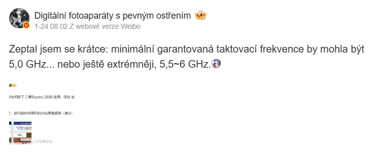 Qualcomm prý připravuje nabušený čipset pro letošní vlajky. Spekuluje se o 6GHz frekvenci Hlavní stránka Zprávičky Qualcomm údajně chystá Snapdragon 8 Elite Gen 6 ve dvou verzích včetně výkonnější Pro varianty Verze Pro by mohla dosáhnout frekvencí 5 GHz díky speciální technologii chlazení od Samsungu Oba čipy mají vzniknout na 2nm procesu od TSMC a dorazit ve druhé polovině roku 2026 Sdílejte: Adam Kurfürst Publikováno: 25.1.2026 22:00 Žádné komentáře 0 O tom, že Qualcomm pracuje na dvou verzích svého příštího vlajkového čipsetu, se spekuluje už od loňského listopadu (a vyznat se v mobilních procesorech tak bude pro laika ještě složitější). Nyní se objevují první konkrétní informace o tom, co by údajná verze Pro mohla přinést – a čísla jsou to vskutku zajímavá. 5 GHz jako základ, strop možná ještě výš Podle informátora Fixed Focus Digital, který své poznatky sdílí na čínské sociální síti Weibo, dosahuje Snapdragon 8 Elite Gen 6 Pro v rámci prvních testů frekvencí okolo 5 GHz. To by měla být minimální garantovaná hodnota, přičemž absolutní strop by se mohl pohybovat mezi 5,5 až 6 GHz. Realističtější je nicméně ona nižší hranice. Strojově přeloženo z čínštiny Pro srovnání – aktuální Snapdragon 8 Elite Gen 5 dosahuje na svých výkonných jádrech maximálně 4,61 GHz, speciální verze pro Samsung Galaxy S26 pak údajně 4,74 GHz. Překonání hranice 5 GHz by tak představovalo významný milník pro mobilní čipy. Klíčem je chlazení od Samsungu Dosažení takových frekvencí má umožnit technologie Heat Pass Block (HBP), kterou Samsung vyvinul pro svůj čipset Exynos 2600. Jde o řešení, které integruje chladič přímo do pouzdra čipu a výrazně zlepšuje odvod tepla. Právě tepelné limity jsou totiž hlavní překážkou, proč mobilní procesory nemohou dosahovat vyšších frekvencí. MediaTek ukázal nabušený Dimensity 9500s. Dostanou ho levnější vlajky, spoléhá na velká jádra a velkou cache Adam Kurfürst Zprávičky Adam Kurfürst Zprávičky Oba čipsety – standardní i Pro verze – mají být vyráběny 2nm procesem TSMC N2P a využívat třetí generaci vlastní CPU architektury Qualcommu s konfigurací jader 2+3+3. Hlavní rozdíly mezi verzemi by měly spočívat ve výkonu GPU, přičemž pouze Pro varianta má podporovat paměti LPDDR6. Premiéra obou čipsetů se očekává ve druhé polovině roku 2026. Zda se spekulace potvrdí, ukáže čas. Co říkáte na možnost 5GHz mobilního čipsetu? Zdroje: Gizmochina (1, 2), Wccftech O autorovi Adam Kurfürst Adam studuje na gymnáziu a technologické žurnalistice se věnuje od svých 14 let. Pakliže pomineme jeho vášeň pro chytré telefony, tablety a příslušenství, rád se… Více o autorovi Sdílejte: Žádné komentáře Vložit komentář čipset Qualcomm spekulace Mohlo by vás zajímat Android XR oficiálně představen! Nový operační systém bere dech, první ukázky vypadají famózně Jakub Kárník 13.12.2024 POCO F7 bude hvězda! Výdrží prý předčí i dražší konkurenci a výkonem nezklame Adam Kurfürst 25.12.2024 MediaTek představil procesor snů! Dostanou ho telefony střední třídy, první bude Xiaomi Jakub Kárník 23.12.2024 2nm čipy se odkládají. Nvidia a Qualcomm hledají řešení u Samsungu Libor Foltýnek 6.1.2025 Tento telefon s královským výkonem přijde i do Evropy. Má nabídnout obří baterii i extra plynulý displej Adam Kurfürst 10.11.2024 Máte po krk obřích mobilů? OnePlus chystá výkonnou bestii v menším těle Adam Kurfürst 7.12.2024