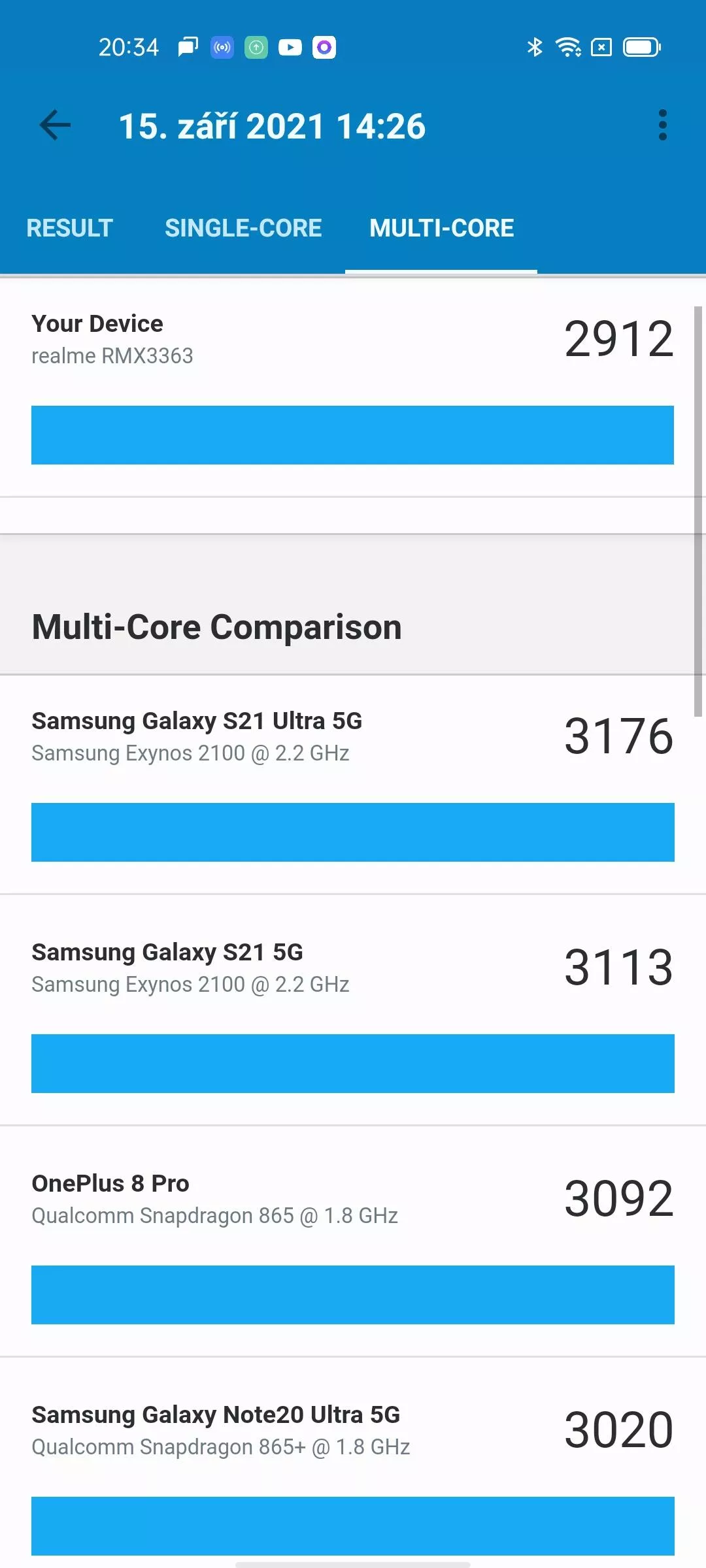 realme GT Master Edition recenze: výborný telefon za zajímavou cenu. Má nějaké chyby? Hlavní stránka Recenze Recenze telefonů Sdílejte: Jakub Kárník Publikováno: 16.9.2021 16:05 (Aktualizováno: 31.12.2022 12:44) Žádné komentáře 0 Nebudeme si nic nalhávat, společnost realme nám v tom dělá trochu binec. V březnu letošního roku nám totiž představila opravdu zajímavý realme GT, jehož recenzi si u nás na webu můžete přečíst, aby o pár měsíců později představila dva další – realme GT Master Edition a realme GT Master Explorer Edition. Ano, víme. Vyznat se ve všech modelech není jednoduché. Rozdíly mezi jednotlivými modely je ale zbytečné řešit, jelikož u nás se verze Explorer neprodává. To však neznamená, že by si realme GT Master Edition nezasloužilo pozornost. Jedná se totiž o poměrně zajímavý, ačkoliv ne bezchybný telefon. Obsah recenze realme GT Master Obsah balení Kvalita zpracování a vzhled Displej Hardware Prostředí realme UI 2.0 Výdrž baterie Fotoaparáty Cena a dostupnost Závěrečné zhodnocení Obsah balení realme GT Master realme už několikrát ukázalo, že by mohlo některé ostatní výrobce učit, jak má vypadat příslušenství dodané s telefonem. Pevná papírová krabička budí už na první pohled dojem, že jste si koupili dražší telefon. Po otevření v podstatě okamžitě spatříte telefon, ovšem tím zdaleka nekončíme. Samozřejmostí je USB-A/USB-C nabíjecí kabel a SuperDart adaptér, díky kterému můžete telefon nabíjet maximální možnou rychlostí. Třešničkou na dortu je pak silikonové pouzdro, které má poměrně hladký povrch a telefon díky tomu velmi dobře padne do ruky. Zde tedy není co vytknout. telefon realme GT Master Edition SuperDart 65W adaptér USB-A/USB-C nabíjecí kabel silikonové pouzdro Vzhled a kvalita zpracování Na našich fotografiích můžete vidět bílou barevnou variantu, ovšem na výběr máte také z šedé, jejíž design navrhoval v Asii známý průmyslový návrhář Naoto Fukusawa. Ta se nám osobně zamlouvá o něco více, jelikož jsou její záda tvořena z veganské kůže, díky čemuž je telefon hned zajímavější. Na tento materiál jsme si u realme GT zvykli a tak bychom se nebáli sáhnout po této variantě znovu. Bílá je více konzervativní a její záda jsou tvořena z polykarbonátu. Kromě toho zde naleznete modul, ve kterém se nachází tři fotoaparáty a stříbrný nápis realme. Na spodní straně nalezneme kromě audio jacku také jeden hlasitý reproduktor, stereo efekt vám u realme GT Master Edition tedy bude chybět. Dokonce bychom to označili jako jednu z hlavních nevýhod telefonu. Dle našeho názoru tu prostě druhý reproduktor měl být. Že se šetřilo? Tak měl být telefon o pár stovek dražší. K čemu pak ten výkon a skvělý displej, když si při hraní či přehrávání videí ten jediný reproduktor s nejvyšší pravděpodobností překryjete rukou? Tohle rozhodně do vyšší střední třídy nepatří. Stejně tak může někoho zklamat absence jakékoliv IP certifikace. Jinak je ale zpracování na poměrně vysoké úrovni, ačkoliv třeba u OnePlus Nord 2 5G je o něco lepší. Právě srovnání s tímto modelem se telefon nevyhne ani v dalších částech naší recenze. Jde totiž o telefon z podobné cenové kategorie, který používáme jako náš denní telefon asi dva měsíce. Displej realme GT Master Displej je jedním z hlavních lákadel telefonu realme GT Master Edition. Jedná se o 6,43″ Super AMOLED panel s rozlišením 2400 x 1080 (Full HD+) a obnovovací frekvencí 120 Hz. V nastavení si můžete vybrat, zda chcete režim obnovovací frekvence nechat na automaticky, 60 Hz nebo 120 Hz. V podstatě jsme mu za dobu testování neměli absolutně co vytknout. Samplovací frekvence má pak špičkovou hodnotu 360 Hz, takže asi chápete že odezva na dotyk je fantastická. Opravdu, v této cenové kategorii marně naleznete tak skvělý displej. Díky němu vám bude připadat že se vše na telefonu děje okamžitě, čemuž přispívá i rychlý čipset nebo poměrně dobře odladěný systém. O tom ale až později. 6,43″ Super AMOLED displej 2400 x 1080 pixelů 120Hz obnovovací frekvence 360Hz samplovací frekvence Hardware a výkon Pod kapotou realme GT Master Edition tiká čipset Qualcomm Snapdragon 778G v kombinaci s 6/8 GB RAM a 128/256GB úložištěm. Opět si dovolíme srovnání s OnePlus Nord 2 5G, ve kterém se nachází čipset MediaTek Dimensity 1200, který je sice o něco výkonnější (dle AnTuTu asi o 25 %), ovšem Snapdragon tradičně vede na poli energetické efektivity. V benchmarku Geekbench si na jedno jádro vysloužil skóre 778 bodů, v multijádrovém testu pak 2912 bodů. To jsou stále velice dobré hodnoty. Takový Exynos 990 tikající v Galaxy Note20 Ultra by boj se Snapdragonem 778G prohrál. Asi tedy není potřeba nějakým zdlouhavým způsobem zmiňovat, že telefon jede jako po másle, poradí si s několika otevřenými aplikacemi najednou a pokud si na rádi zahrajete, do problémů jej nedostane ani třeba Genshin Impact nebo Black Desert: Mobile. Systém Ten kdo měl jeden z prvních realme telefonů nám dá jistě za pravdu, že realme UI nebylo to pravé ořechové. Systém byl sice poměrně čistý, což nám vyhovuje ale časté pády aplikací, trhané animace nebo náhodný restart telefonu zážitek dost kazil. Na tom firma s druhou generací své nadstavby zapracovala a musíme se přiznat, že uživatelské nadstavby telefonů realme a OnePlus se nám (až na Pixely) líbí nejvíce ze všech Android telefonů. Jde ale také částečně o subjektivní záležitost a pokud přecházíte třeba ze Samsungu či Xiaomi, nemusí vám tento styl sedět. Systém je plynulý (obzvlášť v kombinaci se 120Hz displejem) a nabízí několik možností přizpůsobení od tvaru ikon přes systé