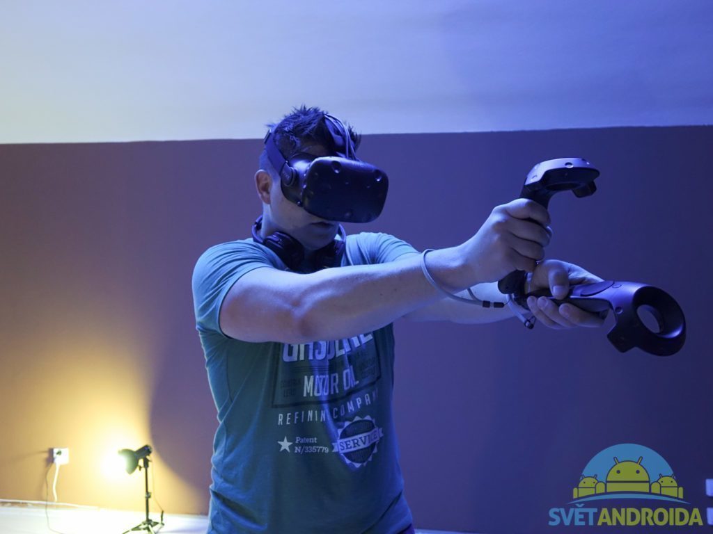 Recenze HTC Vive: Virtuální realita s novým rozměrem Hlavní stránka Recenze Ostatní recenze Sdílejte: Jan Dolejš Publikováno: 21.6.2016 06:00 (Aktualizováno: 13.7.2016 09:05) 15 komentářů 15 Do virtuálního světa už nemusíte jen nahlížet, ale stát se jeho plnohodnotnou součástí a pohybovat se v něm. Naše recenze HTC Vive vám prozradí, jak dopadl nejpokročilejší headset virtuální reality na světě. Obsah recenze HTC Vive Balení a první seznámení Zapojení a nastavení systému Headset a ovládání her Kvalita obrazu Pocity ze hraní Závěr První seznamování s virtuální realitou od HTC Kdo slyší o HTC Vive poprvé, tak vězte, že toto zařízení není vzdáleno od konkurenčního a již známého headsetu Oculus Rift. Zásadní rozdíl je v tom, že HTC Vive nenabídne pouze možnost rozhlížení se ve virtuální scéně, ale i pohyb v ní. Bonusem jsou pohybové ovladače, které se přímo překreslí do scény. HTC Vive rozjíždí další úroveň hraní počítačových her, ale proniká i do dalších odvětví – vzdělávání, cestování či třeba umění. Naše recenze HTC Vive se podívá tomuto zařízení detailně na zoubek. Velká krabice se vším potřebným Virtuální realita HTC Vive dorazí k zákazníkovi ve velké krabici, kde je ukryto vše potřebné – headset, dvojice ovladačů, dva majáky a potřebná kabeláž s dalšími doplňky. Virtuální headset je velmi podobný konkurenčnímu Oculus Rift. Díky dvěma popruhům lze headset pevně a přitom pohodlně připevnit k hlavě. Lze měnit i vzdálenost čoček od očí tak, aby si každý uživatel mohl nastavit ostrost obrazu podle svého zraku. Teoreticky je možné používat HTC Vive i s dioptrickými brýlemi. Helma má na svém těle i kameru, ze které lze získávat obraz přímo do počítače. Do budoucna se počítá s jejím využitím hlavně pro rozšířenou realitu, v průběhu recenze HTC Vive jsme ale žádný titul s jejím využitím nezkoušeli. Headset nemá integrovaná sluchátka, ale v balení najdete špunty do uší. Výhoda tkví v tom, že je můžete kdykoliv vyměnit za jiná sluchátka či použít své stávající. HTC Vive s tím počítá a 3,5mm jack konektor je přímo na headsetu. Povedené pohybové ovladače Chloubou virtuálního headsetu HTC Vive jsou pohybové ovladače. Nemají kabely a i jejich pohyb je díky majákům snímán. A to nejen jejich umístění v místnosti, ale i rotace a přesná poloha. Jsou navíc překresleny přímo do dané scény, takže se mohou proměnit například v pistoli, luk, svítilnu či kreslící nástroje. Právě tento fakt, že v ruce opravdu cítíte předmět a navíc jej i přímo ve virtuální realitě vidíte, na nás působil opravdu dobře. Ovladače na sobě nesou hned několik tlačítek, spoušť či touchpad. Na jedno nabití vydrží přibližně 6 hodin hraní. Své první seznámení a počátky recenze HTC Vive jsme pro vás shrnuli v prvním pohledu. Instalace majáků a zapojení systému Pohyb hráče je snímán majáky v rozích místnosti, princip je velmi jednoduchý a přitom přesný. Vysílače produkují infračervené záření, paprsky záření navíc rotují a osvítí scénu v horizontálním i vertikálním směru. Snímače na headsetu následně spočítají zpoždění paprsků a pomocí výpočtů na principu triangulace určí vaši polohu. Vysílače musí být naproti sobě ve výšce alespoň 2 metry, podmínkou je i jejich přímá viditelnost. Pokud by v cestě stála překážka, je nutné majáky propojit synchronizačním kabelem. O propojení vás majáky informují stavovou diodou. Majáky lze umístit na vysoký stativ, případně rovnou přidělat na zeď. Při správném rozmístění jsou připojeny pouze do napájení a s headsetem již komunikují bezdrátově. Důležité je, jak velkou plochu majáky vytyčují – minimem je plocha okolo 2 x 2,5 metru. S menším virtuálním prostorem už nespolupracují některé herní tituly, i přesto je úplné minimum pro hraní podle HTC 2 x 1,5 m. Maximem je pak 4,5 x 4,5 metru, což byla i přibližně místnost v našem případě recenze HTC Vive. Zapojení otázkou 5 minut pro každého Headset od HTC dokazuje, že je produktem pro běžné zákazníky. Byl kladen důraz na snadnou instalaci, kterou jsme byli krok pro kroku provedeni i při psaní recenze HTC Vive. Samotné zapojení tkví pouze ve třech kabelech – USB, HDMI a napájení. HDMI lze nahradit i Display portem, pokud by to uživateli vyhovovalo (například z důvodu nutnosti připojit přes HDMI monitor). Kabeláž je rozdělena ještě jednou „krabičkou“, která zároveň slouží jako ochrana portů v počítači, pokud by někdo zakopl o kabely apod. Následně stačí do počítače stáhnout a nainstalovat Steam a Vive software. Celým procesem instalace a nastavení vás provede průvodce v češtině. Byli jsme u toho a musíme potvrdit, že to zvládne opravdu každý. Součástí nastavování a kalibrace je i vyměření virtuální zóny – tedy prostoru, ve kterém se může hráč bez obav pohybovat. Tento prostor lze vytvořit položením ovladačů do rohů, případně obkreslením zdí jedním z ovladačů. Doporučuje se od skutečné zdi nechat nějaký prostor, aby se hráč nemohl zranit. Celý proces nastavení a instalace znázorňuje oficiální video i s českými titulky. Požadavky na hardware – peněženka zapláče Nestačí, že za HTC Vive zaplatíte okolo 25 tisíc korun, ale v mnoha případech budete muset rovněž obměnit svou PC sestavu. Nároky na hardware jsou totiž (logicky) obrovské. Minimálně konfigurace podle HTC zní: GPU: NVIDIA® GeForce® GTX 970, AMD Radeon™ R9 290 ekvivalent či lepší CPU: Intel® Core™ i5-4590/AMD FX™ 8350ekvivalent či lepší RAM: 4 GB a více Video výstup: HDMI 1.4, DisplayPort 1.2 či novější USB port: 1x USB 