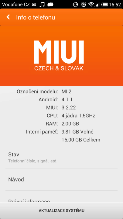 RECENZE: Xiaomi Mi2 - čínský smartphone, který uhranul celý svět, pod naším drobnohledem Hlavní stránka TOP Sdílejte: Adam Kováč Publikováno: 12.5.2013 06:00 (Aktualizováno: 27.1.2015 17:14) 57 komentářů 57 Xiaomi [šiajomi] Mi2 by se s přehledem mohl pyšnit titulem „Nejlepší smartphone na světě“. Přišel sice skoro před rokem, a to do té doby s nevídanou výbavou, kvalitním zpracováním, výbornou cenou, ale především s upraveným Androidem. Hodně upraveným Androidem. Dámy a pánové, přivítejte zkrátka to nejlepší, co za 9 tisíc korun můžete získat. A dokonce to nejlepší, co můžete získat za 14 tisíc. Co dělá jakýkoli mobil od Xiaomi tak skvělým, není ani tak high-end výbava, jako spíš podpora ze strany výrobce a jejich systém obecně. Xiaomi je totiž tvůrcem slavné MiUi ROM, kterou spousta lidí považuje za vůbec nejlepší custom ROM na světě. Nevěříte? Přečtěte si naši recenzi a přesvědčte se o tom. Balení z recyklovaného papíru Jestliže si objednáte tento funkcemi přeplněný mobilní telefon, jistě vás již na první pohled překvapí krabice. Neuvidíte totiž žádná propagační omalovátka, jak jsme zvyklí od jiných výrobců. Žádné logo SuperUltra4K AMOLED+n displeje, žádné logo výrobce procesoru, žádné vyobrazení mobilu samotného. Jediné, co najdete na přední straně hnědé krabice z recyklovaného papíru, je drobné logo MI. Na stranách tohoto střídmého boxu pak uvidíte miniaturní nápisy odkazující na web xiaomi.com a konečně na zadní straně uvidíte nálepku, co všechno tento mobilní telefon vlastně umí. A že toho je požehnaně. O tom ale níže. V krabici najdete logicky po jejím otevření ve vaničce zafóliovaný telefon Xiaomi Mi2. Po jeho vytažení a odstranění kolébky pak na vás vykoukne poměrně velká 2000mAh baterie, nad kterou se skrývá ve vlastním šuplíčku miniaturní cestovní nabíječka spolu s datovým kabelem. A to je vše. Stejně skromné je i příslušenství k telefonu. Ovšem kdo by chtěl například přebytečná špuntová chrchlátka, že? Velikou zajímavostí, především pro lidi, kteří by objednávali přímo z Číny, je pevnost této krabice. Dokáže totiž přežít bez jakéhokoli znetvoření váhu dvou dospělých mužů (no… na evropské poměry dejme tomu 1,25 muže), a tak se opravdu nikdo nemusí bát, že by byl jeho mobil mezikontinentální cestou nějak poničen. Jediné, co se tomuhle tanku, přezdívanému krabička stane, jsou maximálně pokrčené rohy. Vzhled telefonu a první dojem Při pohledu na krabici jsem si už pomalu začínal říkat, že i mobil bude zpracován z levných bytelných plastů. Naštěstí se tak nestalo, i když plasty použity opravdu byly. Hned po vytažení mi totiž zrak uchvátila černočerná přední strana, kterou narušovala pouze tlačítka a logo zařízení, spolu s webkamerou a nenápadným hovorovým reproduktorem. 4,3“ HD displeje si zkrátka ve většině případů nevšimnete. Velmi mě zaskočil zadní kryt telefonu, který je přesným opakem čelní strany. Ten je totiž perleťově bílý. Ovšem nebojte se, zařízení je k dispozici v několika barevných variantách. Tedy spíše jeho zadní kryt. Ten můžete sehnat také v černé, oranžové, zelené, růžové… Zkrátka každé oblíbené barvě. Na pravé straně přístroje nalezneme kolébku hlasitosti, pod níž je spouštěcí tlačítko. Tato tlačítka jsou kovová a jsou součástí zadního krytu, ve kterém jsou přichycena pomocí gumových západek. Na spodní straně je microUSB konektor s funkcí MHL a USB On the Go (s čímž se u mnoha výrobců nesetkáme), který slouží také pro nabíjení. Na levé straně nalezneme překrásné nic a na vrchu pak klasický 3,5mm konektor pro připojení sluchátek. Na zadní straně se pak nachází krytka 8MPx fotoaparátu s LED diodou a mikrofonem, reproduktor a opět logo MI. První dojem z telefonu byl zkrátka skvělý. Designově se mi hodně líbí – je krásně elegantní a s perfektními rozměry, což uvítají především lidé, kteří si nechtějí kupovat současná +-5“ pádla. Konstrukce telefonu je opravdu na špičkové úrovni, ergonomie je vynikající a záda nevržou a dokonale pasují s hlavní kostrou zařízení. Další velké WOW přišlo už při rozsvícení displeje. Hardware a displej Jak jsem již zmiňoval v úvodu, Xiaomi Mi2 má velmi bohatou výbavu a směle se může rovnat i téměř rok po uvedení takovým modelům, jakými jsou SGS 4, HTC One či Xperia Z od Sony. Srdcem Xiaomi Mi2 je čtyřjádrový Qualcomm Snapdragon S4 Pro APQ 8064, vyráběný 28nm výrobním procesem, jehož maximální taktovací frekvence je 1 500 MHz. CPU běží na instrukční sadě ARMv7, má 16 KB L1 a 2 MB sdílené L2 cache, obsahuje moduly GPS, A-GPS a GLONASS, Wi-Fi 802.11 b/g/n a Bluetooth v4. O grafiku se stará grafický akcelerátor Adreno 320, který by měl dle slov Qualcommu nabídnout grafický výkon srovnatelný s výkonem Xboxu 360. Stejný procesor můžeme najít například v telefonech Nexus 4, Sony Xperia Z či v Asus Padfone 2. Xiaomi navíc k procesoru přidalo 2GB RAM, což je v současnosti patrně nejvyšší hodnota, jakou v tomto směru můžete získat. Ostatně stejně velkou RAM nabízí i SGS 4 a HTC One. Zajímavostí je, že systém vidí celé 2 GB, přičemž čerstvě nakonfigurovaný telefon po restartu hlásí kolem 1,32 GB jako volných. To je více než v případě Xperie Z, která měla k dispozici 1,2 GB RAM. Mobil má integrovanou paměť 16 GB, bez možnosti rozšíření o microSD karty, což je zajisté škoda. No systém vidí celkově necelých 14 GB, přičemž pro aplikace jsou vyhrazeny 3,7 GB, zbytek je pro vaše soubory. Na rozdíl od Xperie Z se vám tak může stát, že při instalaci aplikací narazíte na nedostatek místa v oddí