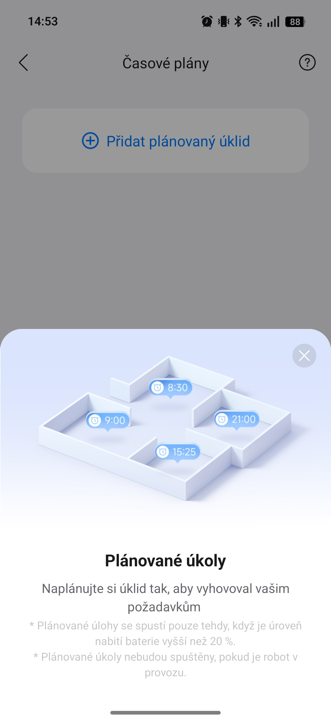 Ovšem výhody automatizace si můžete užít i pokud doma žádný ekosystém chytré domácnosti neprovozujete. V aplikaci Roborock naleznete časové plány pomocí kterých můžete naplánovat úklid jednotlivých místností a to včetně úprav parametrů úklidu pro každou místnost. Vedle toho můžete vysavač přepnout i do režimu hlídkování a využít jeho kameru i jinak, než jen pro úklid – třeba když budete na dovolené. Opomenout nesmím ani úklidové plány, buď můžete využít některý z přednastavených, nebo si vytvořit plán vlastní. Například „Po jídle“, kdy robot vysaje a vytře v kuchyni a jídelně.