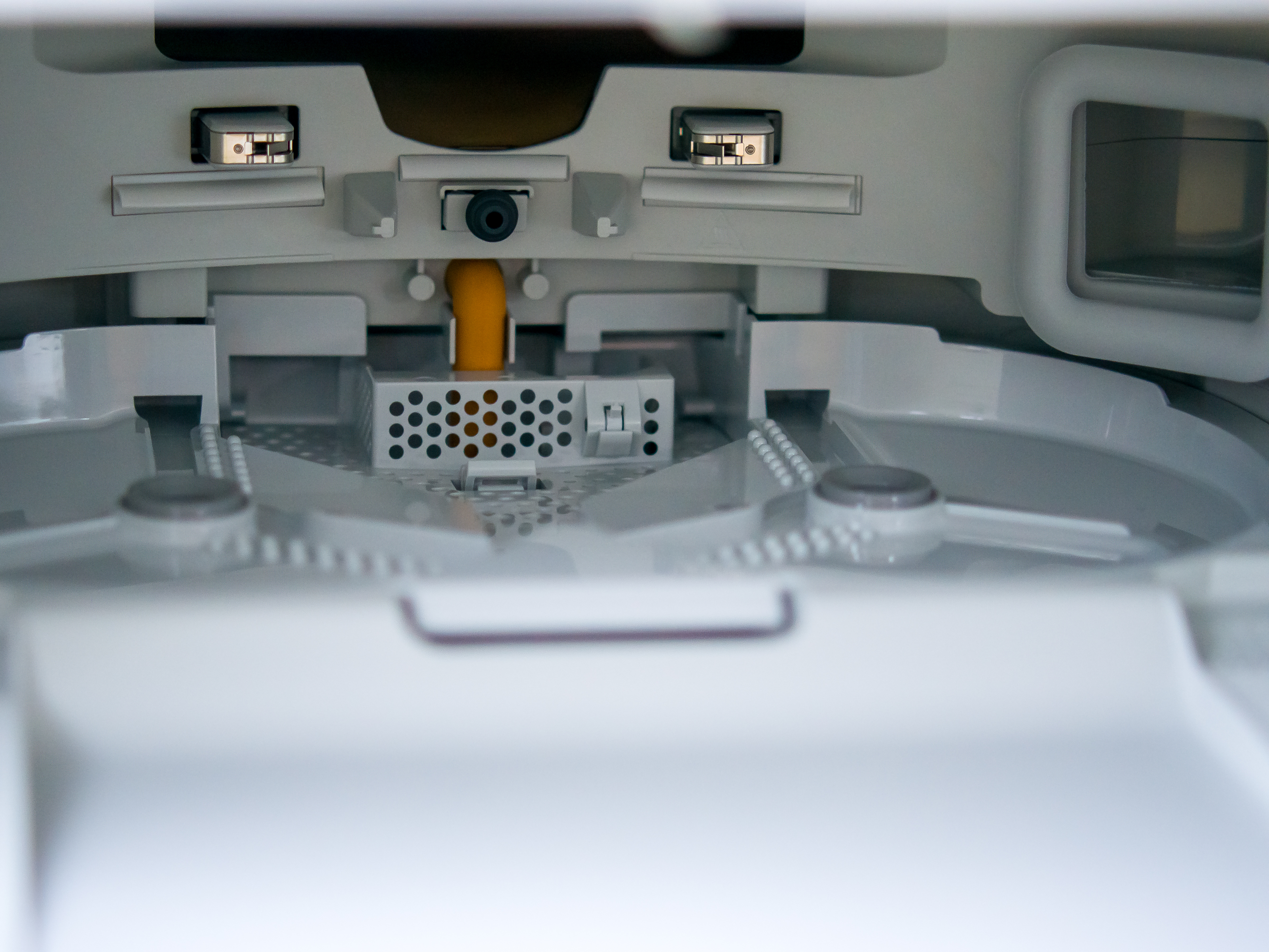 Jinak ale má použitá dokovací stanice vše, na co si vzpomenete. Základem je pochopitelně vyprazdňování nádoby na prach v robotovi do sáčku ve stanici. Ten má kapacitu 2,5 litru a je srovnatelný s klasickými sáčky do vysavačů. Ocenit musím klapku, která se při vytahování ze stanice uzavře a vy tak netrousíte nečistoty po právě vysátém bytě. Zásobník na čistou vodu má 4 litry, na špinavou pak o litr méně. Při běžném úklidu mi tato kapacita v bytě, kde se reálně mopuje plocha 35 m² mi obvykle nádoby vystačily na 8 až 10 čištění.