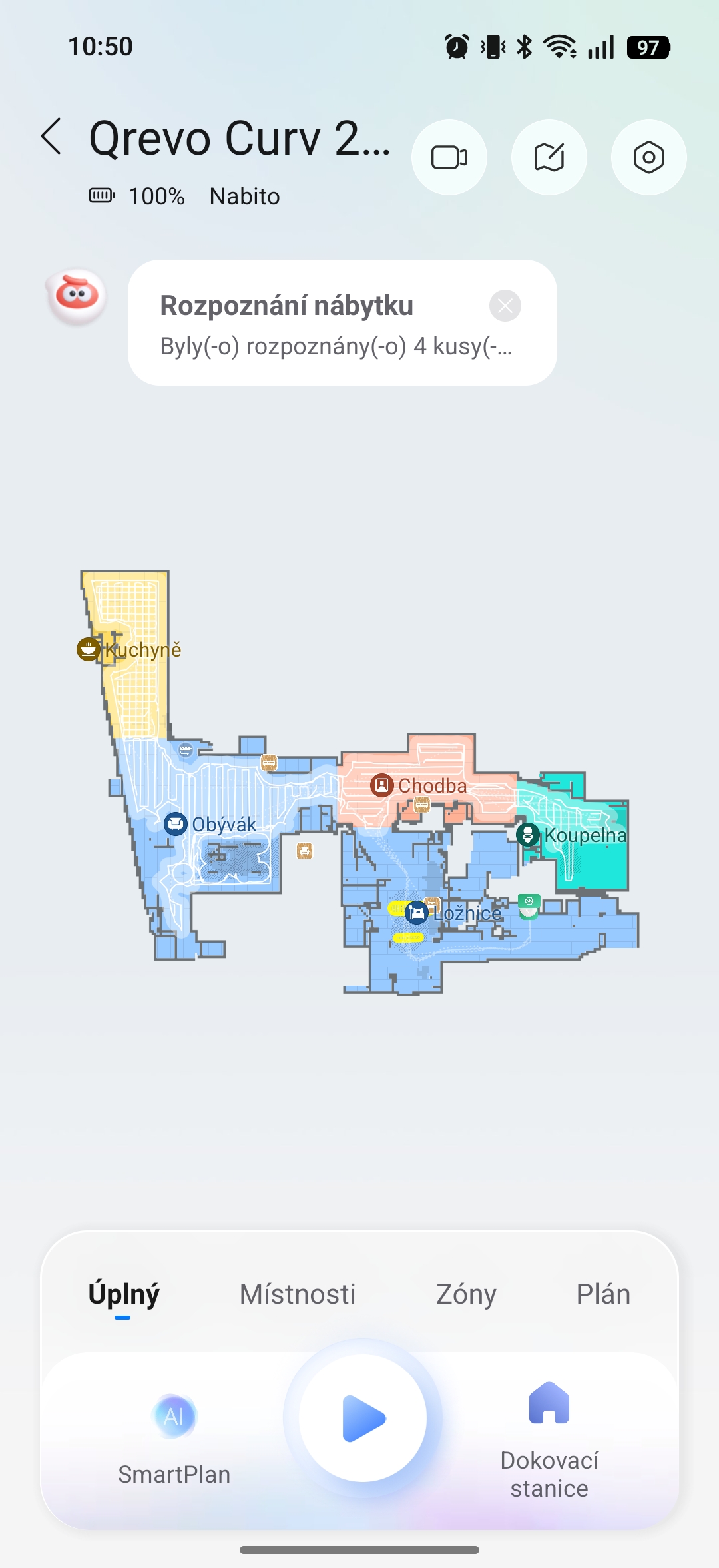 K samotnému úklidu bych pak měl pouze jednu kritickou poznámku. I v porovnání s původním Qrevo Curv se novinka bojí víc zajet pod hranu kuchyňské linky, byť by se tam vysavač vešel – bez ohledu na jakákoli nastavení. Ve finále tam tak zůstával nepokrytý přibližně centimetrový pás. Snad to vylepší některá z nadcházejících aktualizací firmware vysavače. Jinak se ale překážkám, a to včetně poházených hraček, vyhýbá skvěle. Aby ne, výrobce totiž tvrdí, že vysavač dokáže rozpoznat až 200 typů překážek – pro srovnání, předešlý model jich uměl rozpoznat „pouze“ 62 typů.