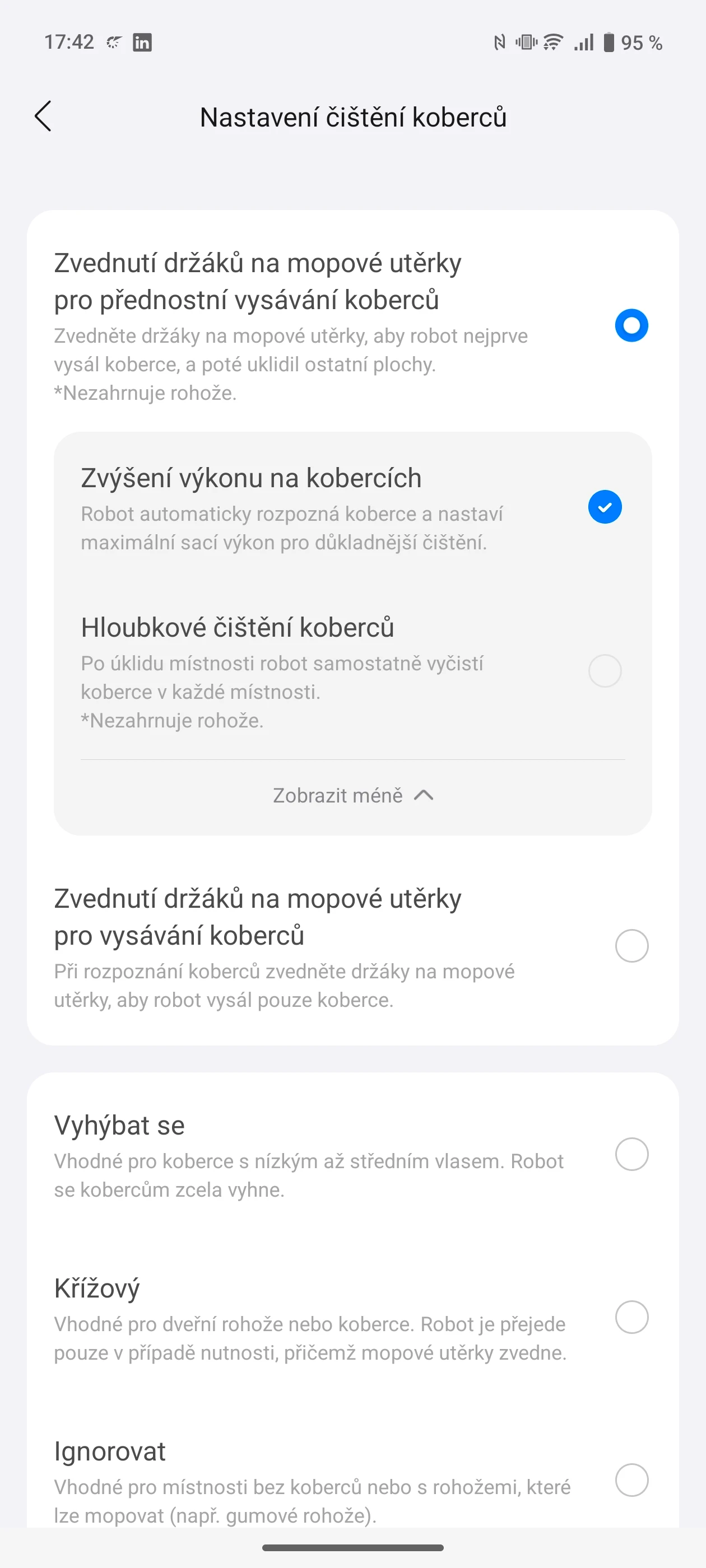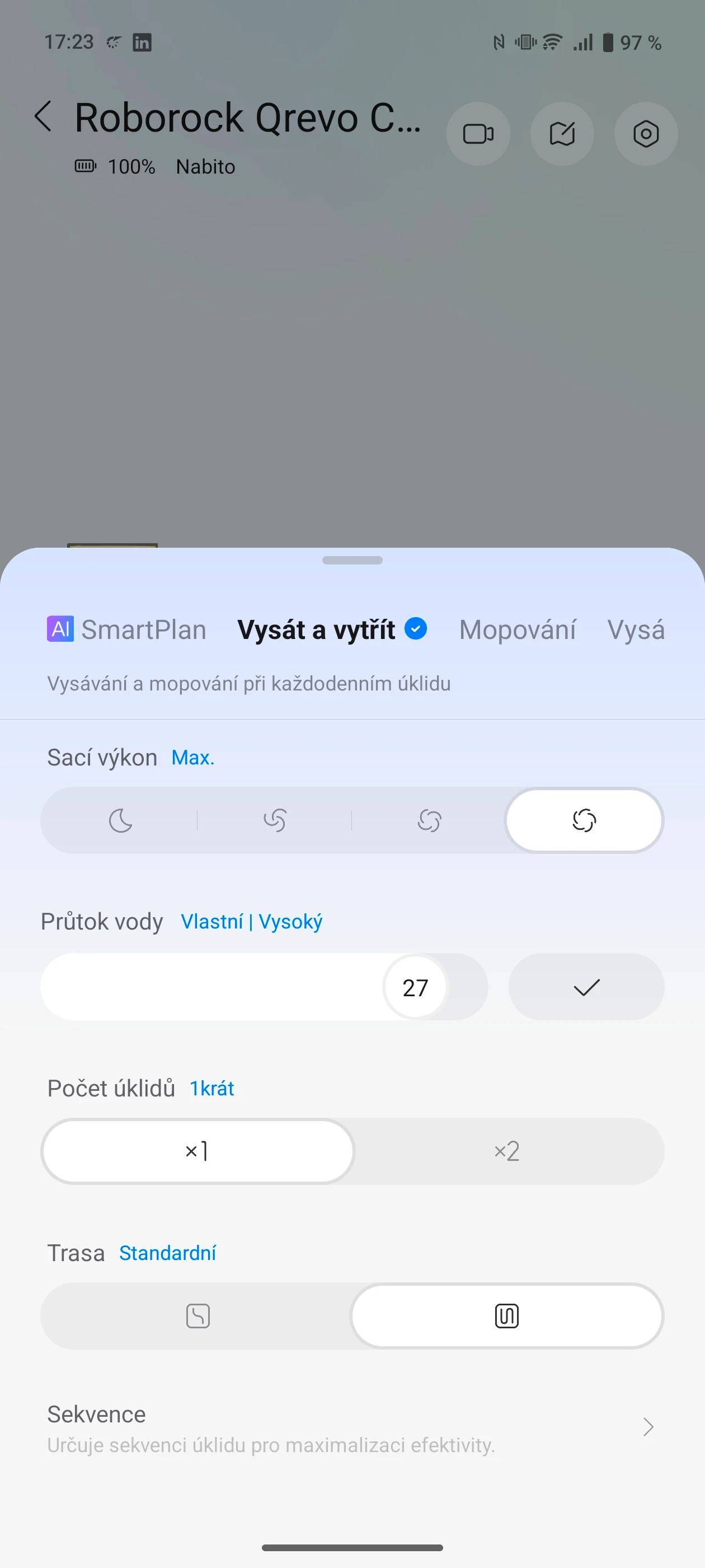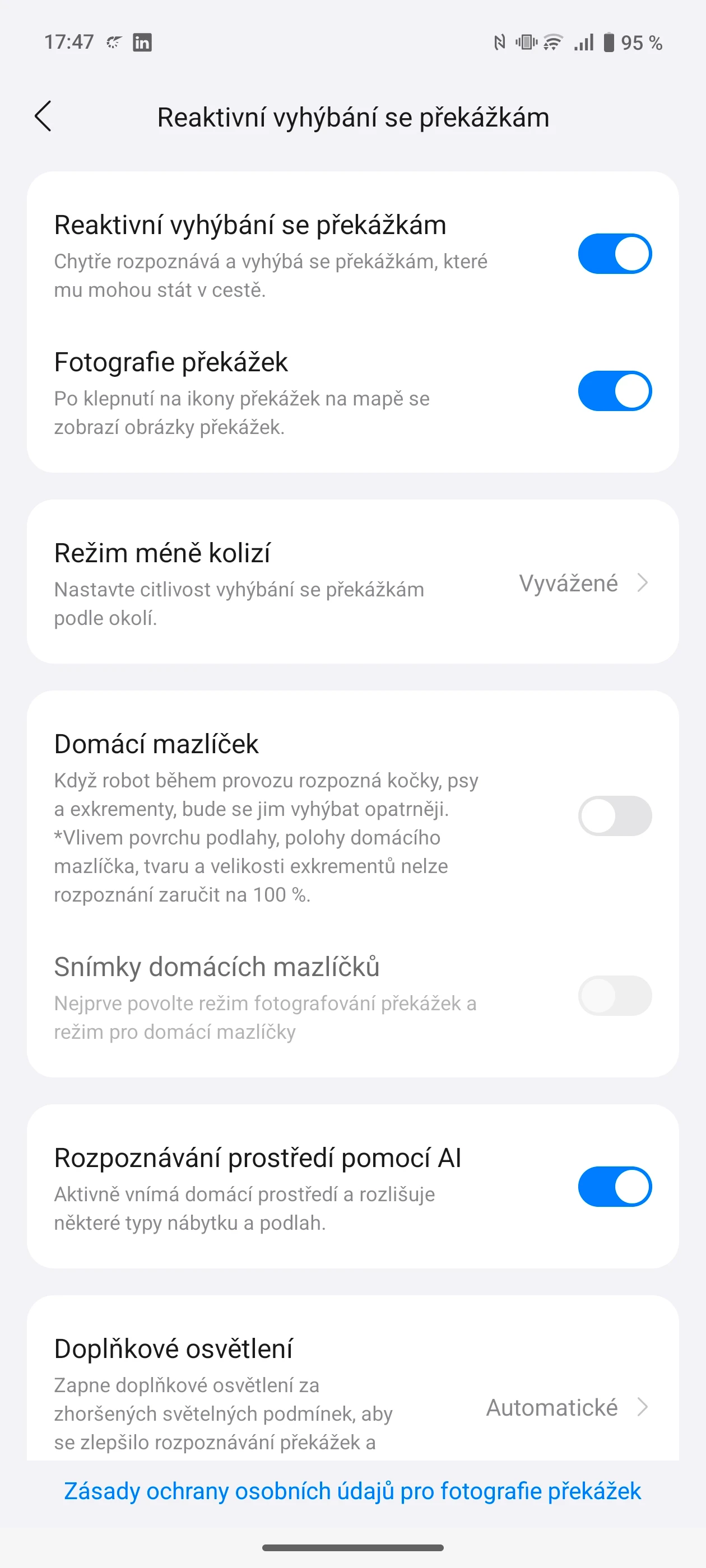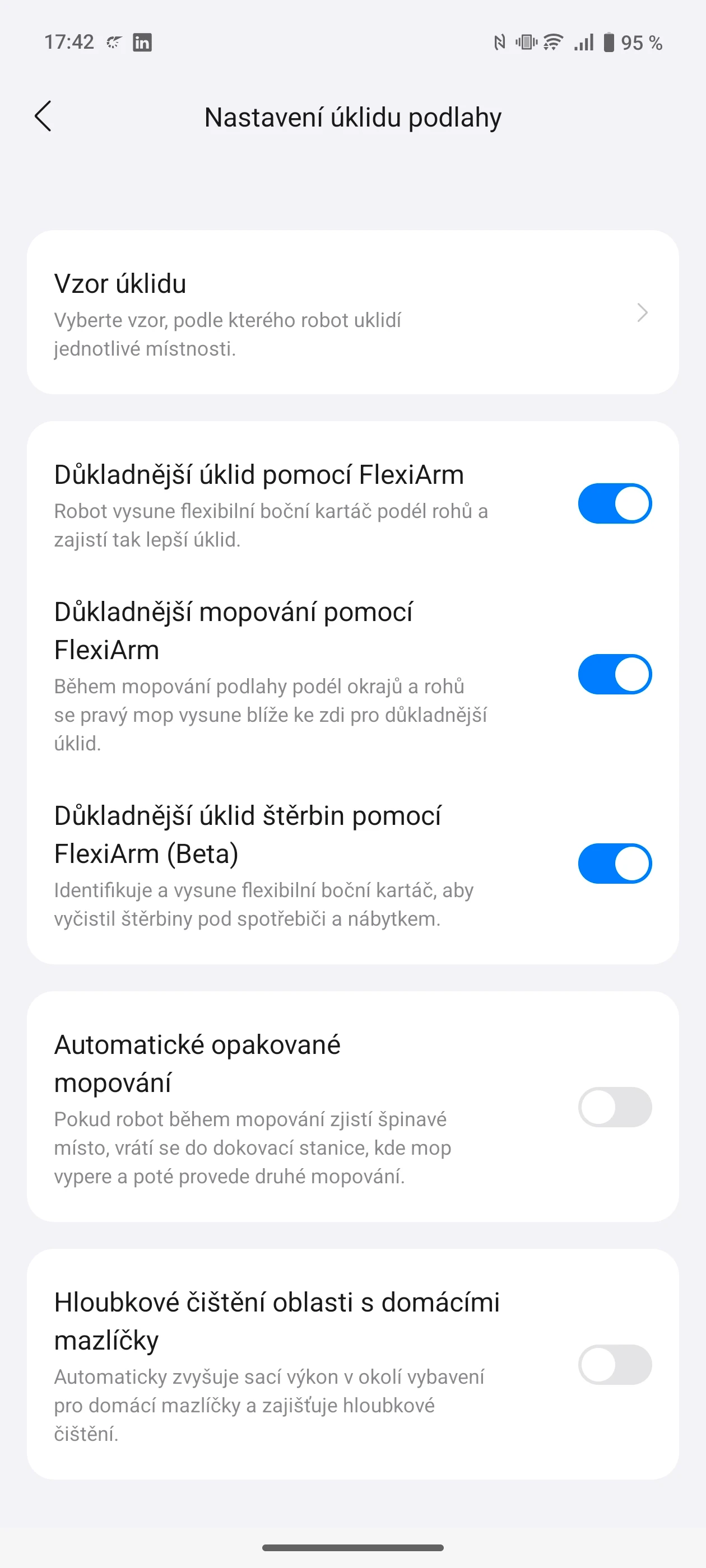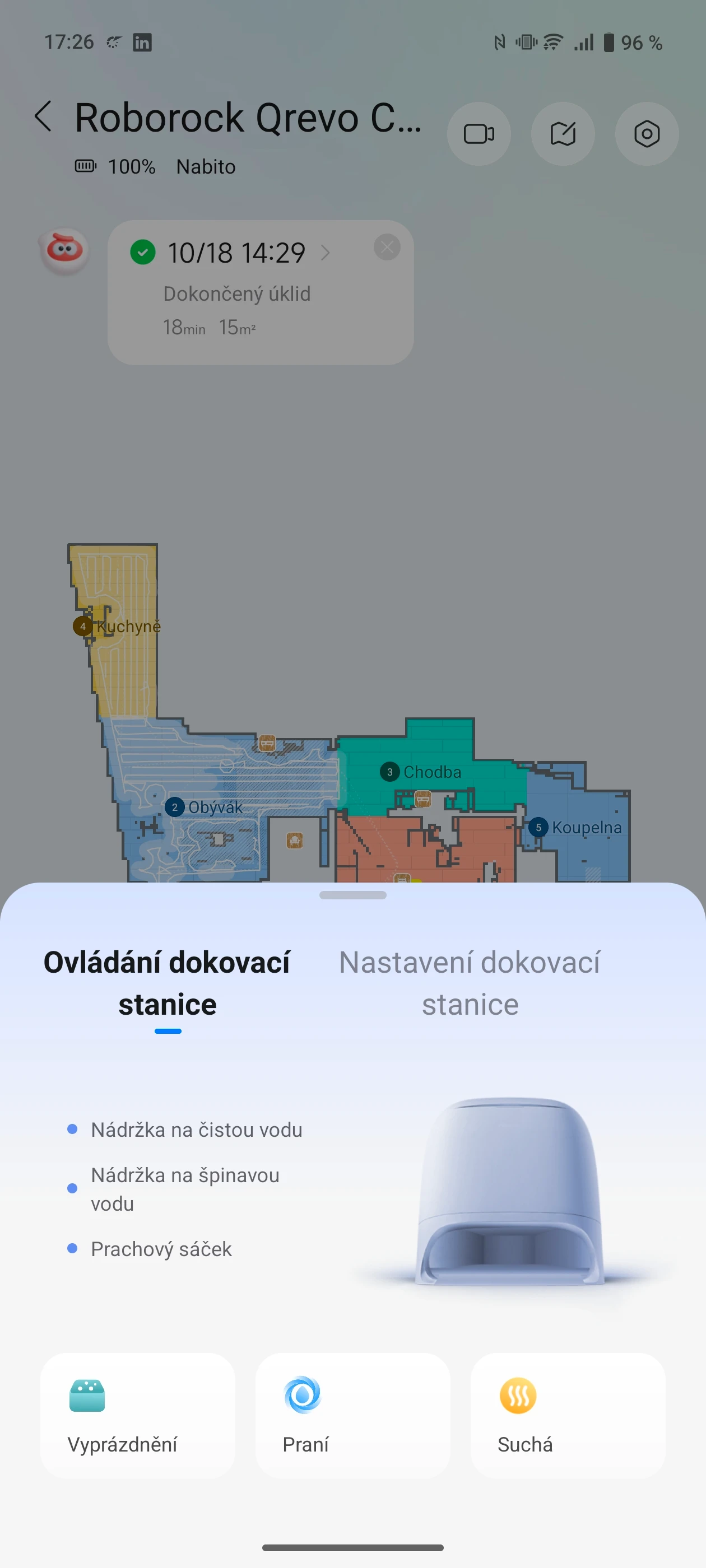 Roborock Qrevo Curv recenze: tohohle pomocníka si zamilujete Hlavní stránka Recenze Ostatní recenze Roborock Qrevo Curv je robotický vysavač, který cenově spadá do střední třídy Nestojí úplný nesmysl, přitom nabízí prakticky vše, co pro pořádný úklid potřebuje Zaujme nejen originálním designem dokovací stanice, ale i funkční výbavou Sdílejte: Vašek Švec Publikováno: 23.10.2025 08:00 Žádné komentáře 0 Roborock Qrevo Curv sice nepatří mezi žhavé novinky na našem trhu, díky tomu ale jeho cena stihla zajímavě klesnout. Tento robotický vysavač se tak rázem stal atraktivní volbou pro všechny, kteří touží po kvalitním úklidu koberců či podlah a přitom nechtějí platit nesmyslné částky za nejvybavenější modely. V balení je nutný základ O navigaci se stará LiDAR i AI kamera Dokovací stanice zaujme na první pohled Technické parametry Roborock Qrevo Curv Aplikace a nastavení Kvalita úklidu bez výhrad Jednoduše skvělý pomocník V balení je nutný základ Nečekejte, že spolu se samotným robotickým vysavačem a jeho dokovací stanicí obdržíte obsáhlé příslušenství. Navíc je zde vlastně pouze jeden extra sáček na odpad. Náhradní mopovací podložky, filtr, postranní či hlavní kartáč již budete muset po opotřebení původních dokoupit. Orientační ceny originálního příslušenství v českých obchodech v době psaní recenze naleznete níže. Asi netřeba dodávat, že existují i neoriginální a citelně levnější alternativy, jejich kvalita však pochopitelně může být proměnlivá. Sáčky 6ks – 599 Kč Mopovací podložky 4 ks – 399 Kč Boční kartáč – 249 Kč Hlavní kartáč – 599 Kč HEPA filtr 2ks – 299 Kč O navigaci se stará LiDAR i AI kamera Na první pohled se Roborock Qrevo Curv nijak neliší od záplavy podobných vysavačů. Celý je vyveden v bílé s lesklým vrchním krytem a matnými okraji. Vzhledem k tomu, že robotický vysavač při navigaci spoléhá i na LiDAR, naleznete na jeho vrchu i „střílnu“ ve které se laserový snímač otáčí. Bohužel je však kvůli tomu robot poměrně vysoký a pod řadu běžného nábytku se tak nedostane. Krom toho je zde jen dvojice tlačítek – zapínací a pro návrat do dokovací stanice. Pod zmíněným lesklým krytem se pak nachází nádobka na prach, kterou však budete vytahovat jen při čištění, respektive výměně filtru. V přední části vysavače je pak tradičně nárazník. Uprostřed něj se nachází výřez pro kameru s AI rozpoznáváním až 62 typů objektů a LED přisvícením pro správnou funkci i v noci. V levé straně je pak druhý výřez pro laserový snímač. Infračervený vysílač se nachází i v zadní části robota mezi napájecími kontakty a slouží pro přesnou navigaci při zajíždění do dokovací stanice. Ještě zajímavější je však pohled ze spodní strany. I zde naleznete senzory starající se o navigaci – konkrétně 5 snímačů zabraňujících, mimo jiné, v pádu robota ze schodů. Na výsuvném rameni je zde metlička, která má – trochu nezvykle – pouze dva kartáčky. Dvojice ramen pro zametání i mopování Metlička pak hrne nečistoty směrem k hlavnímu kartáči uprostřed vysavače. Ten se skládá ze dvou dílů, díky čemuž by se do něj neměly zamotávat vlasy. Toto řešení sice není úplně stoprocentní, množství zachycených vlasů je však nesrovnatelně menší než u nedělených kartáčů a i jejich odstraňování velmi snadné. Za kartáčem se nachází dvojice rotačních mopů s podložkami z mikrovlákna. Zatímco textilní podložky drží za pomoci suchého zipu, celé nástavce jsou k robotu přichyceny magneticky. V případě potřeby je tak lze velmi snadno sundat. Také jeden nástavec pro mopování je pak na výklopném rameni, aby se s ním robot dostal až ke stěně. Zcela do rohu se ale pochopitelně nedostane. Robot si může nástavce také zvednout, aby při přejezdu přes koberec na něm nezanechával mokré stopy. V domácnosti máme jen pár koberců s nízkým až středním vlasem, kde toto řešení fungovalo naprosto spolehlivě. Pokud ale máte koberce s vysokým vlasem, možná zde již ke kontaktu s mokrou podložkou dojde. Škoda, že oproti dražším modelům zde není možnost mopovací nástavce nechat v dokovací stanici. Na druhou stranu, pokud jste v situaci, že robot pro mopování podlahy přes koberec prostě přejet musí, stejně by to nic nevyřešilo. Dojede kam je potřeba Výškově stavitelný je i podvozek, respektive přední kolečko. To se zvedá například při přejíždění prahů, ale pomáhá i při nájezdu či sjezdu z vyššího koberce – nebo v případě naší domácnosti dětské pěnové podložky na podlaze. Dvě pojezdová kolečka mají pak nezávislé zavěšení. Vysavač by pak měl zvládnout zdolat až 3cm obyčejný a 4cm dvojitý práh. Při pohledu na nabídku v dané cenové kategorii je to nadstandardní hodnota. Víc zvládají pouze vybrané modely robotických vysavačů Dreame, vyjma jednoho modelu je však většina z nich minimálně o pár tisíc dražší než testovaný Roborock Qrevo Curv. Oproti jiným modelům od Roborocku se Qrevo Curv vyrábí pouze v bílé. Osobně mi to příliš nevadí, neboť jsem již měl příležitost se přesvědčit o nepraktičnosti černých robotických vysavačů. Zatímco bílá spoustu věcí úspěšně maskuje, na černém povrchu je mnohem lépe vidět prach a zejména na lesklých částech pak i šmouhy. Dokovací stanice zaujme na první pohled Zatímco vzhled samotného robotického vysavače Roborock Qrevo Curv se od jiných nijak neliší, design dokovací stanice je příjemným osvěžením v záplavě krabic, které se od sebe většinou liší jen použitým plastem a velikostí. Stačilo přitom tak málo – zakulatit hrany stanice. Díky svým tvarům 