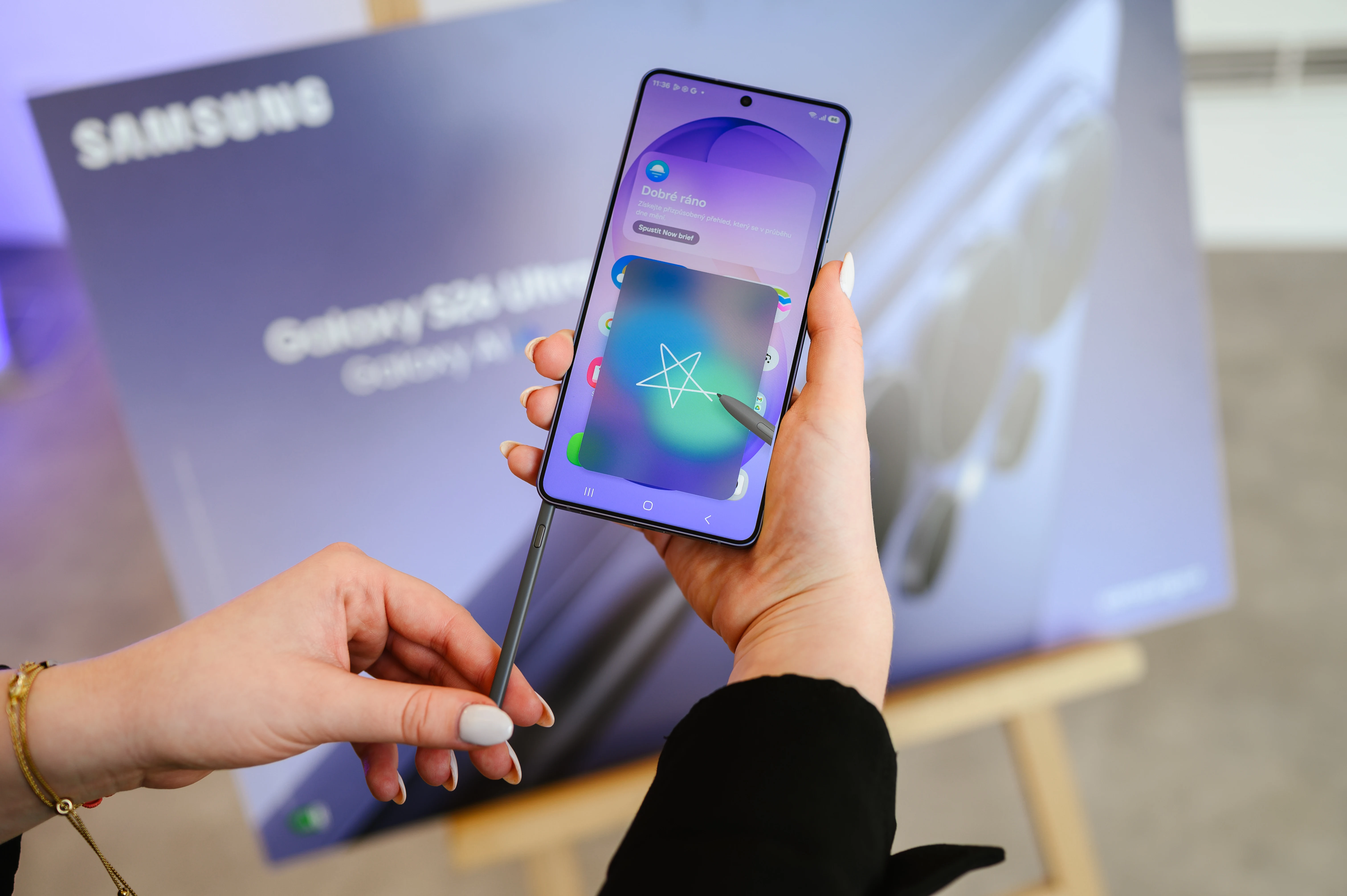Samsung právě ukázal řadu Galaxy S26! Podívejte se na nálož novinek a české ceny Hlavní stránka Zprávičky Samsung nyní představil mobily Galaxy S26, Galaxy S26+ a Galaxy S26 Ultra spolu se sluchátky Galaxy Buds4 Ultra model dostal 60W nabíjení, lepší fotoaparáty a unikátní Privacy Display proti koukání přes rameno Základní Galaxy S26 startuje v Česku na 23 999 Kč, Ultra na 35 699 Kč – předobjednávky běží do 10. března Sdílejte: Jakub Kárník Publikováno: 25.2.2026 19:00 Žádné komentáře 0 Měsíce spekulací, stovky úniků a desítky protichůdných informací – to vše dnes Samsung smetl ze stolu jedním tahem. Na akci Galaxy Unpacked v San Franciscu jihokorejský gigant oficiálně odhalil vlajkovou řadu smartphonů Galaxy S26. Sestava je nakonec tradiční: Galaxy S26, Galaxy S26+ a Galaxy S26 Ultra. Žádný Pro, žádný Edge. Společně s telefony dorazila také nová generace sluchátek Galaxy Buds4 a Buds4 Pro. Obsah článku Kde, kdy a za kolik? Galaxy S26 a S26+: mírná evoluce Displeje a výkon: Exynos se vrací Baterie a nabíjení: malý krok vpřed Fotoaparáty S26 a S26+: copy-paste z loňska Galaxy S26 Ultra: tady se Samsung opravdu snažil Fotoaparáty Ultra: jasnější, ale ne zásadně jiné 60W nabíjení a 5 000 mAh: Ultra konečně přidává Privacy Display: displej, na který nikdo nekouká Software: One UI 8.5 a tři AI asistenti v jednom telefonu Galaxy Buds4 a Buds4 Pro: nová sluchátka s Hi-Fi ambicemi České ceny a dostupnost Specifikace v přehledu Kde, kdy a za kolik? Ještě předtím, než se podíváme na samotné telefony, si pojďme rovnou projít ceny (v tabulce) a bonusy, které nám letos jihokorejský kolos nabídne. Koupit je můžete třeba na Alze. Model Úložiště / RAM Doporučená cena Galaxy S26 Ultra 256 GB / 12 GB RAM 35 699 Kč 512 GB / 12 GB RAM 40 599 Kč 1 TB / 16 GB RAM 47 999 Kč Galaxy S26+ 256 GB / 12 GB RAM 30 699 Kč 512 GB / 12 GB RAM 35 699 Kč Galaxy S26 256 GB / 12 GB RAM 23 999 Kč 512 GB / 12 GB RAM 29 499 Kč Galaxy Buds4 – 4 399 Kč Galaxy Buds4 Pro – 6 199 Kč Samsung spouští předprodej už dnes, 25. února v 19:00. Zájemci budou mít možnost zařízení objednat až do 10. března do 23:59. Do běžné distribuce se novinka dostane 11. března 2026, kdy začne oficiální prodej. KOUPIT GALAXY S25 VÝHODNĚ Stejně jako u předchozích generací připravil výrobce zvýhodněnou startovní nabídku. V rámci úvodní akce lze získat vyšší paměťovou variantu za cenu nižší konfigurace. Součástí kampaně je také možnost výkupu starého zařízení, čímž lze výslednou cenu ještě snížit. Zákazníci, kteří po nákupu zveřejní recenzi, mohou navíc získat bonusový dárek. Na výběr je například reproduktor Samsung Music Frame nebo tyčový vysavač Samsung Jet 65. Počet těchto odměn je však omezený, takže rozhodovat může rychlost objednávky. Dodatečné zvýhodnění je připraveno i pro studenty – držitelé karty ISIC mohou u vybraných prodejců uplatnit další slevu ve výši 7 %. Galaxy S26 a S26+: mírná evoluce Začněme u dvojice, která tradičně tvoří základ nabídky. Pokud jste čekali revoluci, můžete se posadit – Galaxy S26 a S26+ přinášejí spíše kosmetické změny, i když některé z nich rozhodně stojí za zmínku. Nejviditelnější novinkou je redesign zadní strany. Samsung se rozloučil s objektivy volně vystupujícími ze zad a nahradil je vertikálním fotomodulem, který sdružuje všechny tři snímače do jednoho ostrůvku. Vypadá to čistěji a prakticky by to mělo znamenat menší sběr prachu kolem čoček. Zbytek designu je víceméně pokračováním loňské filozofie – hranaté boky, hliníkový rámeček (Samsung mu říká Armor Aluminum), skleněná záda a odolnost IP68. KOUPIT GALAXY S25 VÝHODNĚ Obě novinky sdílejí sadu čtyř barev: Cobalt Violet, Sky Blue, Black a White. Online exkluzivně pak Samsung nabídne odstíny Silver Shadow a Pink Gold na svém e-shopu. Displeje a výkon: Exynos se vrací Galaxy S26 přichází s 6,3″ Dynamic AMOLED 2X panelem s rozlišením FHD+ a dynamickou obnovovací frekvencí 1–120 Hz. Větší S26+ nabídne 6,7″ QHD+ displej se stejnou technologií. V obou případech jde o mírný nárůst úhlopříčky oproti loňsku. Samsung u nové generace přešel na panely typu M14 OLED – tedy stejné, jaké používají Apple a Google ve svých vlajkových lodích. Prakticky by to mělo znamenat vyšší jas a lepší energetickou efektivitu. A teď k tomu, co letos zamíchalo kartami. Zatímco loňské telefony Galaxy S25 napříč celou řadou poháněl Snapdragon 8 Elite, u řady S26 se Samsung vrátil k regionálnímu dělení procesorů. V Severní Americe, Číně a Japonsku poběží telefony na Snapdragonu 8 Elite Gen 5, zatímco v Evropě – a tedy i v Česku – dostaneme Exynos 2600 vyráběný 2nm procesem. Exynos tentokrát nemá vlastní modem, takže Samsung připojil Exynos Modem 5410. Je to důvod k obavám? Podle prvních benchmarků ne nutně. Exynos 2600 se v testech Geekbench i Basemark drží na úrovni Snapdragonu, v některých grafických testech ho dokonce mírně překonává. Nicméně praxe ukáže víc než syntetické testy – na verdikt si počkáme do recenze. KOUPIT GALAXY S25 VÝHODNĚ Oba modely dostanou 12 GB RAM. S26 i S26+ startují na 256 GB, obě novinky nabídnou i 512GB verzi. Baterie a nabíjení: malý krok vpřed Základní Galaxy S26 dostal baterii 4 300 mAh, což je nárůst o 300 mAh oproti loňsku. S26+ zůstává na 4 900 mAh. V kontextu čínské konkurence, která do podobně velkých těl cpě klidně 5 500 i 6 000 mAh, to pořád není žádná hitparáda. Co se nabíjení týče, základní S26 podporuje Super Fast Charging a Fast Wireless Charging 2.0. S26+ přidává Super Fast Charging 2.0 (45 W) a Super Fast Wireless Charging s podporou až 20W bezdrátového na