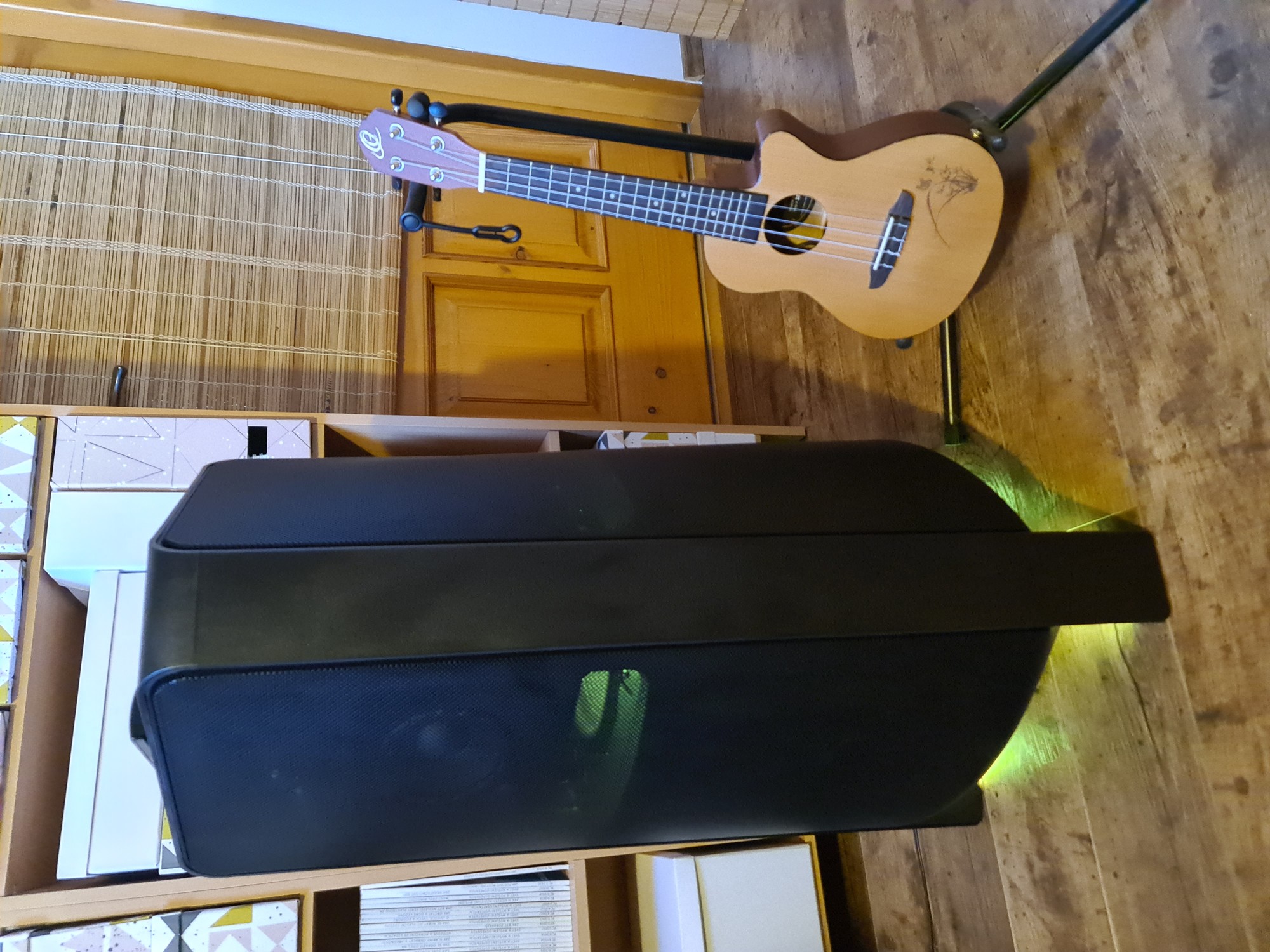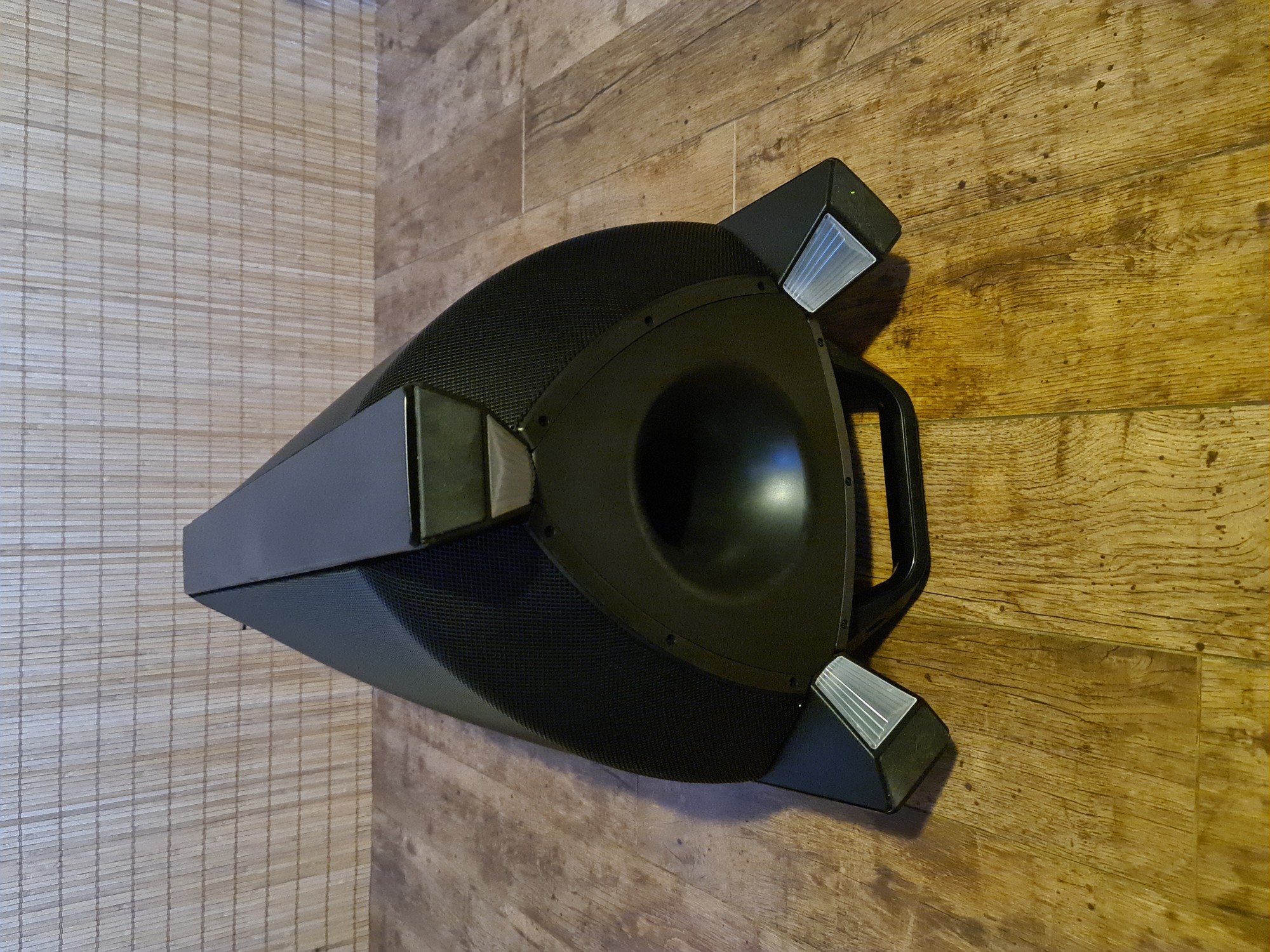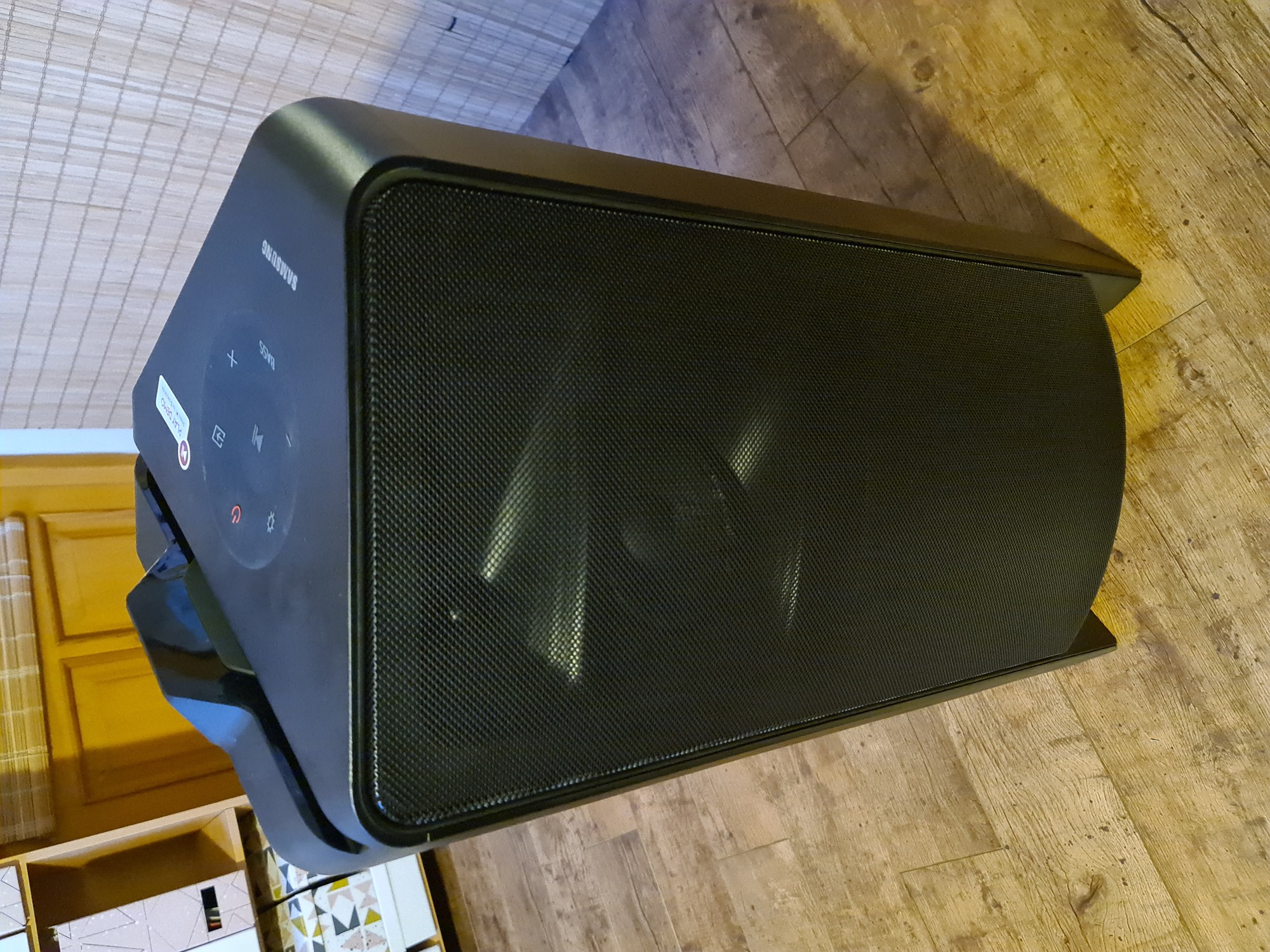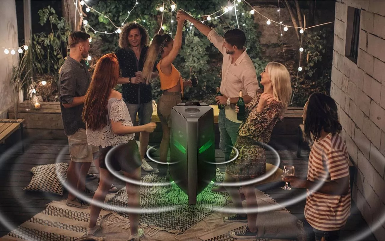 Recenze party reproduktoru Samsung MX-T70: Obří kladivo na sousedy Hlavní stránka Recenze Ostatní recenze Sdílejte: Marek Houser Publikováno: 3.12.2020 16:00 1 komentář 1 Když doma chcete udělat party a chcete ji obohatit hudební reprodukcí, máte hned několik možností, jak to provést. Někomu postačí HiFi věž nebo menší reproduktory, jiný sáhne po velké aparatuře třeba i se stativy a mixážním pultem. Někde uprostřed se nachází moderní segment party reproduktorů, mezi jejichž společné vlastnosti patří přenositelnost, široké množství připojení (včetně bezdrátového) a elegantní design. Rozdíly se pak mezi nimi nacházejí ve výkonu, celkové kvalitě zvuku nebo například možnostech bateriového napájení. Své zástupce má v této sféře také Samsung, který na trh poslal party reproduktory MX-T50 a MX-T70. Druhý jmenovaný si rozebereme v této recenzi. Konstrukce, design a obsah balení Zvuk mile překvapil Hodí se do skupiny i do sterea Ovladač a aplikace Cena a dostupnost Závěrečné hodnocení Konstrukce, design a obsah balení Přiznám se, že když jsem dostal přes e-mail možnost reproduktor Samsung MX-T70 testovat, moc jsem se nepídil po tom, o jak velké zařízení vlastně jde. Když pak dorazil kurýr, hleděl jsem na krabici odpovídající obalu menší ledničky celkem překvapeně. Naštěstí se na chlup přesně vešla do kufru Fabie a po převozu domů jsem se mohl podívat, jak velký „drobek“ se v ní tedy nachází. Celkové rozměry reproduktoru jsou 463 x 884 x 455 mm, což je s přehledem největší party „bedna“, kterou jsem kdy měl možnost zkoušet nebo vidět. Velikosti odpovídá i hmotnost, která činí 26,5 kilogramu. Rovnou říkám, že s těmito parametry už se nedá moc mluvit o „přenosném“ reproduktoru. Má sice madla, ale nosit ho každou chvíli sem tam někde na akci opravdu nechcete. Nicméně rozměry i váha mají své logické opodstatnění, k tomu se dostaneme. Z hlediska počtu a uložení reproduktorů se jedná o 2.1 sestavu zasazenou do jednoho těla. Spodní část věže (označení „tower“ používá i Samsung) zabírá desetipalcový basový měnič namířený membránou směrem nahoru a průduchem (basreflexem) směrem dolů. Nad ním jsou do tvaru V umístěny dva středové (5,25″) a dva výškové (1″) reproduktory, které mají za úkol akusticky vykrývat širší prostor před věží. Na horní ploše je kruhový ovládací panel, displej a drážka pro usazení telefonu. Na zadní straně je schovaných několik tlačítek, konektorů a potenciometrů (rozebereme později). Mezi nohami a ve středovém prostoru se nacházejí RGB LED pro světelné efekty. Za zmínku určitě stojí, že díky kombinaci plastu a gumy je reproduktor z vrchu chráněn proti polití či poprskání. Nemůžete počítat s úplnou vodotěsností, ale třeba rozlité pivo by měl Samsung MX-T70 na své horní ploše snést. K zařízení je dodáván přívodní kabel, dálkový ovladač a manuál. Baterii tento reproduktor nemá, napájení je skrze klasickou vidlici na 230 V. Zvuk Samsung MX-T70 mile překvapil Z hlediska celkové zvukové kvality jde o velmi nadprůměrný počin. Jelikož jsem ve volném čase zvyklý pracovat s profesionální pódiovou technikou, při vyslovení pojmu „party reproduktor“ se okamžitě sníží moje očekávání. Tady to ale bylo předčasné a nakonec jsem byl mile překvapen. Ještě než jsem se pustil do pořádného testování, objevily se v komentářích oprávněné dohady, jak výkonný vlastně Samsung MX-T70 je. Informace jsou totiž dost matoucí. Výrobce udává 1500 Wattů RMS (600 W basový + 2x 300 W středový + 2x 150 W výškový reproduktor), což je papírově velmi slušné. Nicméně na zadním štítku je uvedeno pouze 160 W, takže tu něco nehraje. Tedy alespoň z hlediska parametrů. Nejjednodušší vysvětlení je, že v Samsungu úmyslně či neúmyslně zaměnili pojem RMS za jiný, například nechvalně proslulý PMPO (vysvětlení v zeleném boxu). Má smysl to řešit? Z hlediska reálného dojmu z reproduktoru spíš ne. [alert-note-svetandroida title=“RMS vs. PMPO“ icon=“star“]RMS je běžně používané označení u reproduktorů a vyjadřuje výkon, který je zařízení schopné za běžných okolností produkovat po dlouhou dobu. Údaj na obalu je nejčastěji součtem RMS výkonů všech měničů v sestavě. Oproti tomu PMPO, často zneužívané k působivějším marketingovým účelům, zjednodušeně vyjadřuje hodnotu maximálního „vystřelení“ výkonu v rámci zlomků sekundy. A to ještě jen teoreticky. Reproduktory nikdy nezvládnou hrát s výkonem PMPO. Rozdíl mezi těmito dvěma hodnotami může být třeba desetinásobný nebo i vyšší.[/alert-note-svetandroida] Trochu kecá, ale hraje skvěle Pokud vám jde o co nejvyšší čísla, můžete se u ozvučovací techniky často nemile spálit. V tomto případě tomu jde výrobce dokonce naproti, což se mi nelíbí. Bez ohledu na hrátky s numery ale můžu říct, že reálná zvuková kvalita reproduktoru je opravdu velmi dobrá. Díky pokrývání širšího prostoru dvěma páry „vrchů“ zvládá MX-T70 ozvučit běžné prostory způsobem, na jaký byste normálně potřebovali reproduktory dva. I když jsou tyto měniče zákonitě odsouzeny k menší efektivitě, jelikož jsou umístěny u pasu a ne u hlavy, tak jak mají být. Přítomnost samostatného basového reproduktoru (subwooferu) je hodně znát. I když je potřeba mu pomoci softwarově. Bass Boost je efekt, který v 99 % případů končí úplně strašně, ale v tomto případě se naštěstí bavíme o tom zbývajícím procentu. Zapnutí posílených basů posouvá subwoofer na parádní úroveň, přičemž nijak citelně netrpí výšky a středy. Dokonce mi přijde, že se celé zařízení zesílí u vš