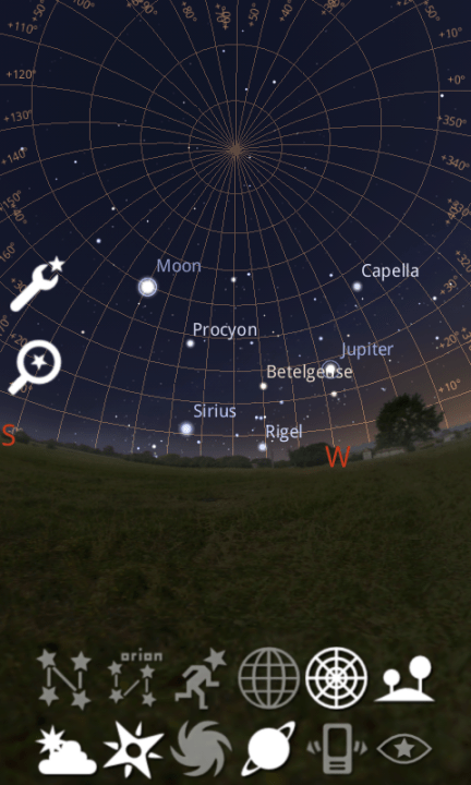 Stellarium Mobile Sky Map: Planetárium do kapsy Hlavní stránka TOP Sdílejte: Karel Kilián Publikováno: 28.4.2013 06:00 14 komentářů 14 Předpovědi počasí naznačují, že jaro je konečně tady! A s ním přichází také možnost pozvednout zraky k obloze bez rizika nastydnutí. Jestliže chcete vědět, jak se jmenuje která hvězda, vidět červeně zářící Mars, nebo si prohlédnout souhvězdí Kasiopeji, máme pro vás tip na průvodce hvězdnou oblohou. Aplikacím pro amatérské astronomy a zvědavce, kteří by se rádi orientovali v hvězdné obloze, se na Světě Androida nevěnujeme poprvé – obrovský úspěch v minulosti zaznamenala recenze programu Google Sky Map, který je zdarma, ovšem od konce srpna 2011 nebyl ani jednou aktualizován. Dnes se podíváme na aplikaci Stellarium, kterou „nadšenci do hvězdiček“ skoro jistě znají z počítačů, kde je šířena pod otevřenou licencí GNU General Public License pro Windows, Linux i Mac OS X. Projekt zahájil v létě roku 2001 francouzský programátor Fabien Chéreau a v květnu 2006 byl na serveru SourceForge prezentován jako „Projekt měsíce“ (zdroj: Wikipedia). V té době se ještě nikomu ani nesnilo o tom, že bychom v kapse nosili telefony s výkonem tehdejších nejlepších desktopových počítačů. Dnešní mobilní telefony poskytují dostatečný výkon a navíc přinášejí prvky, které počítače nikdy nabídly – například čip GPS, senzor polohy nebo kompas. Zatímco na počítači bylo nutné manuálně nastavit místo, ze kterého se díváte, a následně zvolit směr pohledu, telefon nebo tablet (je-li vybaven GPS) si všechny tyto údaje umí zjistit sám. To je pro amatérská astronomická pozorování doslova dar z nebes. Stellarium Mobile vytvářejí dva z původních vývojářů desktopové verze. Co slibuje? Stellarium Mobile můžeme nazvat „planetáriem ve vašem telefonu“. Ukazuje realistický obraz noční oblohy ve 3D zobrazení, takže na displeji uvidíte přesně to, co budete pozorovat pouhým okem nebo dalekohledem. Díky podpoře senzorů vám umožní během několika sekund zjistit, co vidíte na obloze pouhým nasměrováním telefonu. Intuitivní rozhraní. Podpora zjišťování polohy pomocí GPS. Ovládání směru pohledu pomocí akcelerometru zařízení. Katalog více než 600 000 hvězd zobrazovaných v reálném čase s možností „zoomování“. Katalog mnoha mlhovin a galaxií (u některých jsou k dispozici obrázky). Vyobrazení a ilustrace souhvězdí na obloze. Realistická Mléčná dráha Realistická krajina a atmosféra svítání, západ slunce a simulace světelného znečištění. 3D vykreslování hlavních planet sluneční soustavy a jejich satelitů. Noční režim (červené provedení) Uživatelské rozhraní Nutno konstatovat, že zatímco Google Sky Map se alespoň částečně drží zvyklostí uživatelského rozhraní obvyklého pro Android, Stellarium se vydalo zcela svou cestou. Chvilku patrně potrvá, než si na jeho pojetí zvyknete, obzvláště jestliže jste zvyklí používat jinou obdobnou aplikaci. Po spuštění se na několik okamžiků zobrazí logo, následně se načte obraz hvězdné oblohy, zdánlivě skoro bez ovládacích prvků. Nejprve se zobrazí logo Pak se načte obraz hvězdné oblohy Pokud je den, Stellarium se automaticky přenese do nočních hodin, takže si můžete prohlédnout, co uvidíte na nebi večer. Pokud je den, Stellarium se automaticky přenese do nočních hodin Ovládání a funkce Tahem prstu po obrazovce se můžete rozhlížet po obloze libovolným směrem. Uživatelské rozhraní aplikace Stellarium V levém dolním rohu se zobrazuje datum a čas. Po tapnutí je možné „cestovat v čase“ vpřed i vzad (samozřejmě zrychleně), nebo přepnout do zobrazení aktuální situace. Při tisícinásobném zrychlení tak během minuty a půl můžete zhlédnout celý cyklus dne a noci, včetně východu a západu Slunce i Měsíce. Líbilo se nám, že kromě tlačítek, jimiž je možné posouvat čas 10x, 100x, 1000x, … lze ovlivňovat rychlost času také tažením prstu (jste-li v tomto režimu). Aplikace umí cestovat časem Jak bude vypadat západ slunce? Uprostřed dolní části obrazovky jsou tlačítka „plus“ a „mínus“ – asi již správně tušíte, že jimi můžete přibližovat obsah obrazovky („zoomovat“). Samozřejmě zde funguje i „gesto štípnutí“. Přibližování je zpracováno natolik detailně, že si můžete prohlédnout zblízka i vzdálené planety, včetně jejich měsíců. Tlačítky + a – můžete přibližovat objekty Můžete si prohlédnout zblízka vzdálené planety Ikona v pravém dolním rohu se symbolem klíče, typickým pro nastavení, aktivuje sadu dvanácti tlačítek, nebo přesněji řečeno přepínačů. První řádek zleva: Constellation lines – zobrazí spojnice mezi hvězdami, tvořícími souhvězdí. Spojnice mezi hvězdami, tvořícími souhvězdí Constellation labels – zobrazí latinské názvy souhvězdí. Latinské názvy souhvězdí Constellation art – ukáže souhvězdí jako obrázky. Souhvězdí jako obrázky Equatorial grid – zobrazení mřížky rovníkových souřadnic. Mřížka rovníkových souřadnic Azimuthal grid – zobrazení mřížky azimutálních souřadnic. Mřížka azimutálních souřadnic Ground – zobrazení virtuální krajiny/horizontu. Zobrazení bez horizontu Druhý řádek zleva: Atmosphere – simulace zkreslení atmosférou (nehraje zde ale roli počasí). Zobrazení bez zkreslení atmosférou Cardinal points – zobrazení značek světových stran. Značka světové strany Nebulas labels – zobrazení názvů mlhovin. Zobrazení názvů mlhovin Planets labels – zobrazení názvů planet. Zobrazení názvů planet Sensors controls – zatímco ve výchozím nastavení se můžete rozhlížet po obloze pohybem po displeji, tato volba