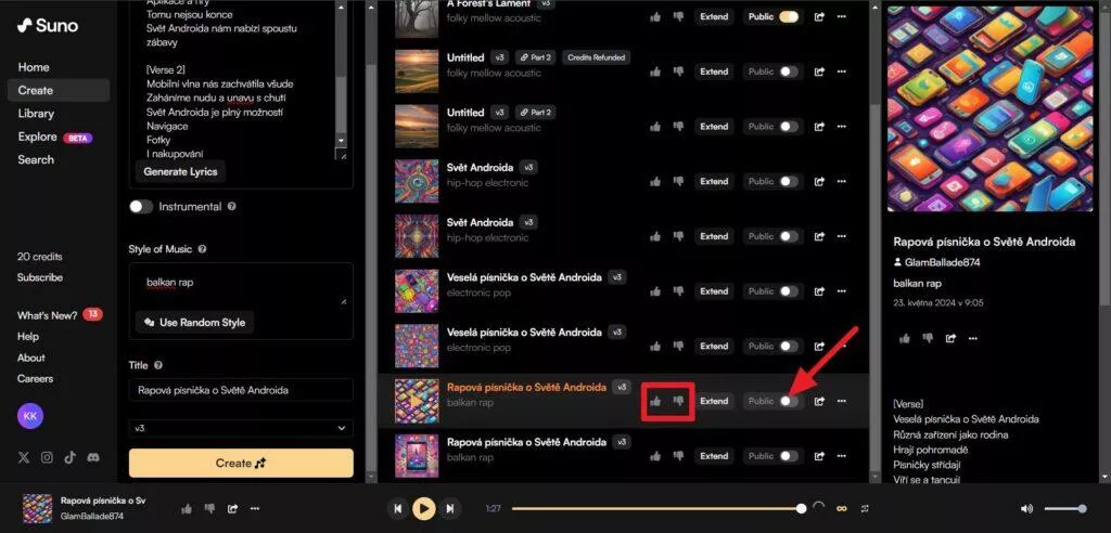 Jak na skládání písniček pomocí umělé inteligence? Hlavní stránka Návody Návody k umělé inteligenci Víte, že umělá inteligence zvládá skládání písniček? Dokáže vygenerovat hudbu, text i zpěv Představujeme webovou aplikaci Suno Sdílejte: Karel Kilián Publikováno: 24.5.2024 10:00 Žádné komentáře 0 Generativní umělá inteligence vstoupila na scénu relativně nedávno a od té doby postupně proniká do naších životů. Umí psát texty, konverzovat, vytvářet obrázky či generovat videa. V tomto článku se podíváme skládání písniček pomocí umělé inteligence Suno.ai. Webová aplikace Suno.ai umožňuje skládání písniček Registrace na Suno.ai Na úvodní stránce Suno je možné hned vyzkoušet zadání ve formě popisu písničky. My ale doporučujeme klepnout na tlačítko Sign Up a zaregistrovat se. Kromě toho, že získáte kredity, které můžete využívat pro generování písniček, se všechna vytvořená dílka budou ukládat do knihovny (sekce Library), kde je budete mít později k dispozici. Vytvořte si účet klepnutím na Sign Up K založení účtu na Suno je nutné použít účet z Discordu, účet Google, nebo účet Microsoft. V dalším kroku pak budete požádáni o přístup k některým údajům, což musíte akceptovat. Bohužel není možné pro tyto účely založit účet, ke kterému byste se mohli přihlašovat uživatelským jménem/e-mailem a heslem. K registraci použijte jeden z účtů Následně se ocitnete na úvodní stránce webové aplikace Suno. Zde si můžete poslechnout písničky složené dalšími uživateli. My se však zaměříme na levou postranní nabídku, kde byste měli spatřit 50 kreditů, které jste dostali na testování. Za jednu písničku zaplatíte pět kreditů, přičemž Suno vždy vytváří dvě verze, takže každým pokusem přijdete o deset kreditů. Do začátku dostanete 50 kreditů na skládání písniček Jak na skládání písniček? Pokud jste připraveni se pustit do skládání písniček, přejděte do sekce Create. Jestliže nechcete nic vymýšlet, zadejte do textového pole Song Description, o čem by měla písnička být, případně jak by měla znít. Následně stiskněte tlačítko Create. Vytvoření písničky – jednodušší způsob Doslova během několika sekund se v prostřední části obrazovky objeví dvě verze písničky, které by měly odpovídat vašemu zadání. Umělá inteligence v tomto případě vygeneruje text (v češtině bohužel často podobný textům skupiny Kryštof) a složí písničku, včetně zpěvu, přičemž nemá zásadní problémy s češtinou. Pokud chcete mít nad výslednou písničkou větší kontrolu, aktivujte přepínač Custom mode. Tím se otevřou širší možnosti – do textového pole Lyrics můžete zadat svůj vlastní text a v sekci Style of Music požadovaný hudební žánr (ten raději zadávejte anglicky). Pak už zbývá jen vyplnit název písně do pole Title a zahájit generování tlačítkem Create. Skládání vlastních písniček Co dál s vytvořenými písničkami? Vytvořené písničky je možné označovat palcem nahoru a dolů, což se hodí pro pozdější filtrování – pokud si například budete chtít poslechnout jen ty, které vám připadají podařené. Přepínačem Public pak můžete svůj song zveřejnit, takže si ho budou moci přehrát i ostatní uživatelé a návštěvníci služby Suno. Palcování a zveřejnění písničky O svou písničku se můžete také podělit prostřednictvím odkazu – k tomu slouží tlačítko se šipkou. Odkaz se zkopíruje do schránky a následně ho přes klávesovou zkratku Ctrl+V můžete vložit například na sociální sítě nebo do komunikační aplikace. Jak vypadá výsledek se můžete podívat zde, případně si poslechněte gothic metalovou verzi Máchova Máje. Sdílení písničky přes odkaz V nabídce pod třemi tečkami pak najdete následující položky: Reuse Prompt – opětovné využití příkazu (promptu), kterým byla vytvořena daná skladba. Edit Details – možnost změny názvu písničky a doprovodného obrázku. Add to Playlist – přidání písničky do seznamu. Share – sdílení písničky prostřednictvím odkazu nebo na sociálních sítích Facebook, X či e-mailem. Download – svou písničku si můžete stáhnout jako Audio (ve formátu MP3), nebo Video (ve formátu MP4). Move to Trash – nepovedené písničky lze vyhodit do odpadkového koše. Tlačítko se třemi tečkami Skládání písniček: zdarma, nebo zaplatit? Ve verzi zdarma budete mít k dispozici 50 kreditů, které se každý den obnovují. To znamená, že denně budete moci provést maximálně pět bezplatných pokusů. Možná vám to bude pro experimentování s hudební generativní umělou inteligencí stačit, ale pokud se budete chtít do tohoto světa ponořit hlouběji, bude nutné sáhnout do peněženky. Suno nabízí dva tarify. V obou případech za ně získáte možnost komerčního využívání vytvořených skladeb, přednostní generování a až deset spuštěných úloh najednou. Platit můžete měsíčně, nebo na celý rok dopředu, což je zvýhodněné slevou ve výši 20 %. Tarify služby Suno.ai V rámci tarifu Pro dostanete za 10 dolarů měsíčně (resp. 96 dolarů ročně) 2500 kreditů, díky kterým budete moci vygenerovat až 500 písniček. Vyšší tarif Premier, v jehož rámci obdržíte každý měsíc 10 000 kreditů, pak přijde na 30 dolarů měsíčně (resp. 288 dolarů ročně). Zkusili jste skládání písniček pomocí AI? O autorovi Karel Kilián Karel Kilián je zkušený technický redaktor a copywriter s bohatou praxí v oblasti informačních a komunikačních technologií. Jeho kariéra začala na pozici prodavače, odkud postupně… Více o autorovi Sdílejte: Žádné komentáře Vložit komentář AI hudba Umělá inteligence Mohlo by vás