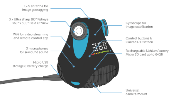 Světově první 360° kamera s rozlišením Full HD a závitem žárovky Hlavní stránka Články Sdílejte: Jan Tipmann Publikováno: 10.6.2014 18:00 8 komentářů 8 Zajímavých projektů se to na serveru Kickstarter jen a jen hemží. Je ale velmi těžké tipnout si, který z nich je opravdu něčím výjimečný, a který bude slavit úspěch. To však nikoho neodradí zkusit své štěstí a připravit například první Full HD 360stupňovou kameru na světě, která nabízí vskutku zajímavé záběry. 360° kamera, která se probíjí zatím velmi úspěšně na serveru Kickstarter nabízí kompaktní rozměry tak, abyste ji mohli zespodu chytit a pohodlně nést před sebou. Kamera poté zabere vše kolem vás a natočí video s rozlišením 2048 x 1024 pixelů ve formátu mp4 s 25 nebo 30 snímky za sekundu. Pokud vám nebudou vyhovovat videa, je tu možnost fotografovat s 8Mpx objektivem i funkcí HDR. Kamera váží pouhých 180 g a disponuje certifikací IPx8, což znamená, že přístroji nevadí potápění do hloubky až 5 metrů po dobu 1 hodiny. Zvuk a konektivita Ani o zvuk nebudete ochuzeni, protože zařízení obsahuje 3 mikrofony, které zabírají zvuk kolem dokola tak, aby vytvářely 3D Audio. Kamera disponuje taktéž gyroskopem pro automatickou stabilizaci obrazu, GPS pro mapování vaší polohy, slotem pro microSD karty s maximální kapacitou až 64 GB a také microUSB portem pro nabíjení a přesun souborů. Wi-Fi, Baterie a Android aplikace Důležitá je také výdrž kamery na jedno nabití. Tu zajišťuje 1180 mAh akumulátor, který dokáže živit zařízení celých 60 minut, avšak s vypnutou Wi-Fi. Ano i Wi-Fi je v zařízení přítomno a to primárně pro ovládání kamery z telefonu nebo tabletu. K zařízení je připravena speciální aplikace pro ovládání kamery na dálku, přehrávání videí nebo prohlížení fotografií. Podpora Android zařízení je samozřejmostí. Stačí mít obě zařízení propojené a poté již máte fotografie během pár vteřin po vyfocení v telefonu k prohlížení. Dalšími možnostmi jsou také živé streamování videí a odesílání fotek na sociální sítě. Fotoaparát a LED Trojce objektivů disponuje 6čočkovou optikou se světelností f/2.8. Pro zajímavost, první telefon se šesti čočkovým fotoaparátem je One Plus One. Každý fotoaparát navíc dokáže snímat až 185 stupňový pozorovací úhel. Pokud se budete chtít s kamerou potápět a získat tak bez pochyby neobvyklé záběry, výrobce doporučuje zakoupit nástavec, který objektivy ochranní a výrazně vylepší kvalitu videa. Přístroji by se bez těchto brýlí sice nic nestalo díky certifikaci, ale kvalita by dosti pokulhávala. Na jedné straně přístroje je umístěn LED displej, který zobrazuje natáčení videa, úroveň nabití baterie, délku nahrávání a ostatní aktivitu zařízení. Připojení místo žárovky 360° kamera má spodní část šroubovací, a tak je víceméně jasné, že ke kameře půjdou přidělat různé nástavce, které se poté někam připevní. Tím obvyklejším je nástavec, který se často používá u fotoaparátů k upevnění na stativ či nějaké trojnožky. Druhý nástavec už tak trochu vybočuje z řady, protože na jeho konci je klasický žárovkový závit. Není tak problém doma ze světla vyšroubovat žárovku a našroubovat tam tuto kameru, která bude snímat vše kolem vás, pokud dáte povel přes aplikaci v telefonu. 360° kamera Celý projekt prozatím vybral bezmála 900 000 dolarů a do prodeje by se měl dostat již koncem tohoto roku. Samotnou kameru si lze ve předobjednávce pořídit za 250 dolarů respektive 5 000 Kč. Pokud však máte zájem o plný balíček, tedy brýle pro fotoaparáty a oba nástavce, připravte si 689 dolarů (14 000 Kč). Pokud si chcete prohlédnout některé záběry z této kamery, navštivte stránku vývojářů Giroptic, kteří pár videí a fotografií umístili na web (čtvrtý slide). http://youtu.be/us8oMxYDdoY Zdroj: Kickstarter, 360 O autorovi Jan Tipmann Sdílejte: 8 komentářů Vložit komentář Full HD Kamera kickstarter Mohlo by vás zajímat Extra praktická venkovní kamera Xiaomi dorazila do Česka! Má dva objektivy a nestojí mnoho Adam Kurfürst 24.12.2024 Chytrá kamera, která vás dostane. Xiaomi do Česka přineslo nadupanou novinku Adam Kurfürst 18.12.2024 Xiaomi vydalo extra chytrou (web)kameru! Má displej a ohlídá domácnost Adam Kurfürst 31.12.2024 Xiaomi do Česka přineslo vymazlenou domácí kameru. Má skvělé rozlišení i funkce, cenou překvapí Adam Kurfürst 13.12.2024 Nová domácí kamera Xiaomi má dva objektivy a v Česku nestojí mnoho Adam Kurfürst 20.12.2024 Do Česka přijde skvěle vybavená kamera od Xiaomi. Nahrává ve 4K, známe její cenu Adam Kurfürst 8.11.2024