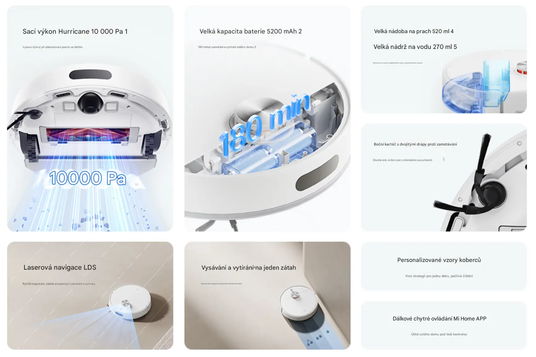 Nový robotický vysavač Xiaomi stojí jen 4 tisíce, s touhle výbavou by však klidně mohl být dražší Hlavní stránka Zprávičky Xiaomi v Číně představilo robotický vysavač Mijia Robot Vacuum 4 s cenou od 1 443 jüanů (cca 4 400 Kč) Novinka nabízí sací výkon 10 000 Pa a LDS laserovou navigaci, což je v této cenové kategorii neobvyklé Vysavač disponuje 5 200mAh baterií s výdrží až 180 minut a zvládne pokrýt plochu 300 metrů čtverečních Sdílejte: Adam Kurfürst Publikováno: 9.4.2026 20:00 Žádné komentáře 0 Trh s robotickými vysavači je v posledních letech mimořádně přeplněný a cenové rozdíly mezi jednotlivými modely mohou být propastné. Zatímco prémiové modely s dokovacími stanicemi a samočisticími funkcemi atakují hranici klidně 50 tisíc korun, Xiaomi nyní dokazuje, že solidní výbavu lze dostat i za zlomek této částky. Nový Mijia Robot Vacuum 4 kombinuje laserovou navigaci a vysoký sací výkon s cenou, která v přepočtu odpovídá zhruba 4 400 Kč. Laserová navigace v nižší střední třídě Vysávání i vytírání v jednom průchodu Cena a dostupnost Laserová navigace v nižší střední třídě Xiaomi Mijia Robot Vacuum 4 spoléhá na LDS laserovou navigaci, která vytváří přesné mapy místností a plánuje efektivní trasy úklidu. V této cenové kategorii jde o poměrně neobvyklou volbu – většina konkurenčních značek totiž u levnějších modelů sází na kamerové systémy nebo prosté nárazové senzory. Specifikace Xiaomi Mijia Robot Vacuum 4 (strojově přeloženo z čínštiny) Po stránce sacího výkonu novinka nabízí 10 000 Pa, což je hodnota, která by měla bez problémů zvládnout běžné nečistoty, prach i zvířecí chlupy. K dispozici jsou čtyři režimy čištění a dvojité boční kartáče s protizamotávacím designem, které by měly usnadnit údržbu zejména v domácnostech s dlouhými vlasy nebo domácími mazlíčky. Vysávání i vytírání v jednom průchodu Jak už název napovídá, Mijia Robot Vacuum 4 zvládá současně vysávat i vytírat. Disponuje 520ml nádobou na prach a 270ml nádržkou na vodu, což podle výrobce postačí pro úklid plochy až 300 metrů čtverečních v otevřeném prostoru. Pro běžný byt by tedy jedno naplnění mělo bohatě stačit. Xiaomi ukázalo svou nejlepší domácí kameru. Má dva objektivy, rozlišení 4K a super funkce Adam Kurfürst Zprávičky Adam Kurfürst Zprávičky Za pozornost stojí také 5 200mAh baterie, která v kombinovaném režimu vysávání a vytírání vydrží pracovat až 180 minut. Vysavač si poradí s překážkami do výšky 20 mm, takže by neměl mít problém s běžnými prahy mezi místnostmi. Ovládání probíhá prostřednictvím aplikace Mijia, která umožňuje plánování úklidu, nastavení režimů a vzdálené ovládání. Cena a dostupnost Xiaomi Mijia Robot Vacuum 4 se v Číně prodává od 7. dubna za cenu 1 443 jüanů, což v přepočtu odpovídá zhruba 4 400 Kč. V některých čínských regionech lze díky vládním dotacím pořídit vysavač ještě levněji – za 1 299 jüanů (cca 3 950 Kč). Zda se novinka někdy oficiálně podívá na evropský trh, zatím není jasné. Xiaomi nicméně do Evropy průběžně přináší své robotické vysavače, takže šance na pozdější globální uvedení rozhodně existuje. Zaujal vás robotický vysavač od Xiaomi za tuto cenu? Zdroje: Notebookcheck, ITHome, Gizmochina O autorovi Adam Kurfürst Adam studuje na gymnáziu a technologické žurnalistice se věnuje od svých 14 let. Pakliže pomineme jeho vášeň pro chytré telefony, tablety a příslušenství, rád se… Více o autorovi Sdílejte: Žádné komentáře Vložit komentář Chytrá domácnost čína robotický vysavač Xiaomi Mohlo by vás zajímat Velký výprodej chytrých zásuvek v Lidlu! Některé modely koupíte za hubičku Jana Skálová 8.1.2025 Xiaomi spustilo obří zimní výprodej. Za mobily, tablety i další elektroniku ušetříte tisíce korun Jana Skálová 7.1.2025 Datart prodává extra oblíbené Redmi za nesmyslně nízkou cenu! Kde je háček? Adam Kurfürst 28.12.2024 Black Friday: Datart vyprodává elektroniku za absurdní ceny, našli jsme skutečné perly (aktualizováno) Jakub Kárník 6.11.2024 POCO X7 (Pro) přichází do Česka! Za skvělou cenu nabídnou nejen vysoký výkon Adam Kurfürst 9.1.2025 Zpestřete si domácnost s chytrým světlem z Lidlu. Teď je o několik stovek levnější Adam Kurfürst 3.1.2025